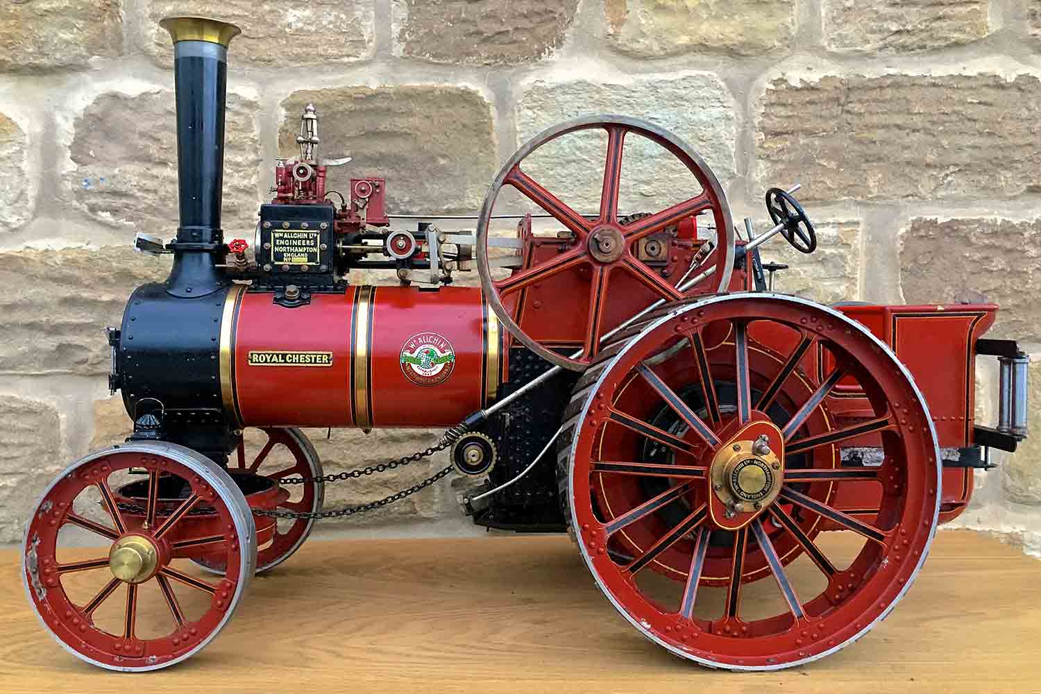 Here we have another rather lovely Royal Chester.  Royal Chesters always seem to be built by skilled model engineers, and this one is no exception.  The drawings are fairly well detailed, and so the model tends not to be attempted by beginners.  The model appears to only been test steamed once by the looks of the virtually non existent soot levels on the boiler tube plate, and certainly mechanically it is brand new and runs very well on air.  It is again a very well built example that has been on display in a private collection for some time.