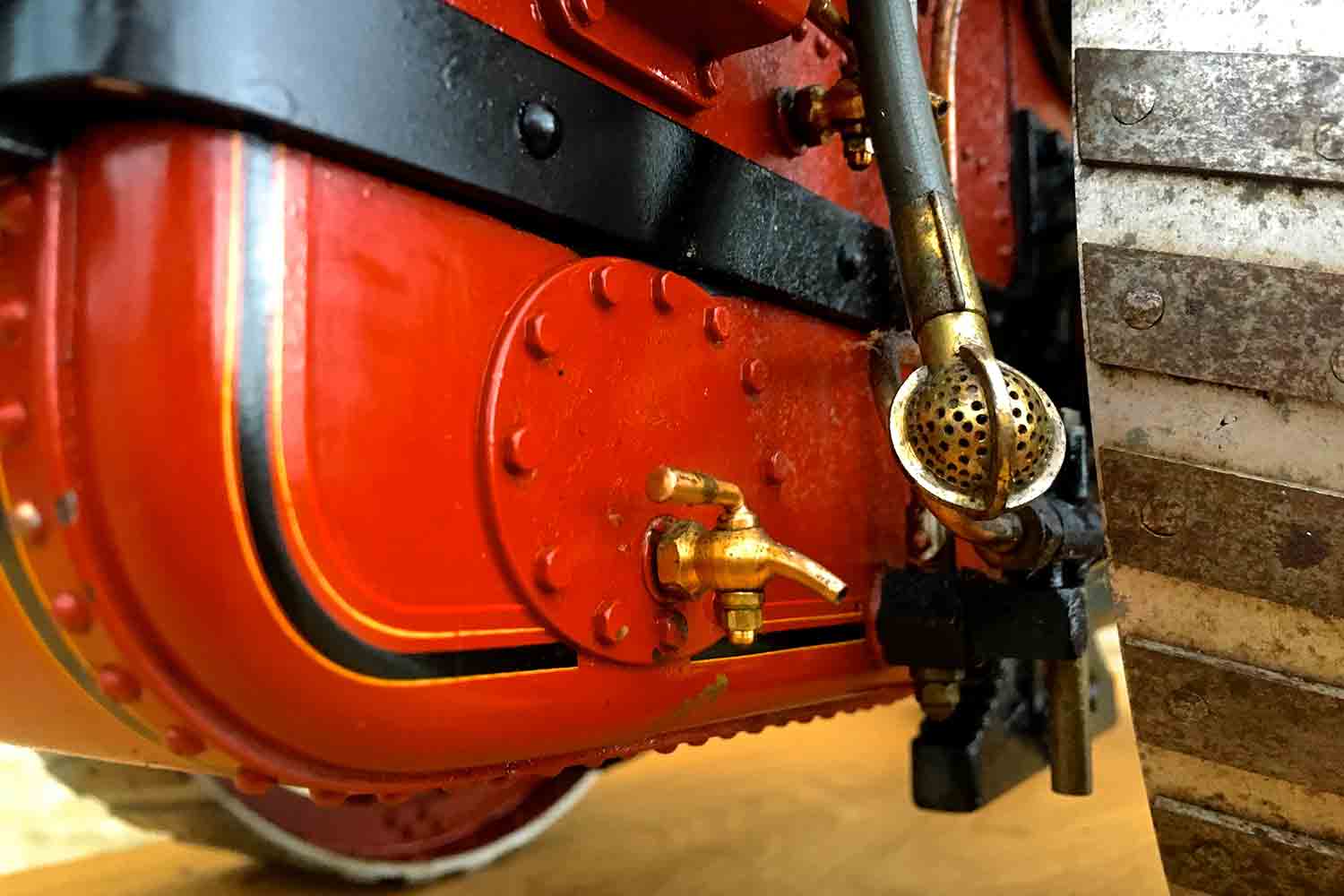 All the details are there, water lifter, injector, crank shaft pump. mechanical lubricator, and this is also a very nicely painted and lined model.  Hopefully the photos ought to do the model justice so that you can see what you are buying.  As with all our completed and ready to go models, she can be given a full 4 year hydraulic boiler test on the copper silver soldered boiler, and a fresh annual steam test as well should you wish to run her.