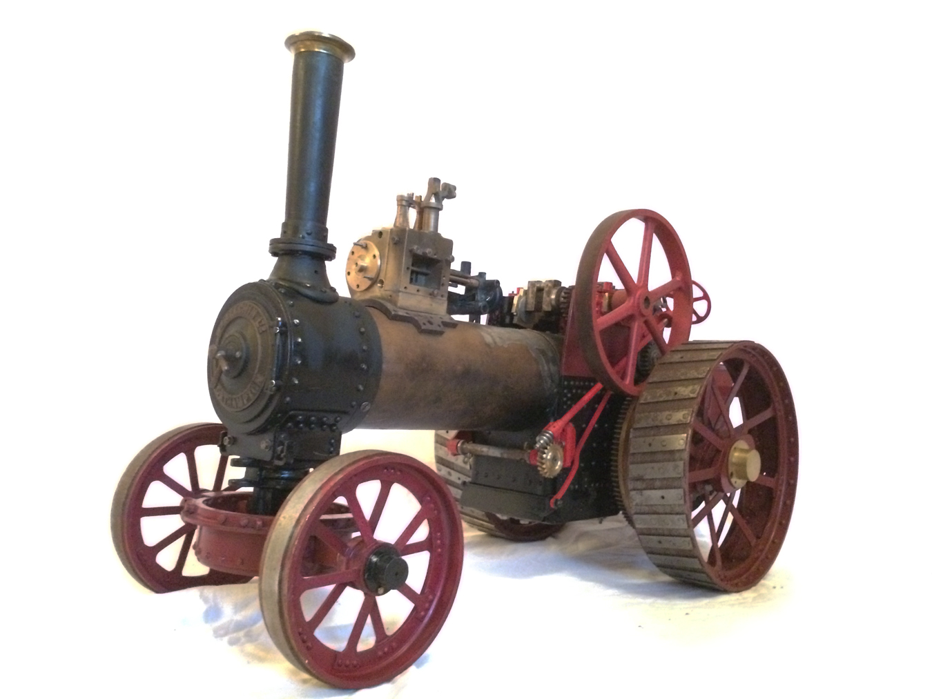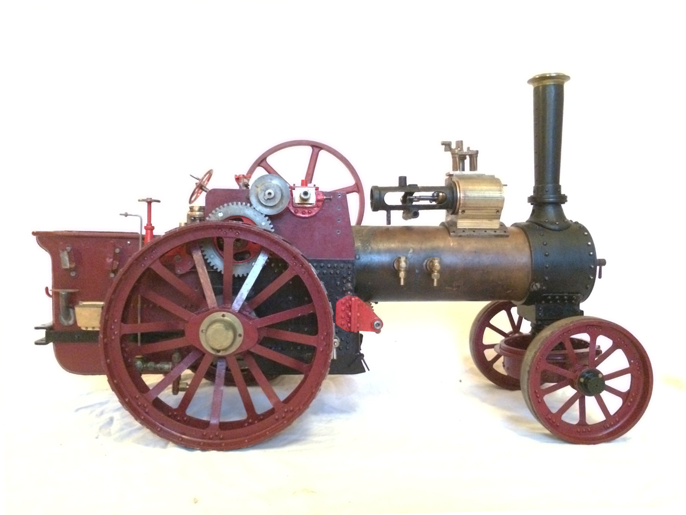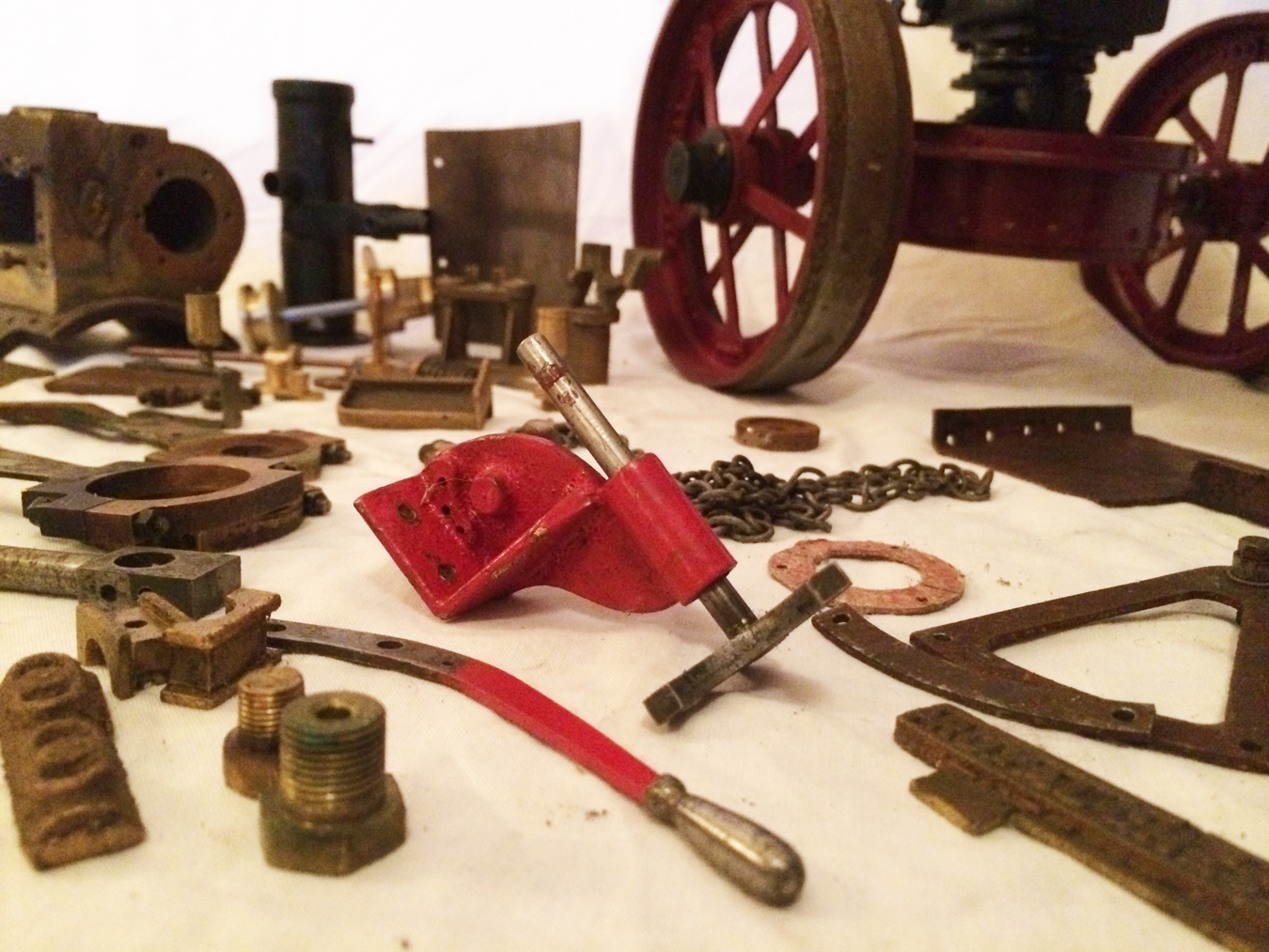 The model is a rolling engine and well on the way. It includes a very tidy looking copper boiler. The cylinder block is machined but not fitted, and the valve castings are there for completion. The gearing is all there, as are the crank and eccentrics including much of the valve gear.