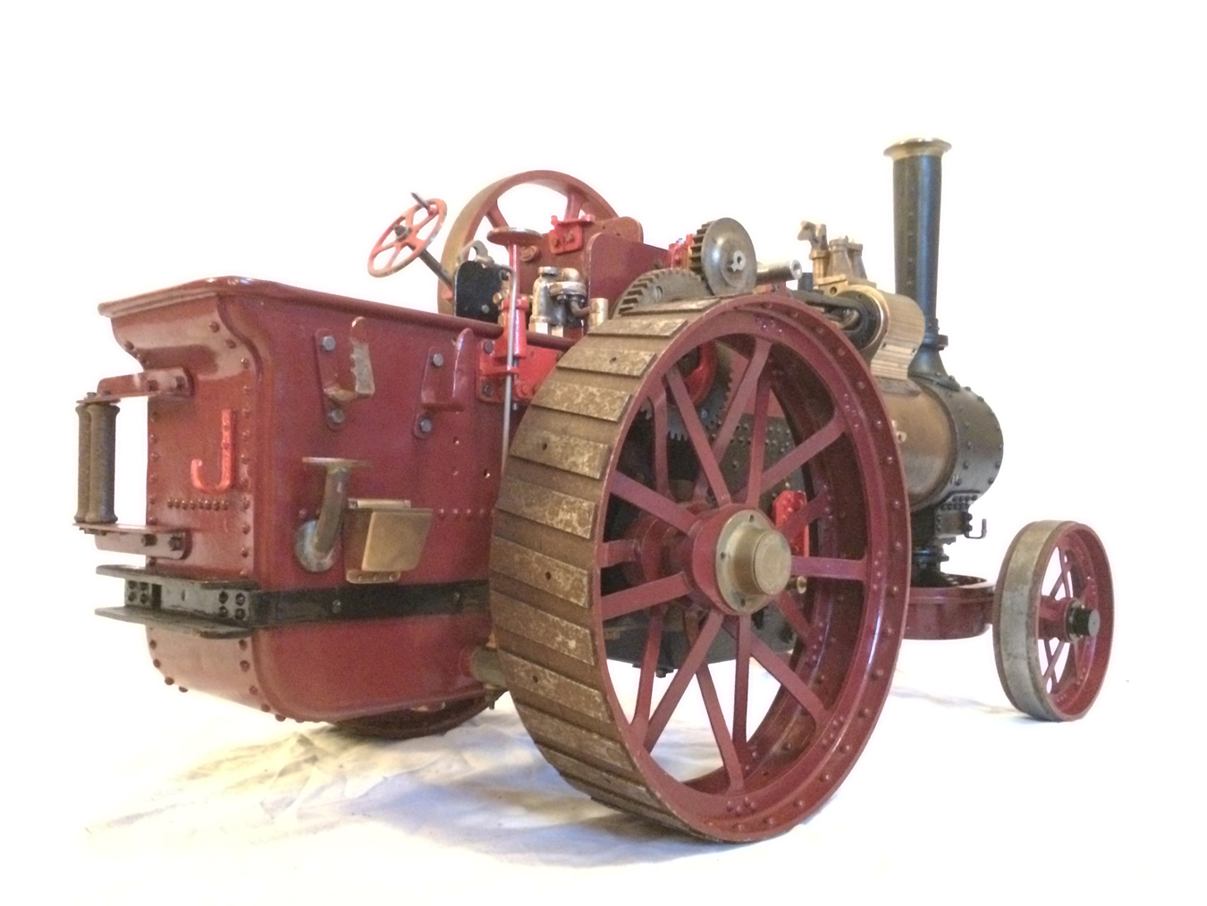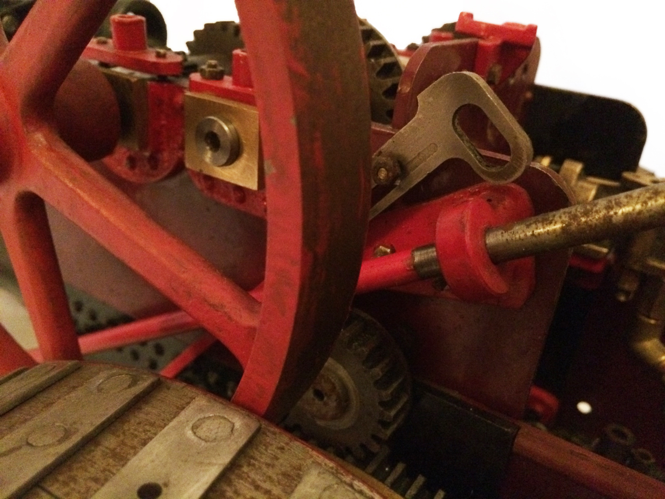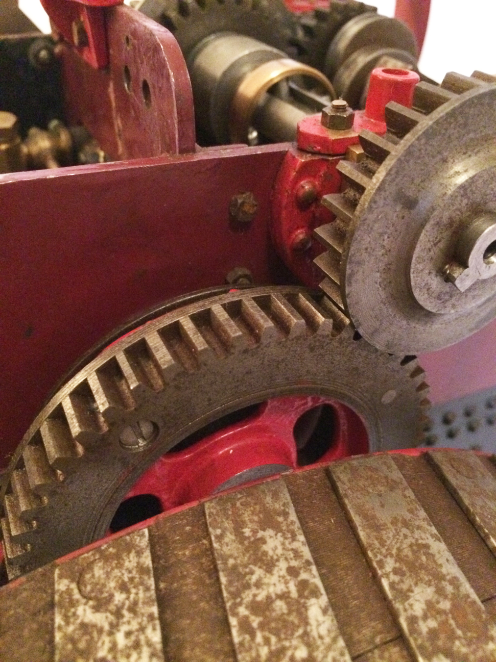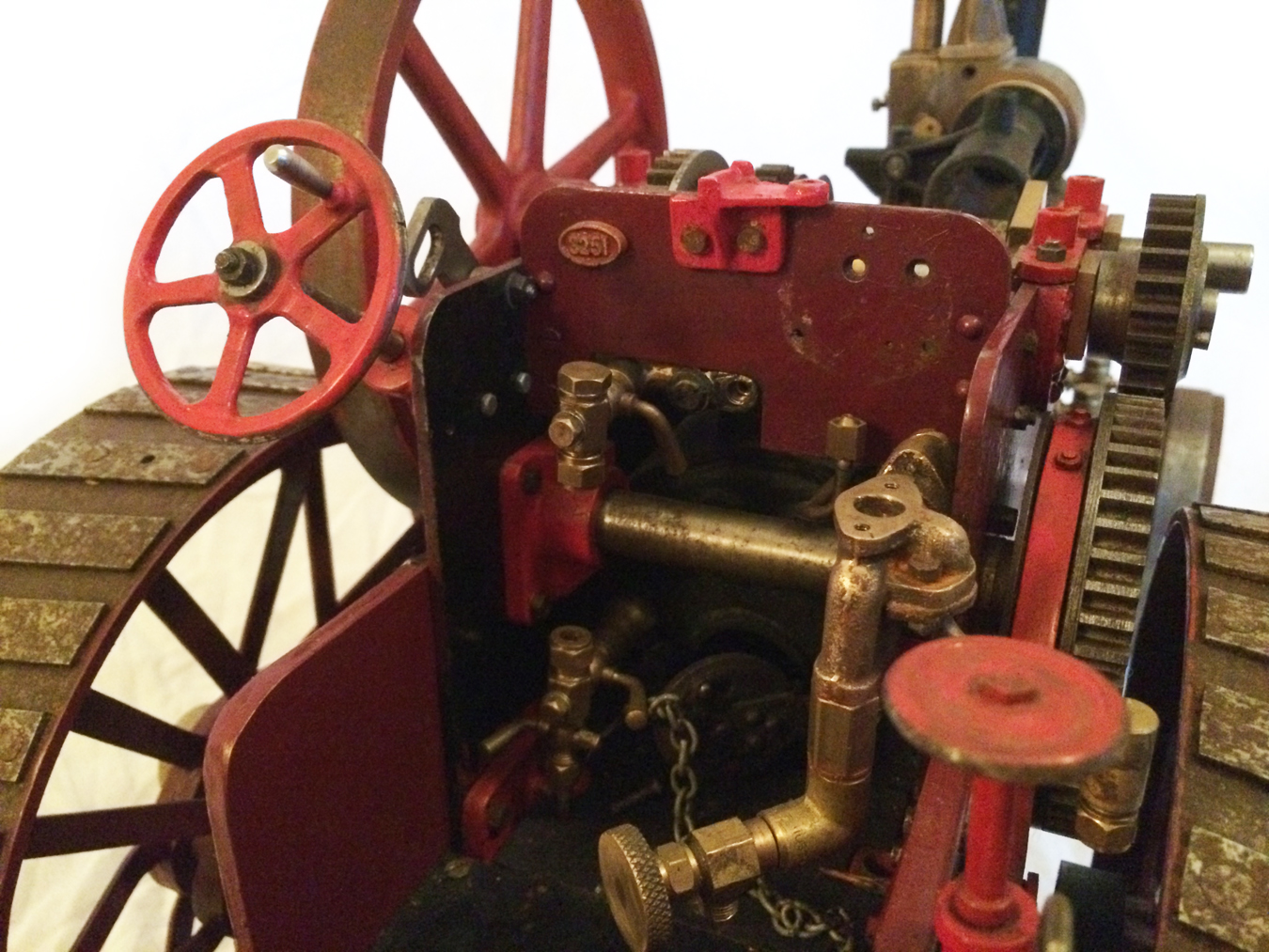 The model is a rolling engine and well on the way. It includes a very tidy looking copper boiler. The cylinder block is machined but not fitted, and the valve castings are there for completion. The gearing is all there, as are the crank and eccentrics including much of the valve gear.