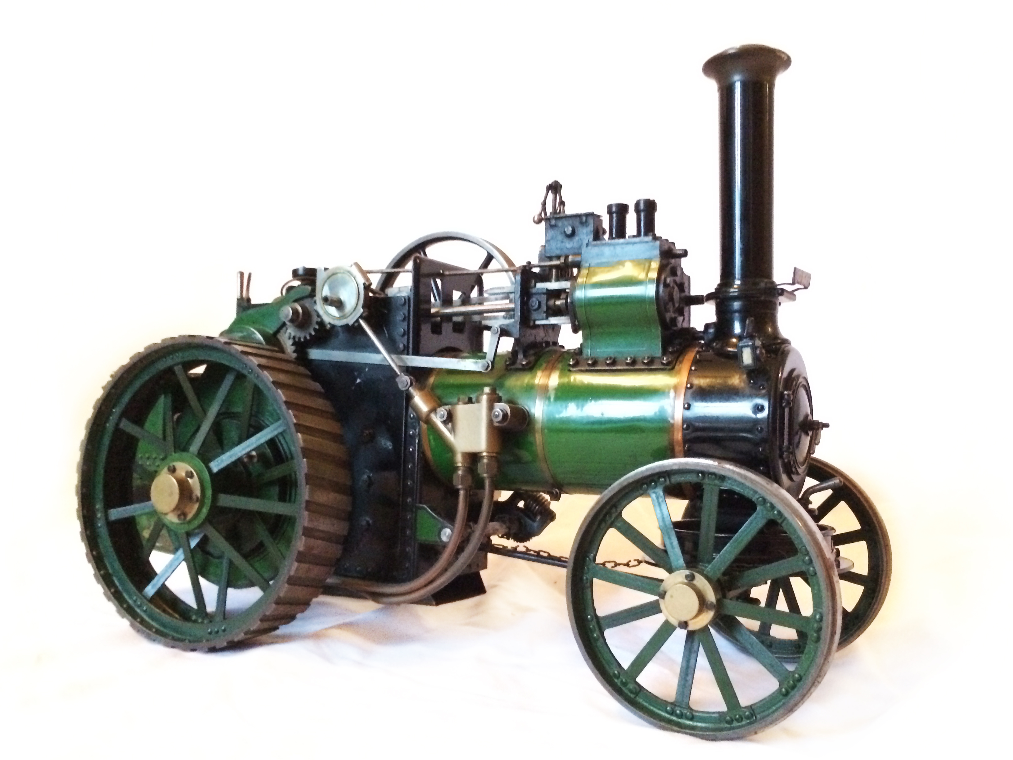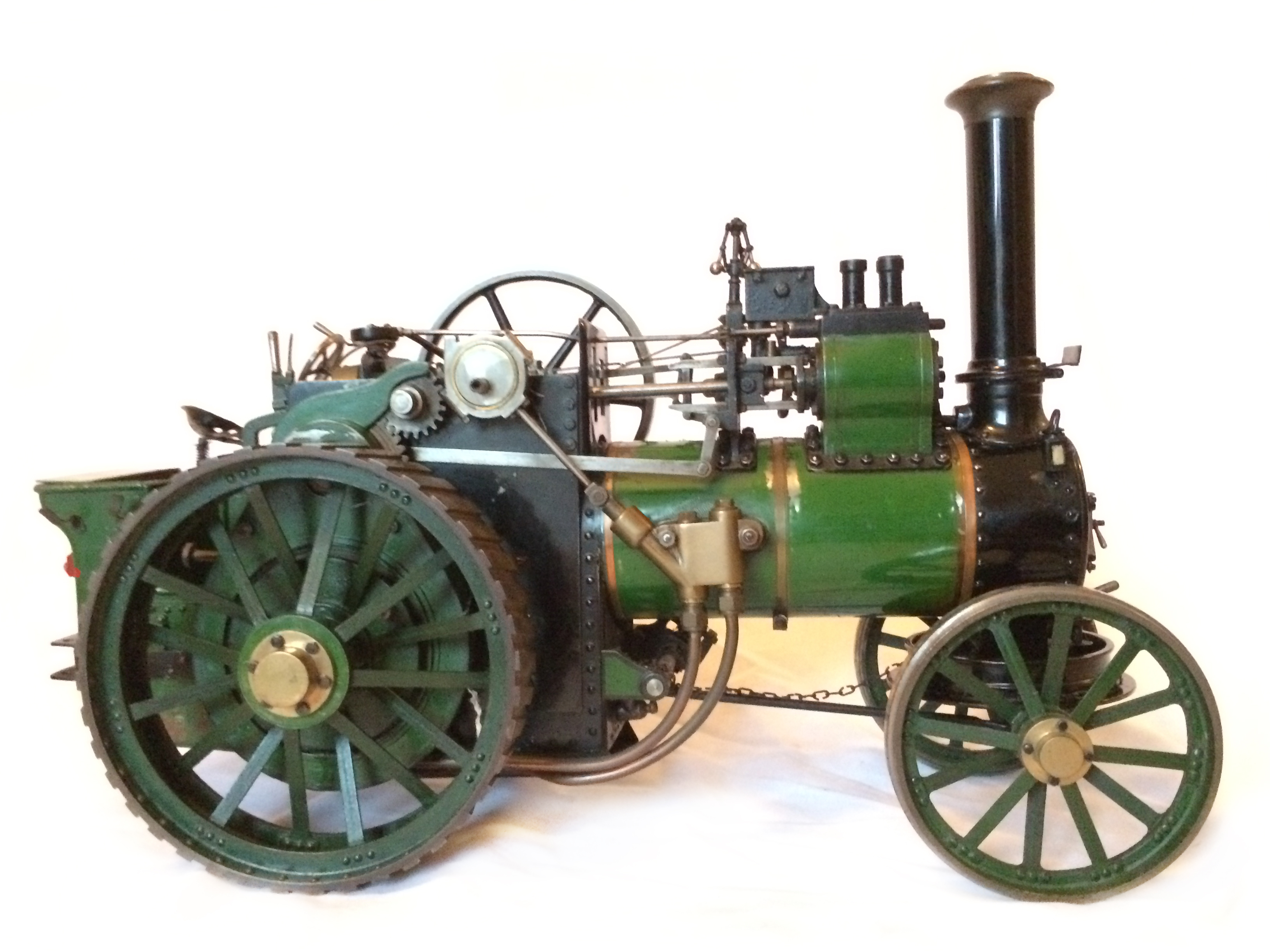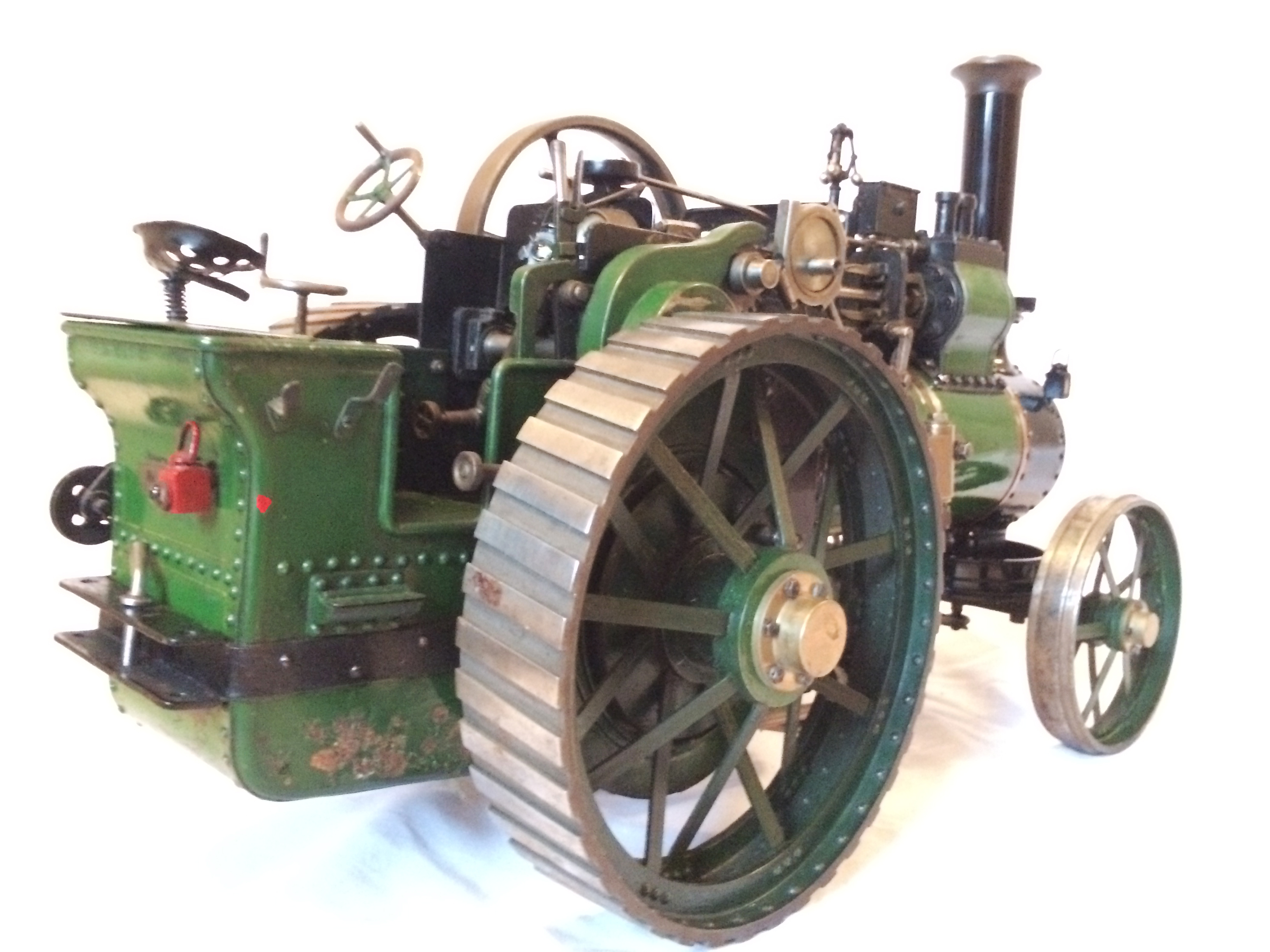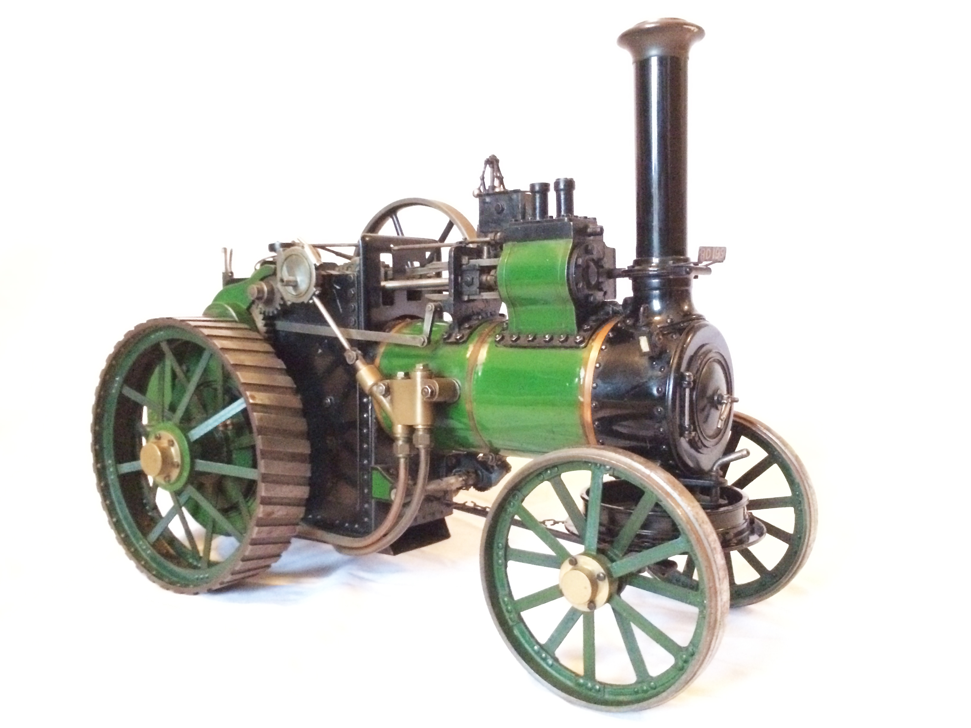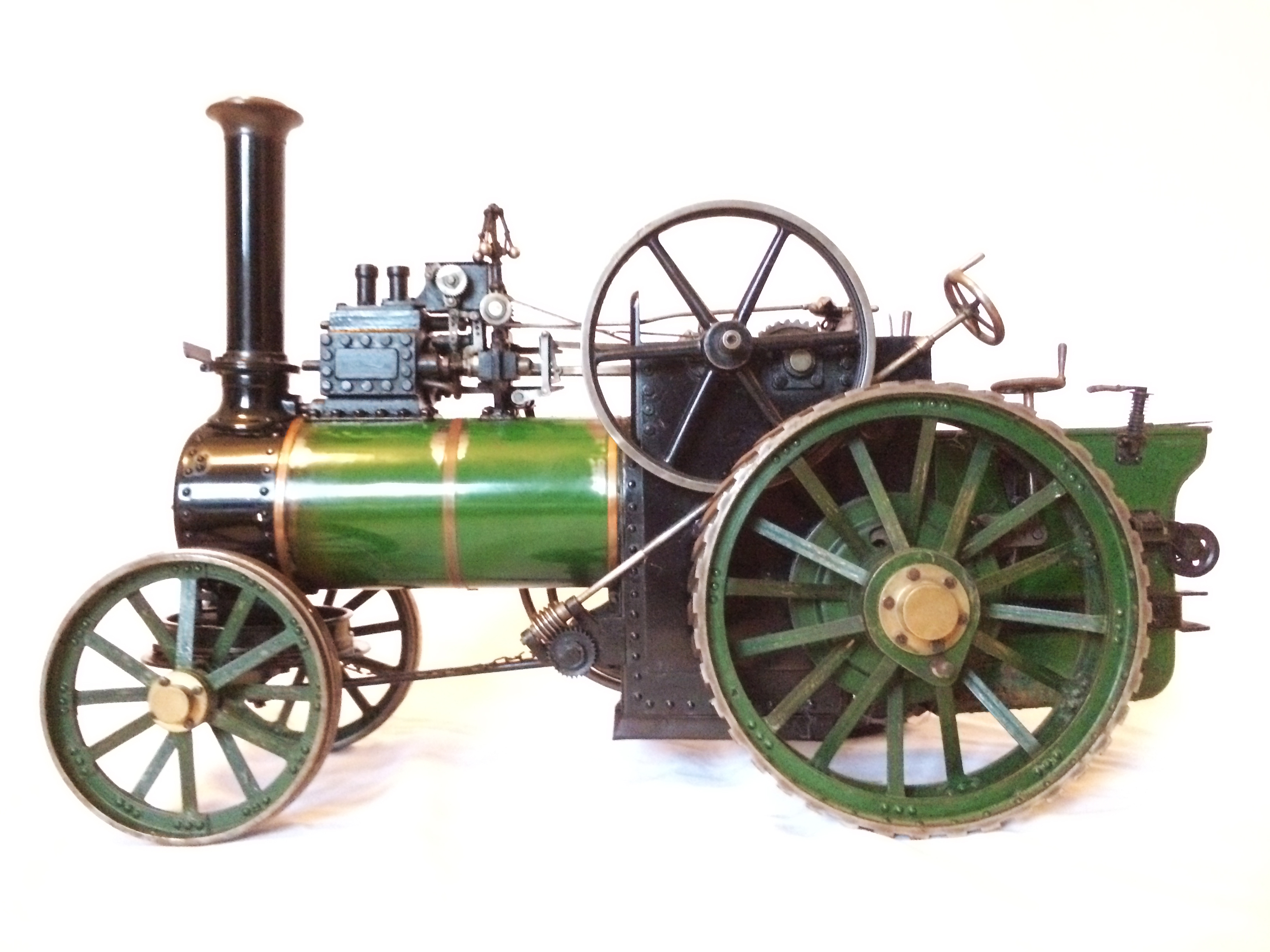 Quite a rare model this one. It's a 1" scale model of a 7nhp Davey Paxman agricultural traction engine to the 1958 design published in the Model Engineer by Earnest Steel. It's a really nicely proportioned Traction Engine, and this example, although an older build is particularly well made by a skilled model engineer.