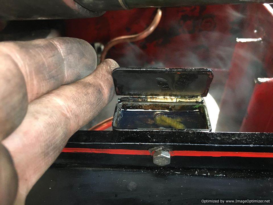 The new brass oil boxes were then made and fitted, each having two chambers creating 8 independent oil wick feeds to each motion point between the frames.