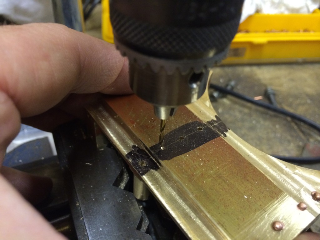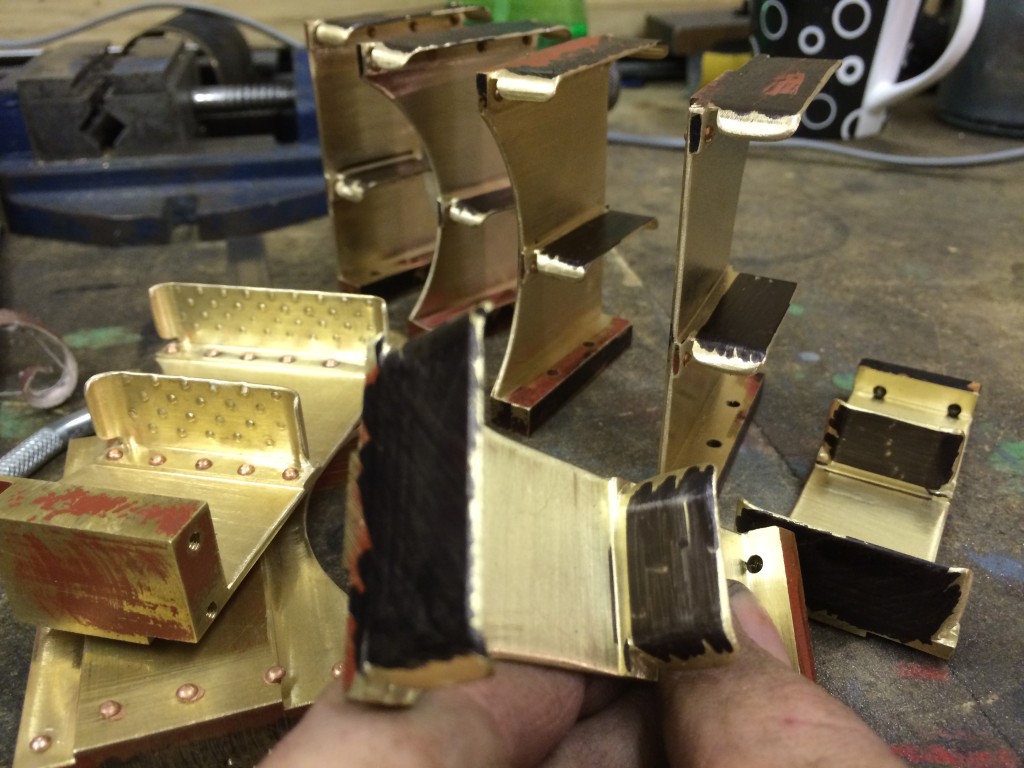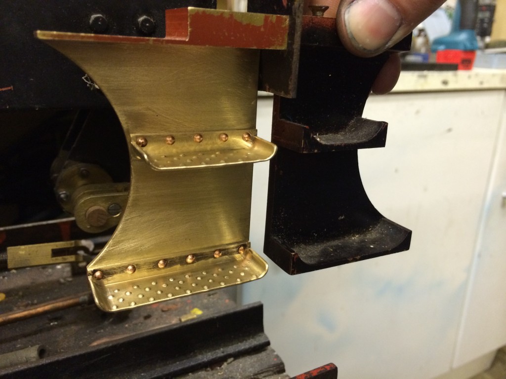 First up is a little gallery of the mods that we have made to the standard Modelworks steps. The standard steps delivered with the MW kits were machined from solid blocks of brass, and crudely so! They are a dead give away for a kit built model and we think they look awful. We've retained them, but as you can see, we milled them down to broadly the correct specification, and then with a good bit of filing, drilling, riveting and punching (having made an appropriate dolly),..... we are quite pleased with the result. Much more like the real thing!