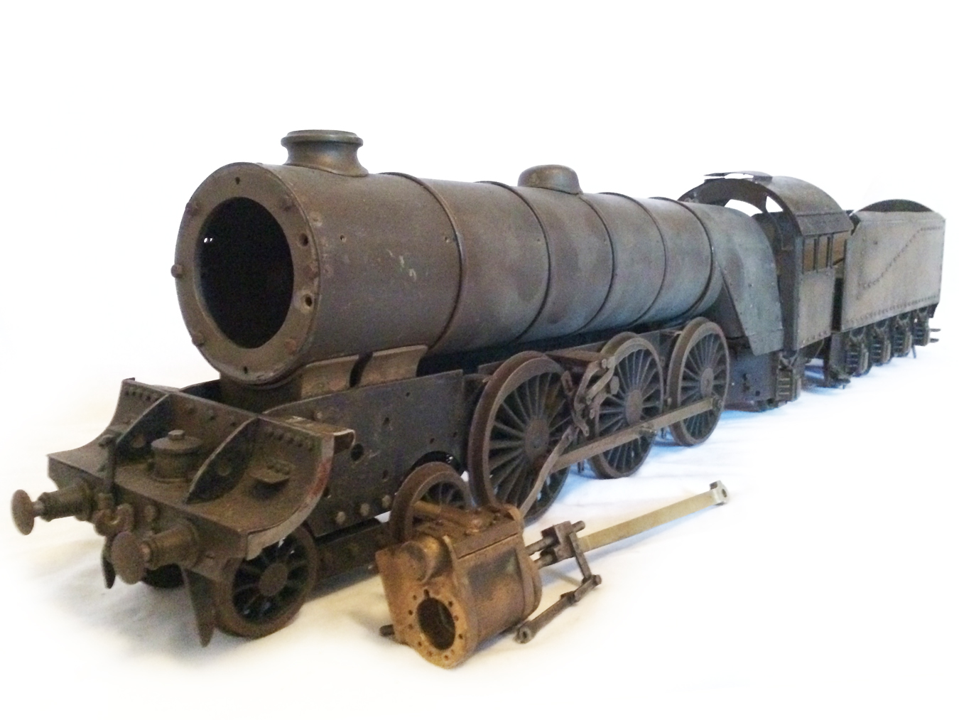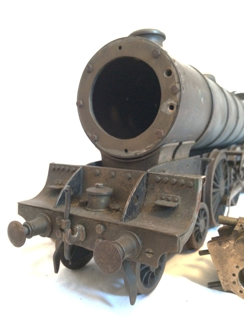 Here we have a 2 1/2" gauge part built LNER A3, to the drawings published by F J Camm,.... I think through Engineering in Miniature. The model has been done so far with clear skill, and although it has been sitting some time in the corner of a workshop, it is a very good start, and would complete into a lovely model.