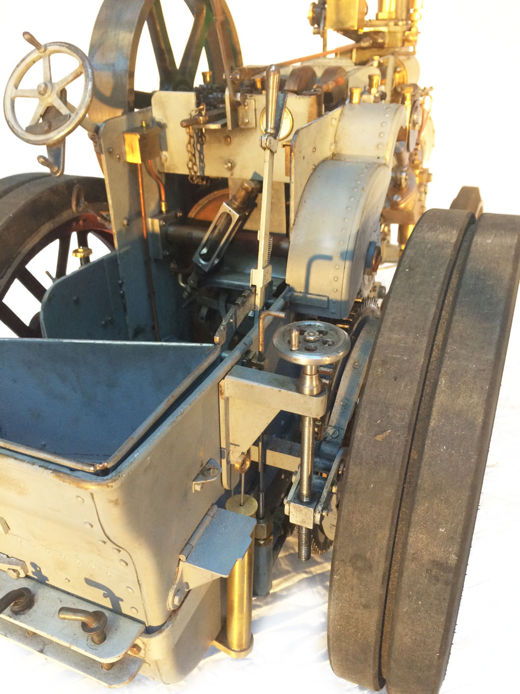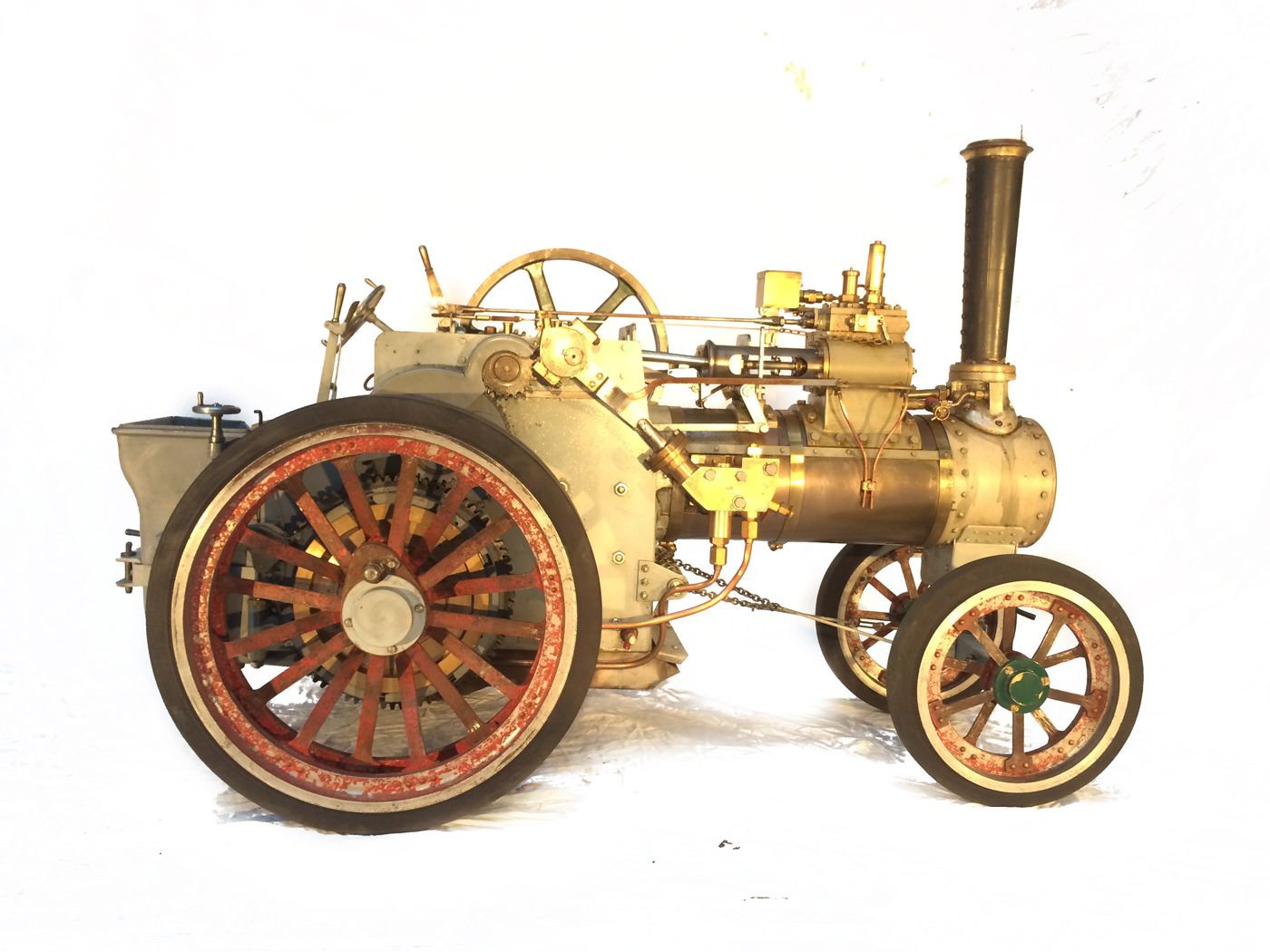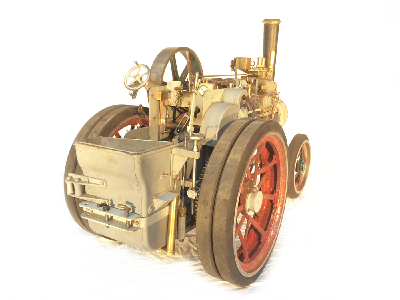 Here we have a very nicely constructed 2" scale traction engine to the doubled up 'Minnie' design. This is a fairly newly constructed model that has been finished, run in, and all the 'new' engine tweaks have been done before the model was painted. Unfortunately the builder never got round to disassembling it for painting. Se essentially this is a virtually brand new, fully sorted model, ready for you to strip and paint in the livery of your choice,...... or alternatively simply play with it as it stands.