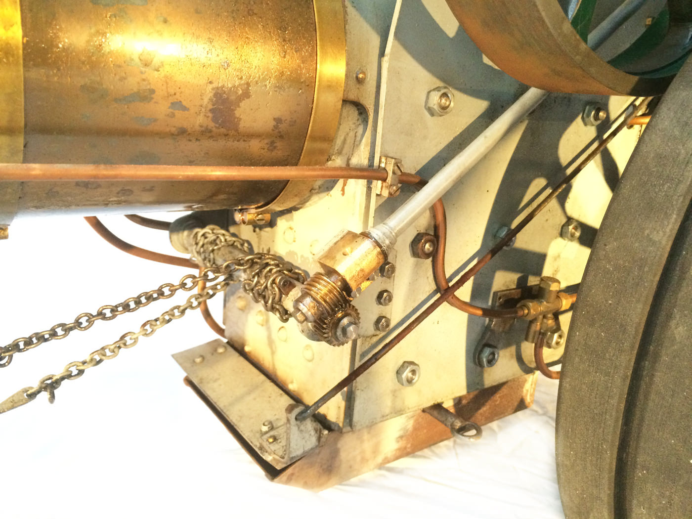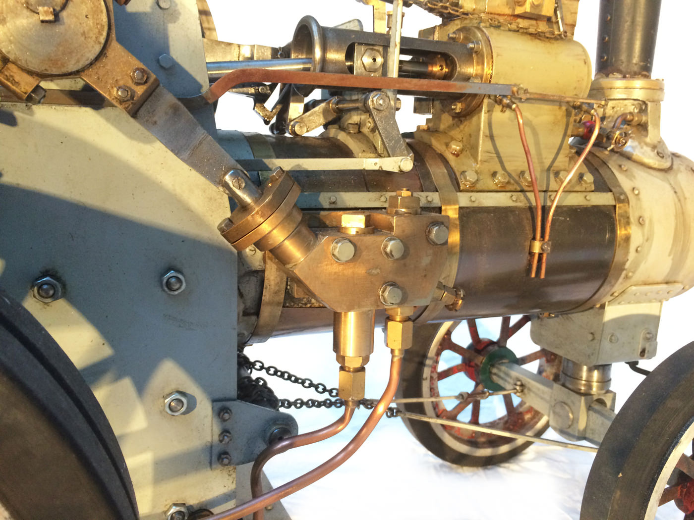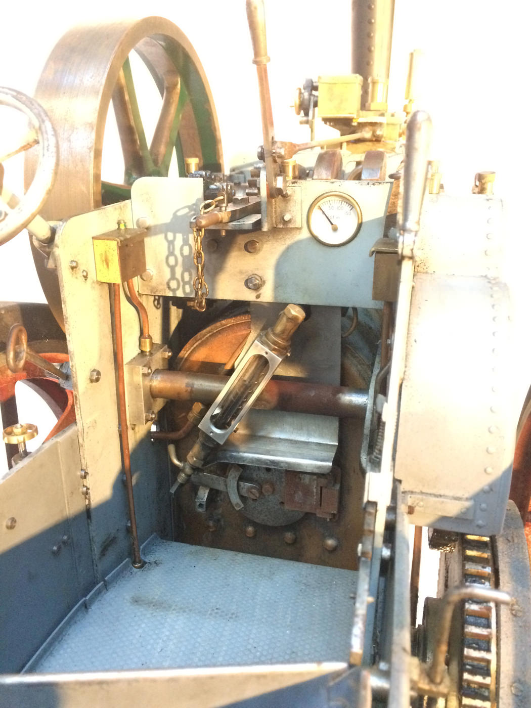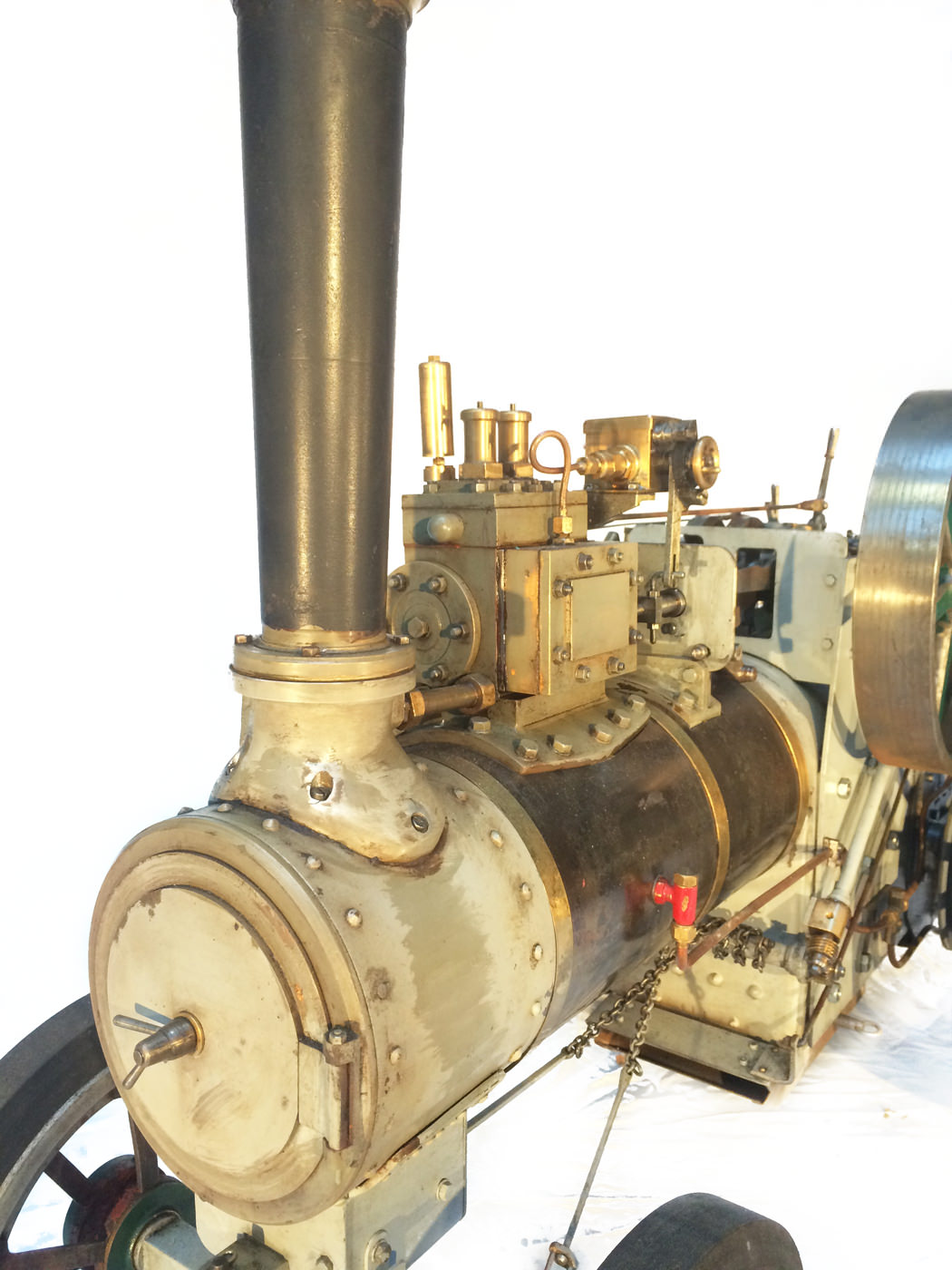 Here we have a very nicely constructed 2" scale traction engine to the doubled up 'Minnie' design. This is a fairly newly constructed model that has been finished, run in, and all the 'new' engine tweaks have been done before the model was painted. Unfortunately the builder never got round to disassembling it for painting. Se essentially this is a virtually brand new, fully sorted model, ready for you to strip and paint in the livery of your choice,...... or alternatively simply play with it as it stands.