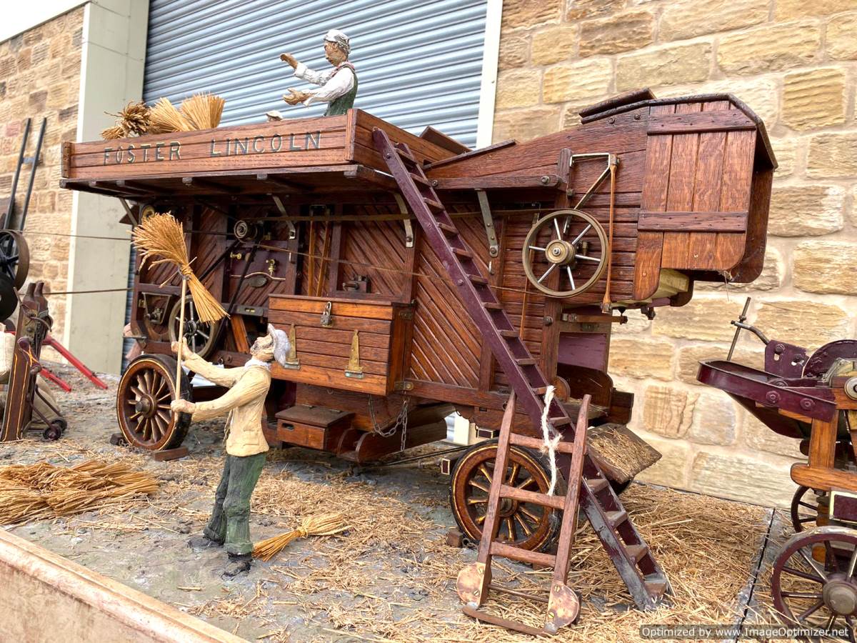 Next up is the rather lovely Foster Threshing machine! Fully functional,.... in that everything moves and shakes exactly as it should, and we think it's probably been built using the Haining Ransommes drawings as a basic guide, but tweaked here n there to 'Fosterise' it. There's certainly a lot of nice model engineering inside it and the woodwork has been treated with both care and finesse. It's got a really lovely and authentic feel to it and is one of the nicest representations we've seen because of it.