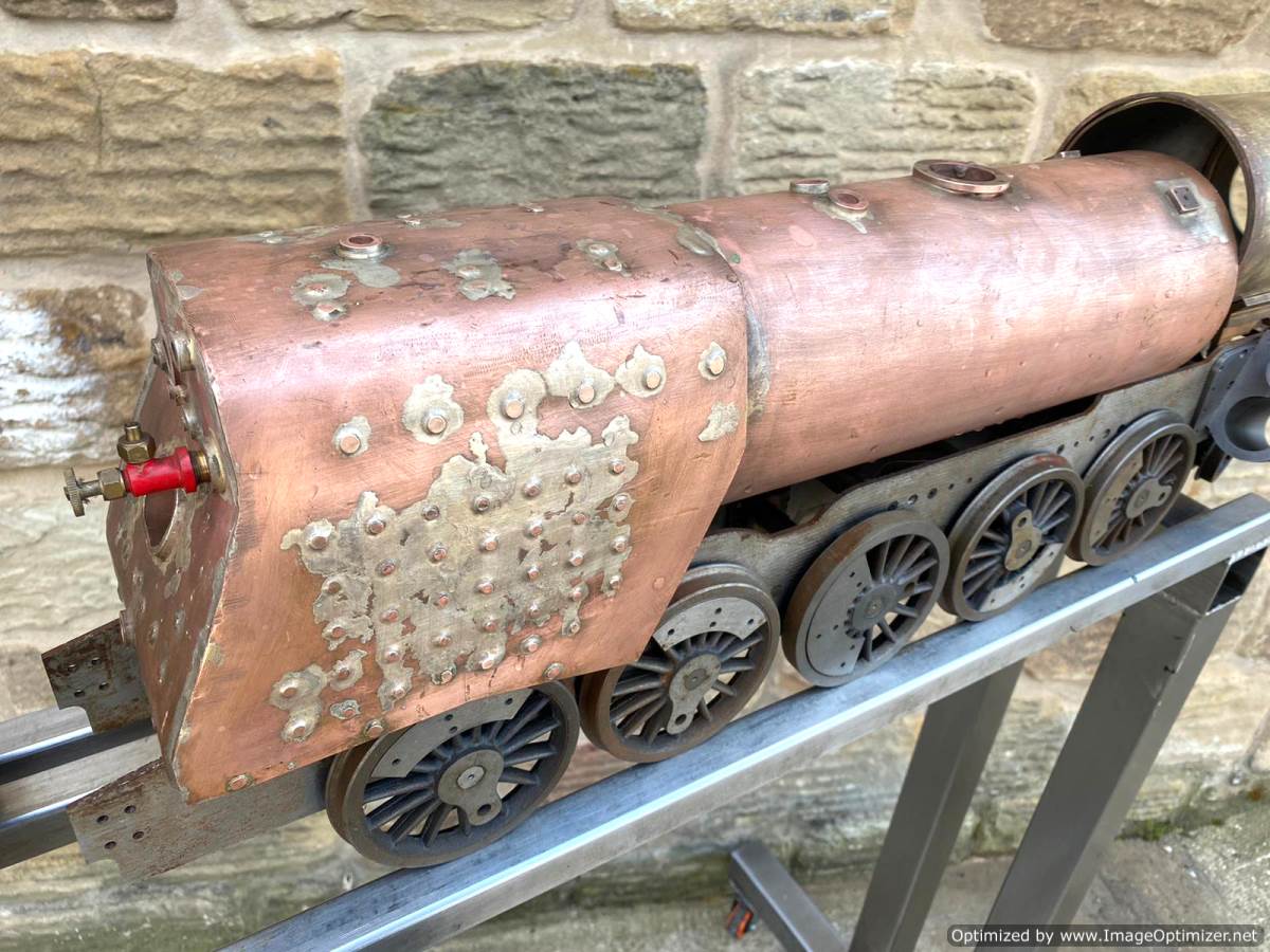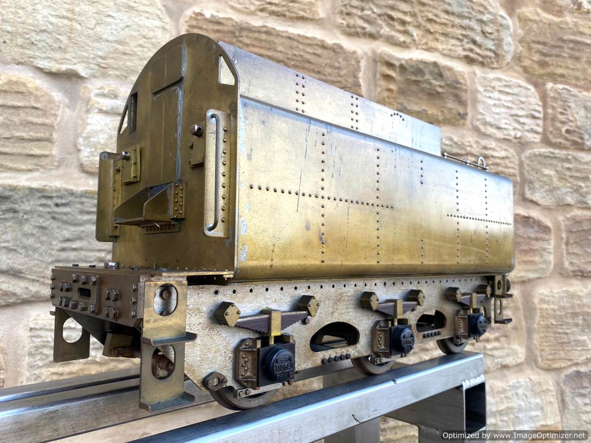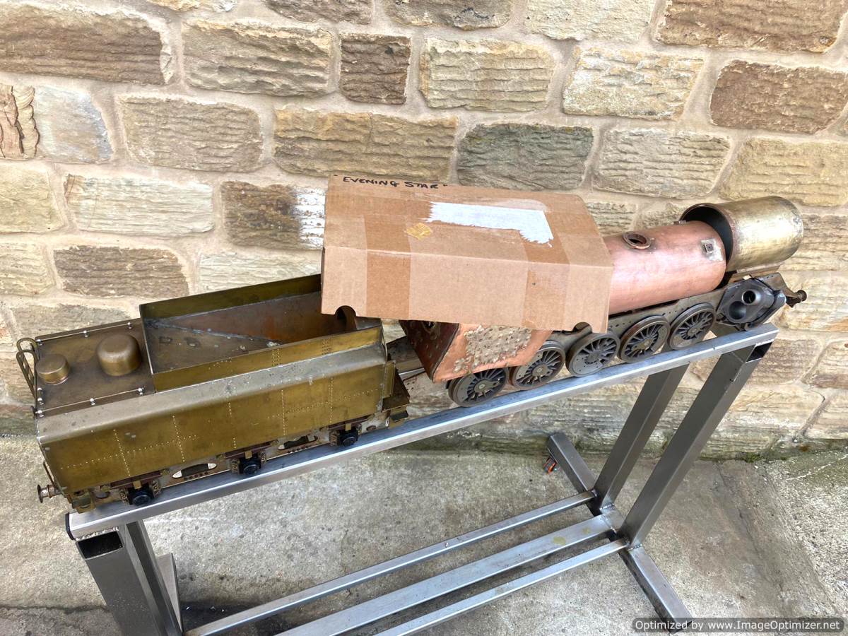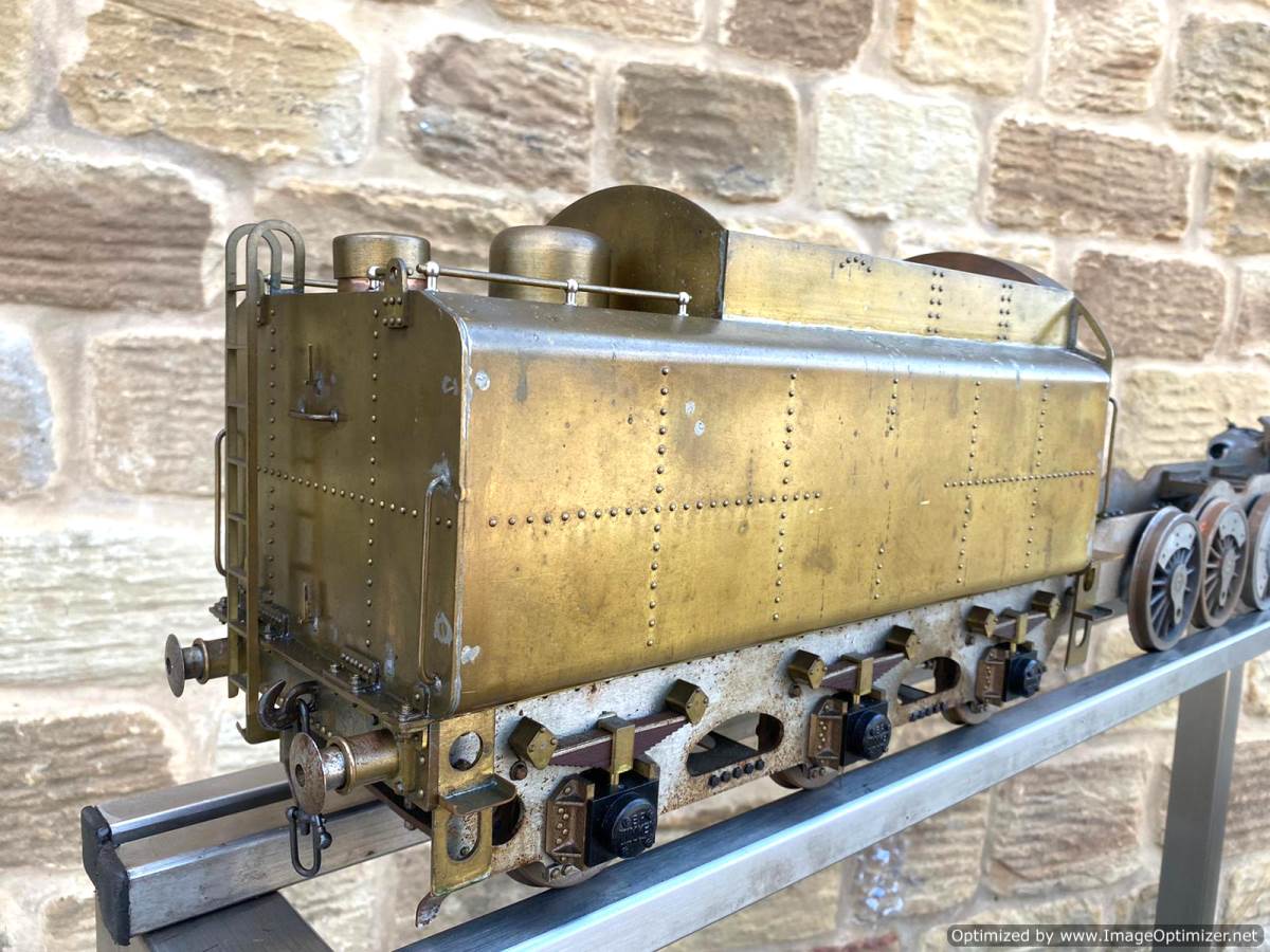 Here we have a 3 1/2" gauge BR 9F with a good, new and well made silver soldered copper boiler complete with combustion chamber and thermic syphons.  The machining work done is to a neat and crisp standard and the tender is pretty much complete and really delicately done.  The cylinders are bored and machined as are the pistons and piston rods and the wheels are just lightly pressed on awaiting quartering and final set up.  It all bodes well for what's being there being good and usable for the right person to push the project forwards.