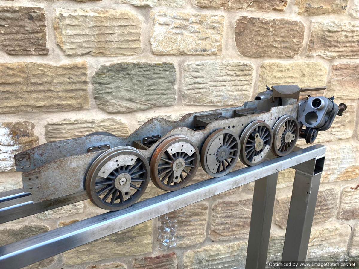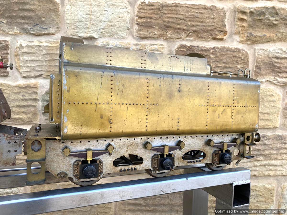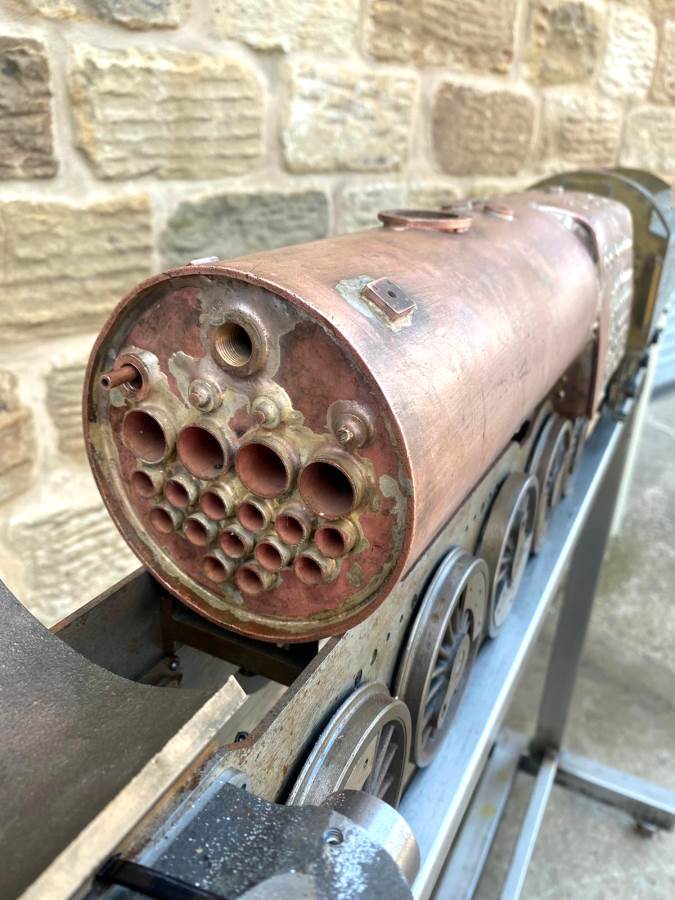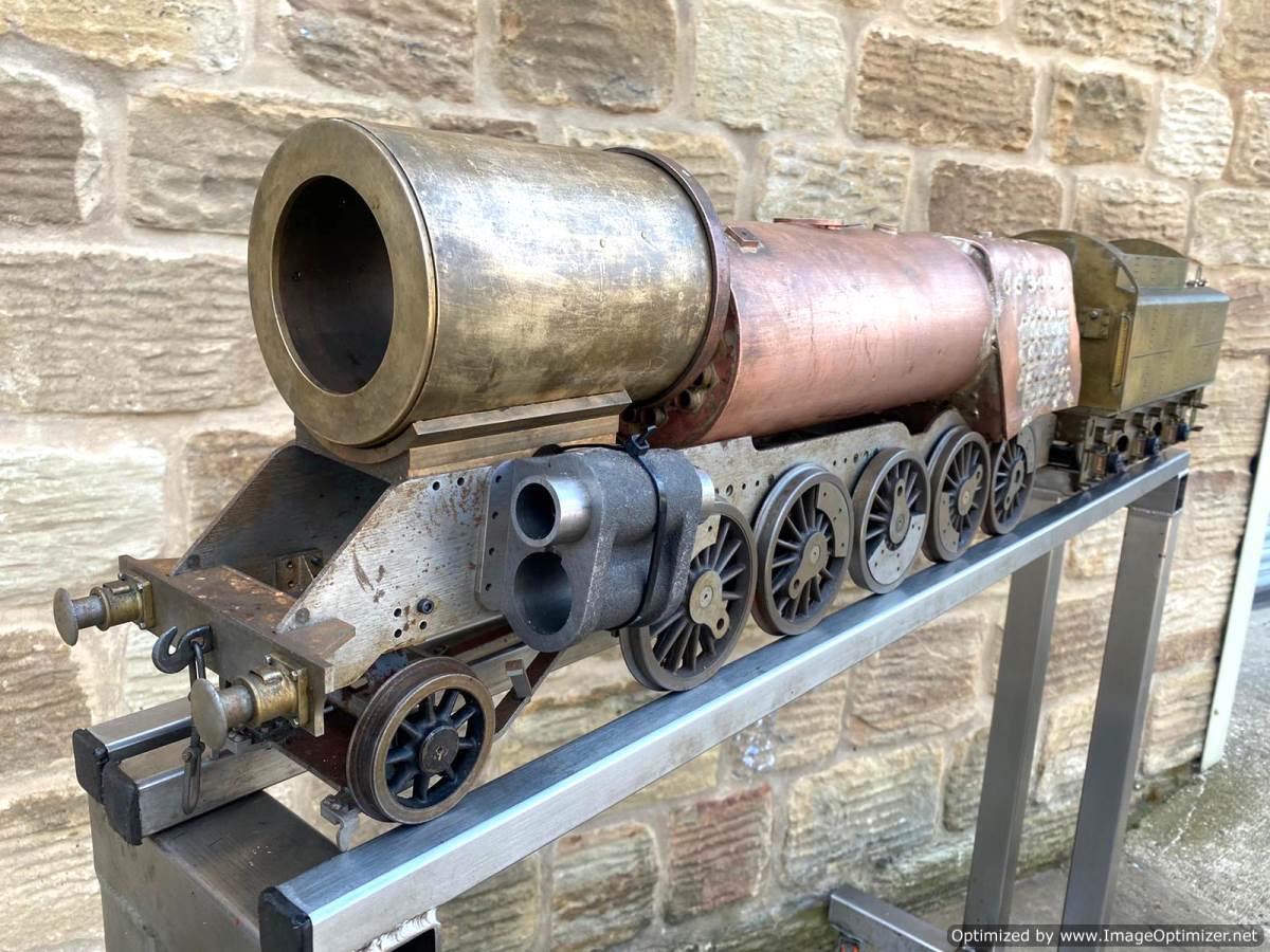 Here we have a 3 1/2" gauge BR 9F with a good, new and well made silver soldered copper boiler complete with combustion chamber and thermic syphons.  The machining work done is to a neat and crisp standard and the tender is pretty much complete and really delicately done.  The cylinders are bored and machined as are the pistons and piston rods and the wheels are just lightly pressed on awaiting quartering and final set up.  It all bodes well for what's being there being good and usable for the right person to push the project forwards.
