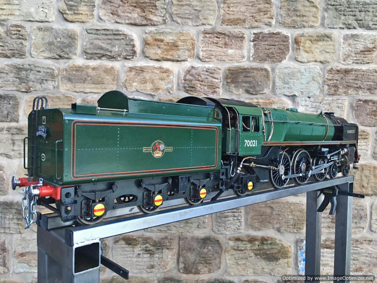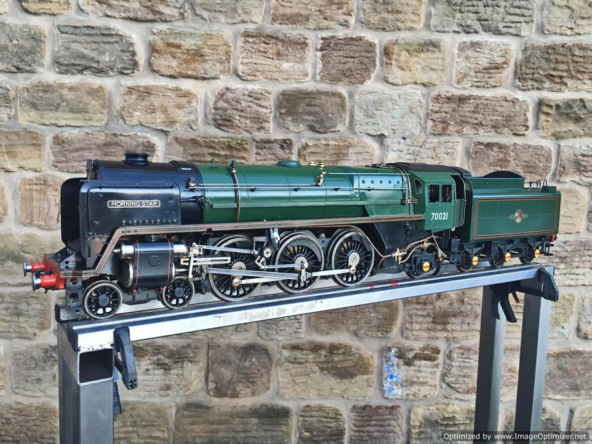 In the workshop awaiting photography we have a rather lovely 3 1/2" gauge BR Britannia, commercially built by OS in Japan. Unusually, (as they were all originally 70000), this one has been re-named and re-numbered as 70023 'Morning Star'.