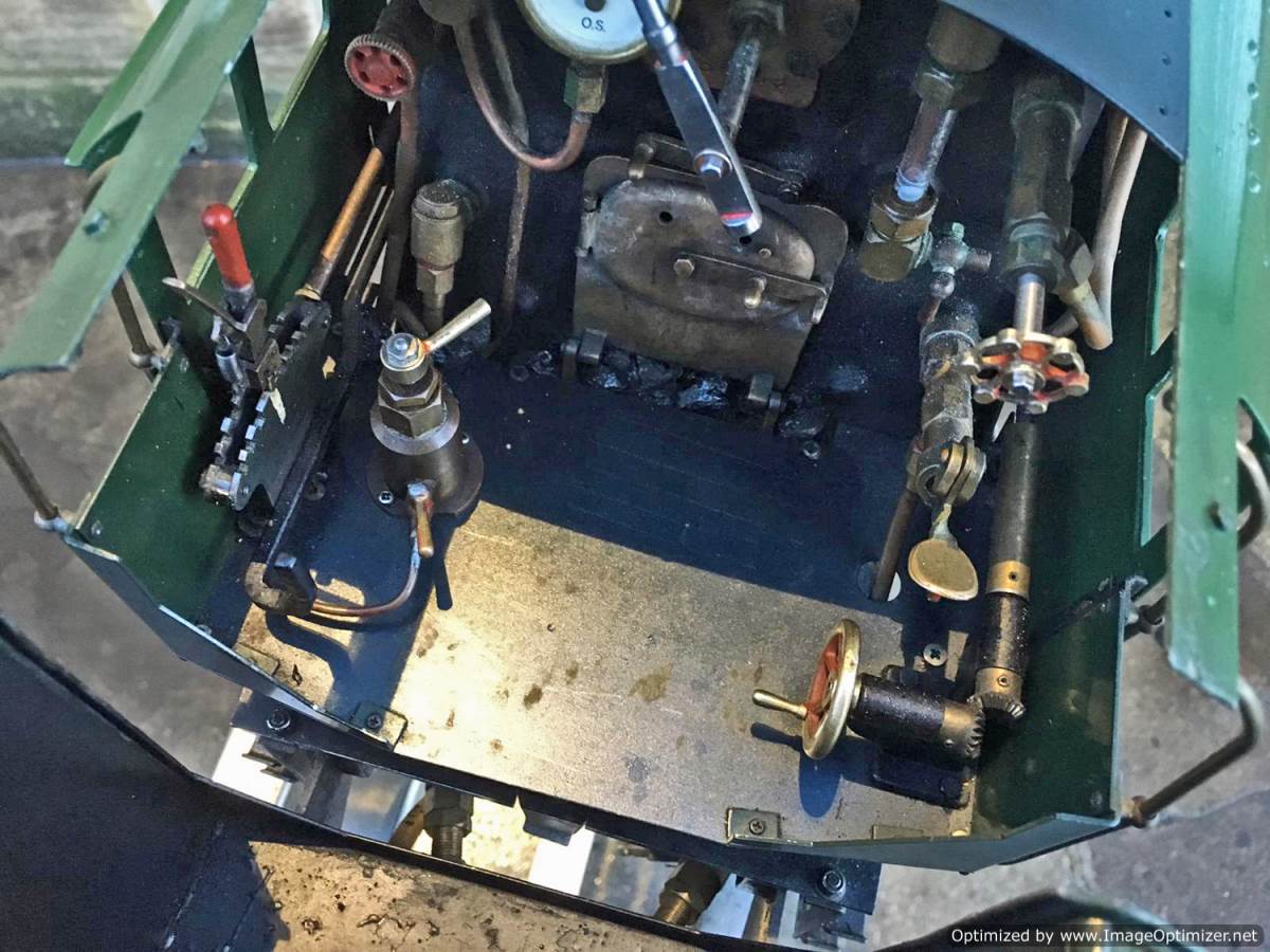 The model is coal-fired with the usual silver-soldered professional copper boiler. It has a four-element superheater and runs at 80psi. There is an injector and axle pumps with the obligatory emergency auxiliary hand pump hidden in the tender. The cylinders are gunmetal with the correct piston valves, and all the axles and the connecting rods run on needle roller bearings. It would be a particularly well engineered model in it’s own right, but the rarity, and collectability of OS locomotives gives it a unique appeal.