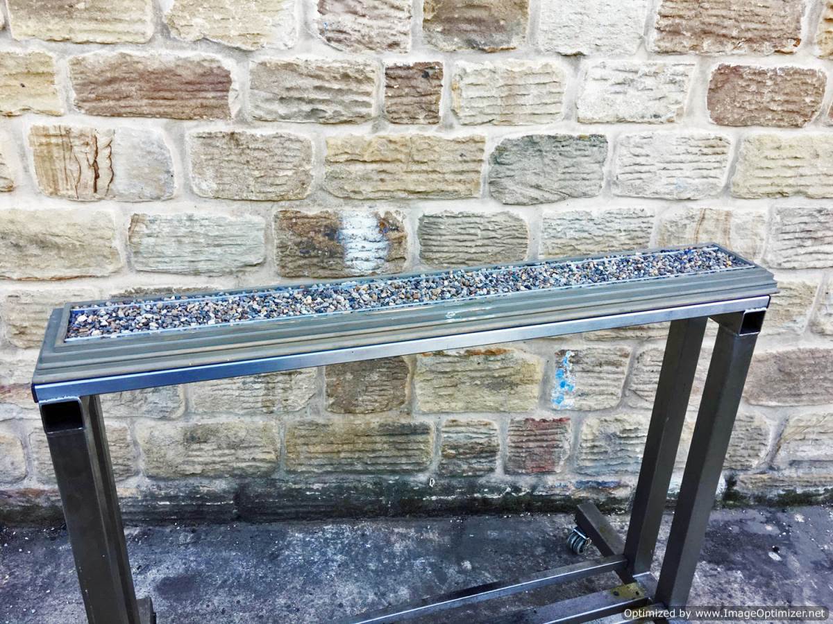 Here we have a nice 3 1/2" gauge display track. No sleepers, simply ballasted to hide where they would be. Ally rails and a painted wooden base.