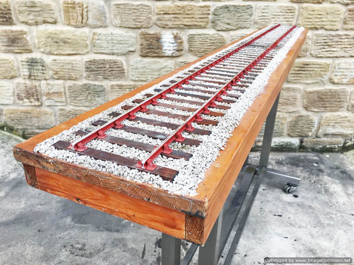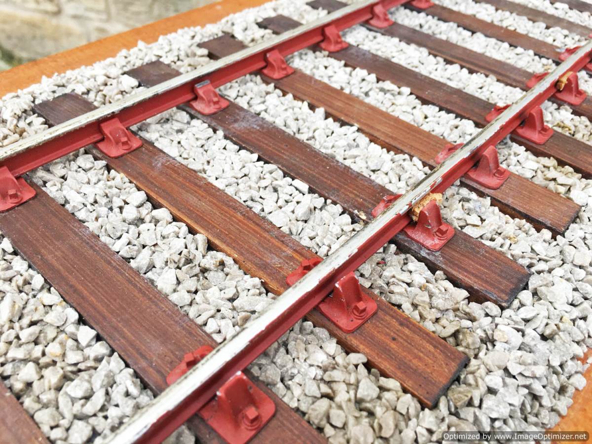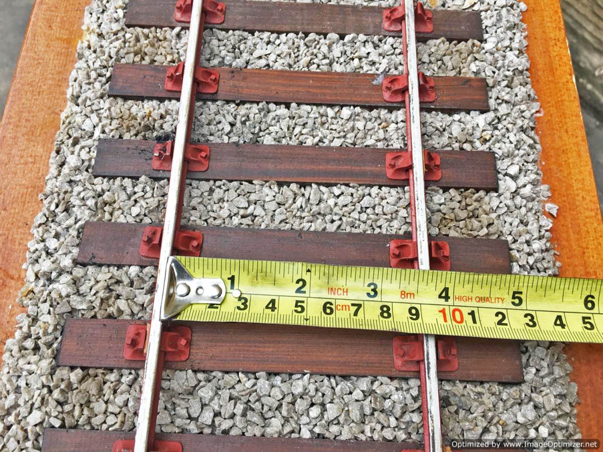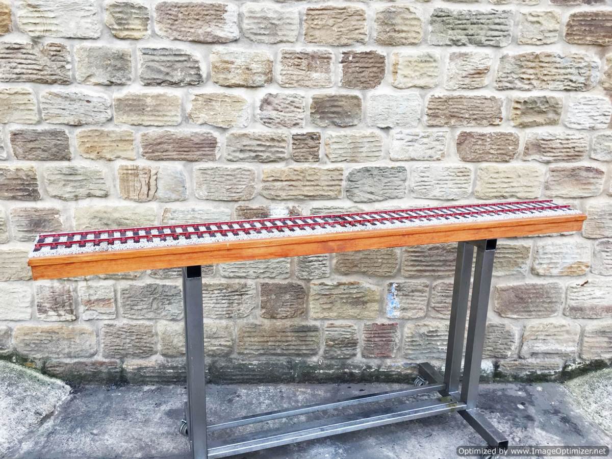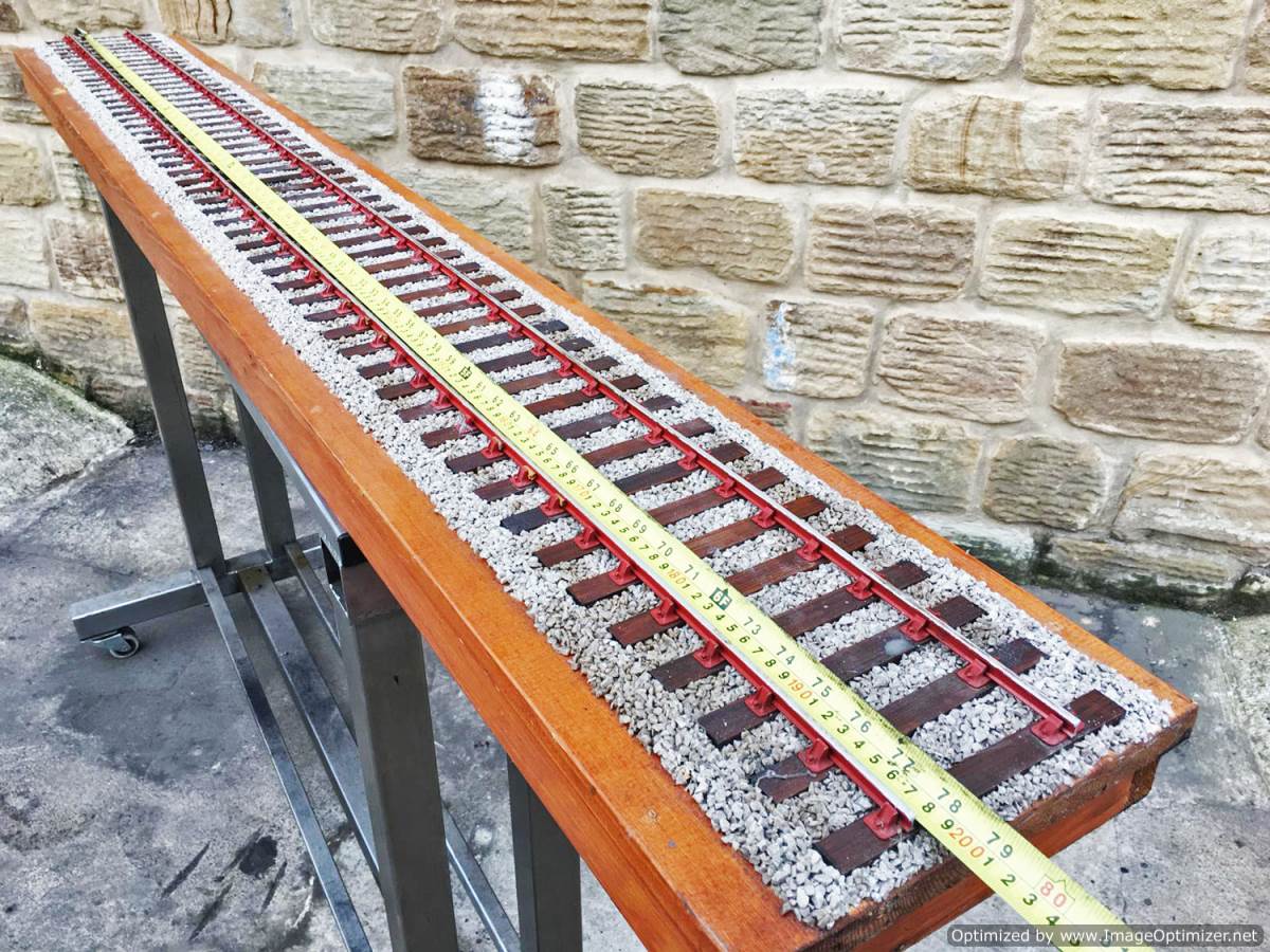Here we have a particularly long and nicely detailed 3 1/2" gauge display track. You'll have to make yourself a bunch of the little wooden chair chocks as they are mostly missing having dropped out in handling.