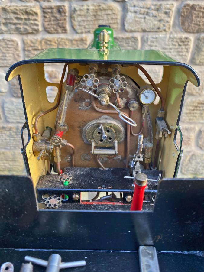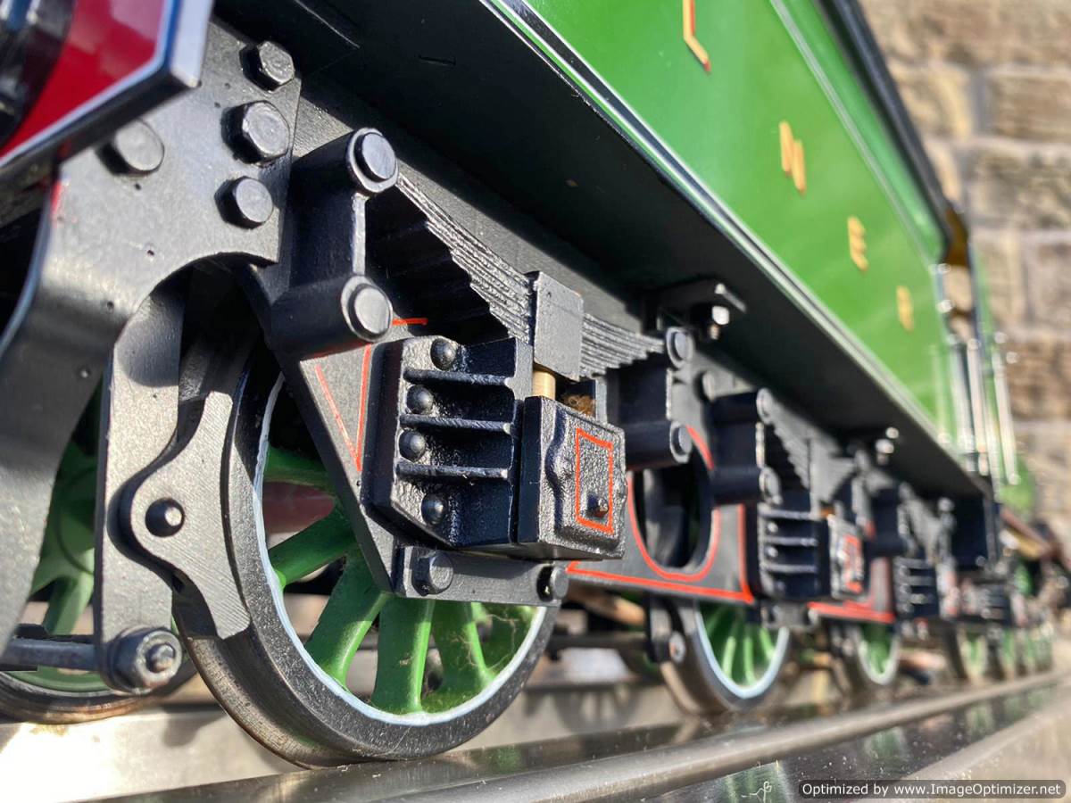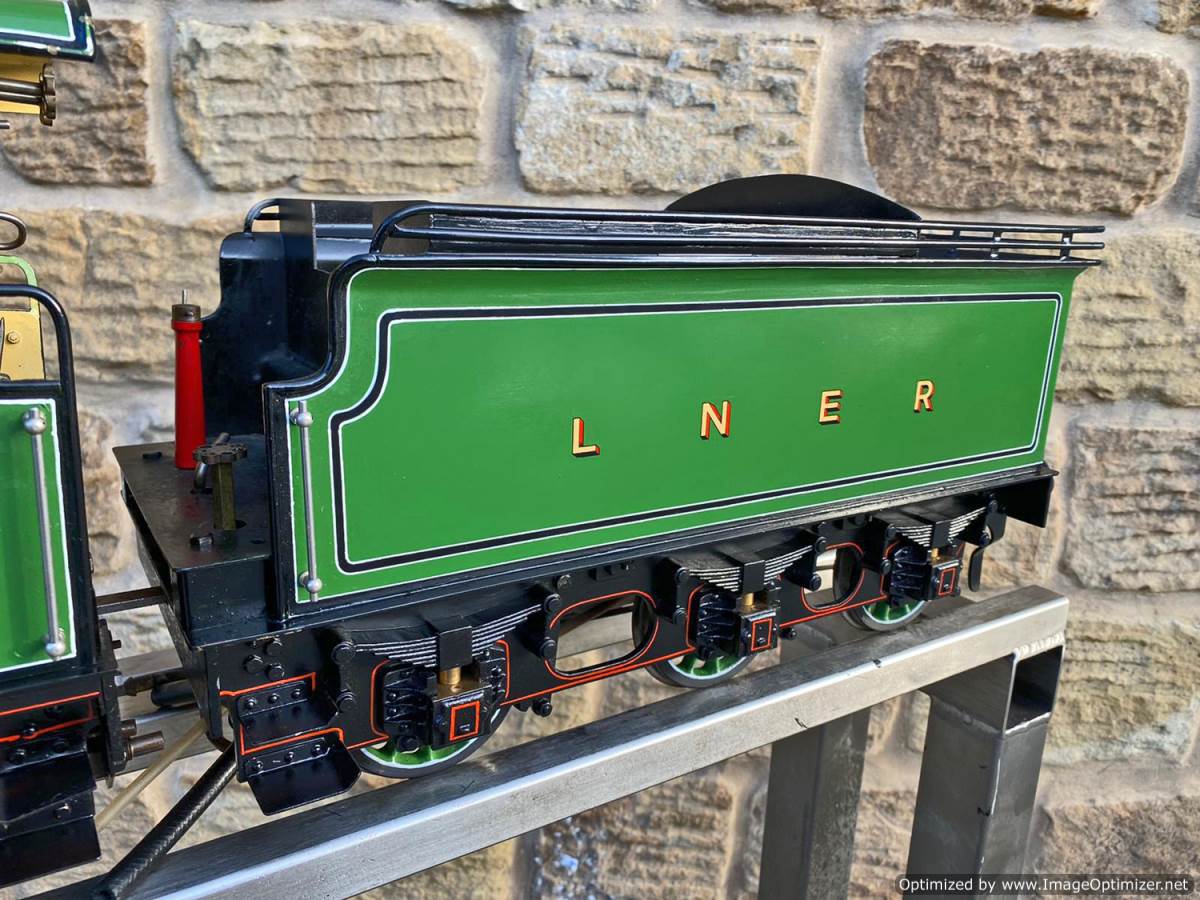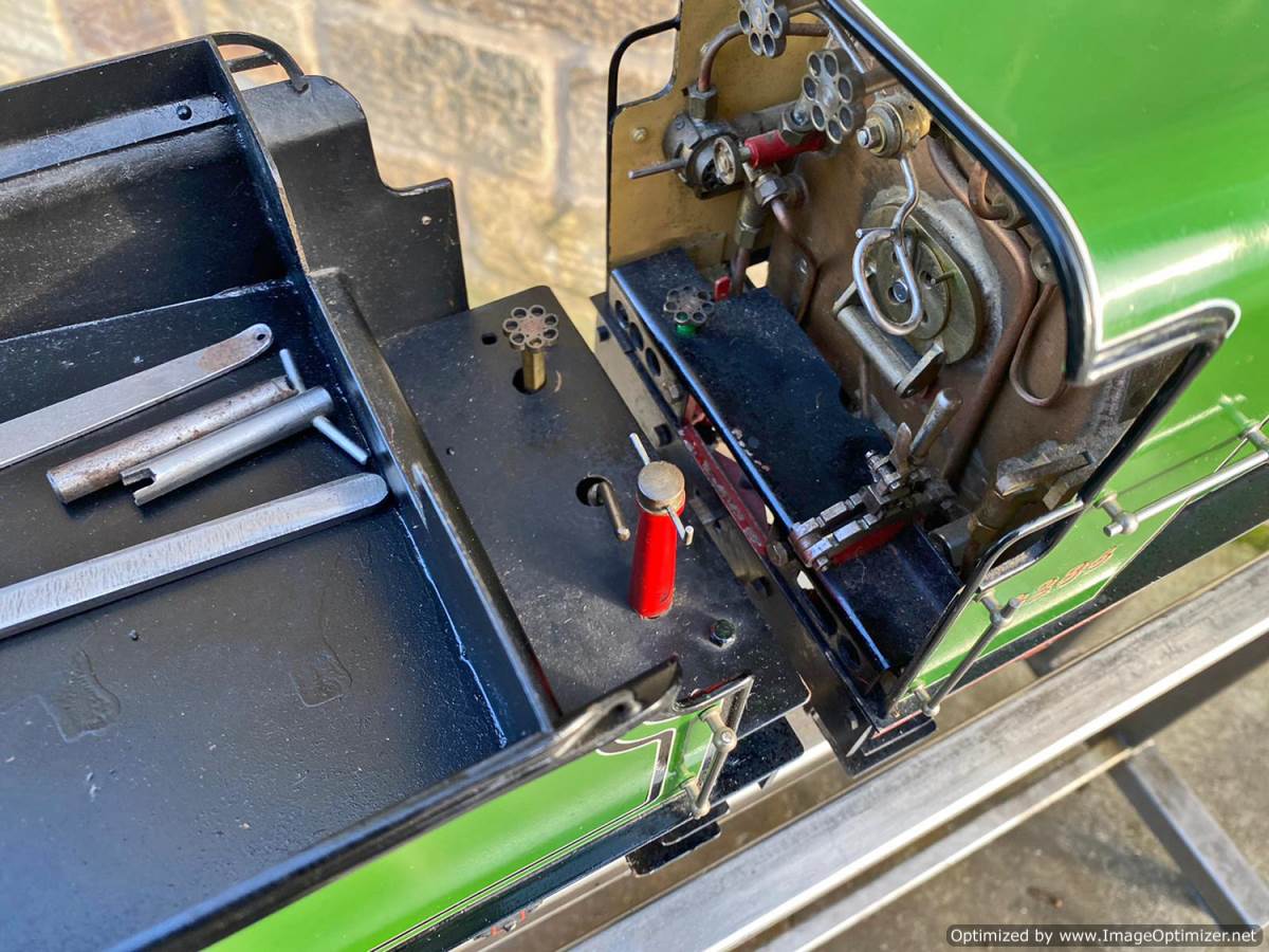 Fitted with an injector, an axle pump with footplate mounted bypass valve and of course the hand pump in the tender. Lubrication is mechanical and hidden under the front running boards. The boiler is copper and silver soldered and of course comes fully tested and ready to play.