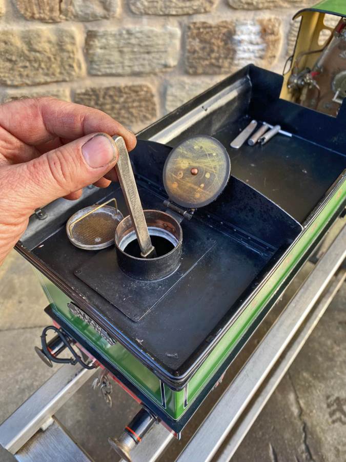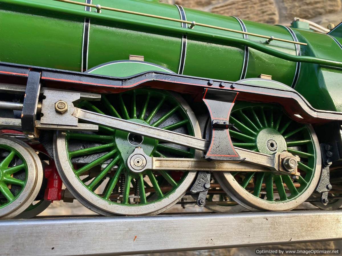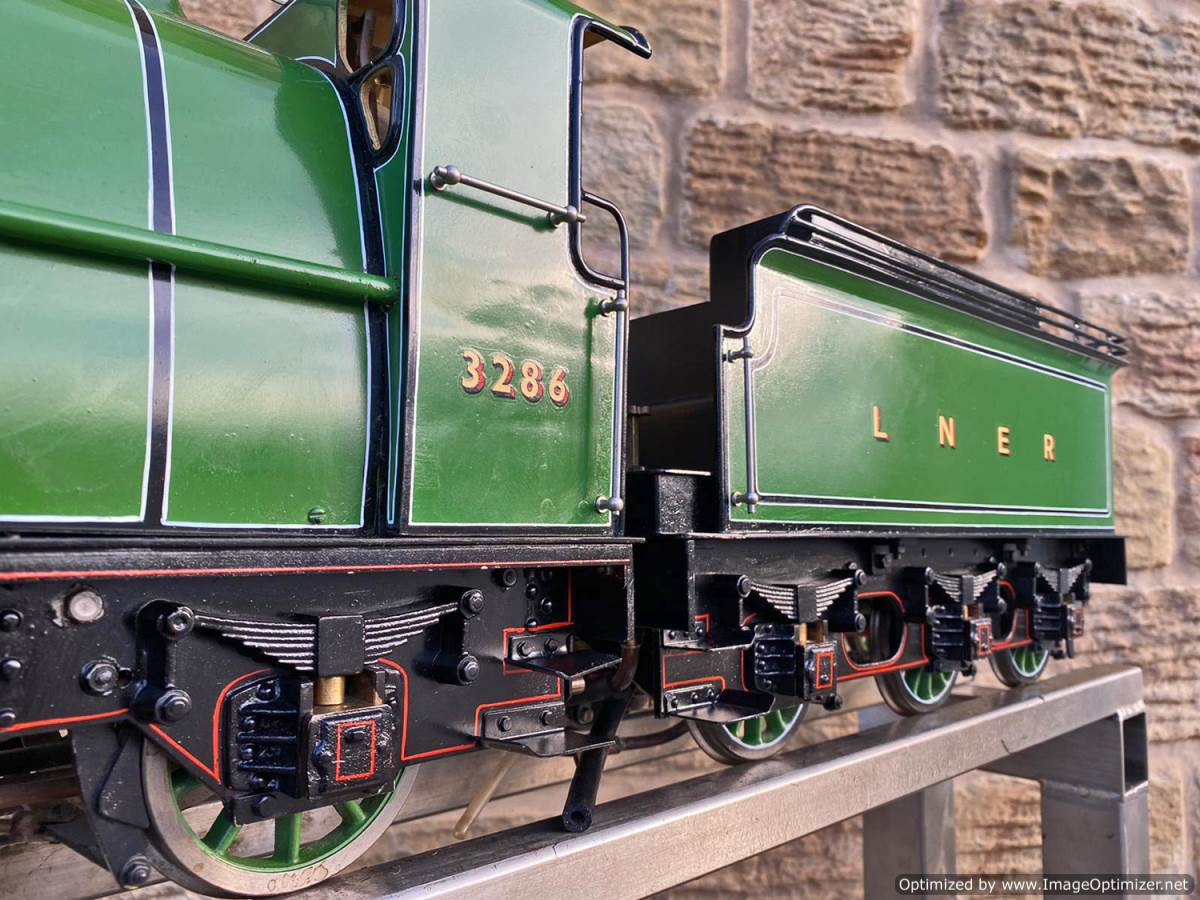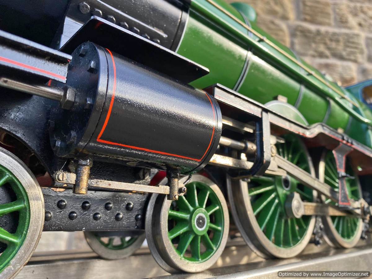Fitted with an injector, an axle pump with footplate mounted bypass valve and of course the hand pump in the tender. Lubrication is mechanical and hidden under the front running boards. The boiler is copper and silver soldered and of course comes fully tested and ready to play.