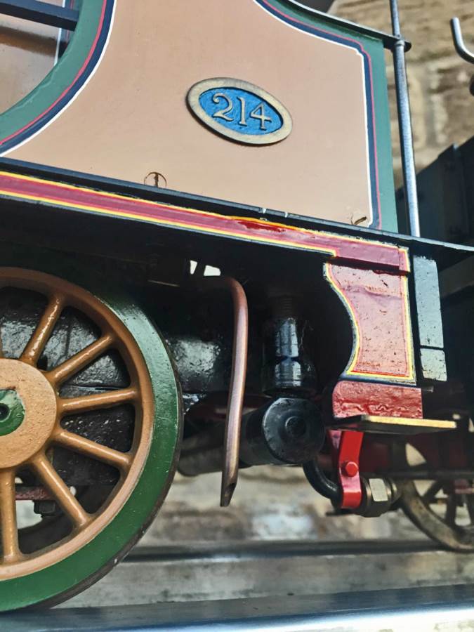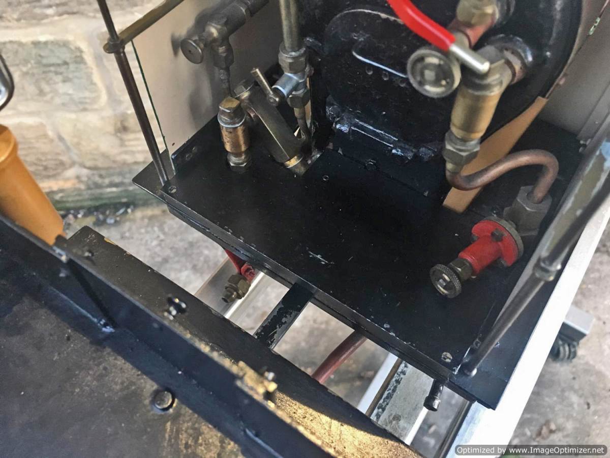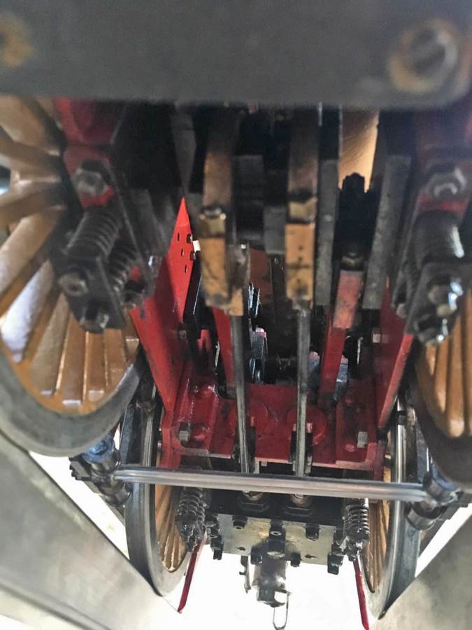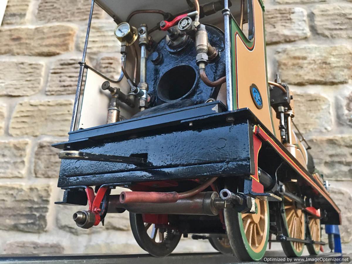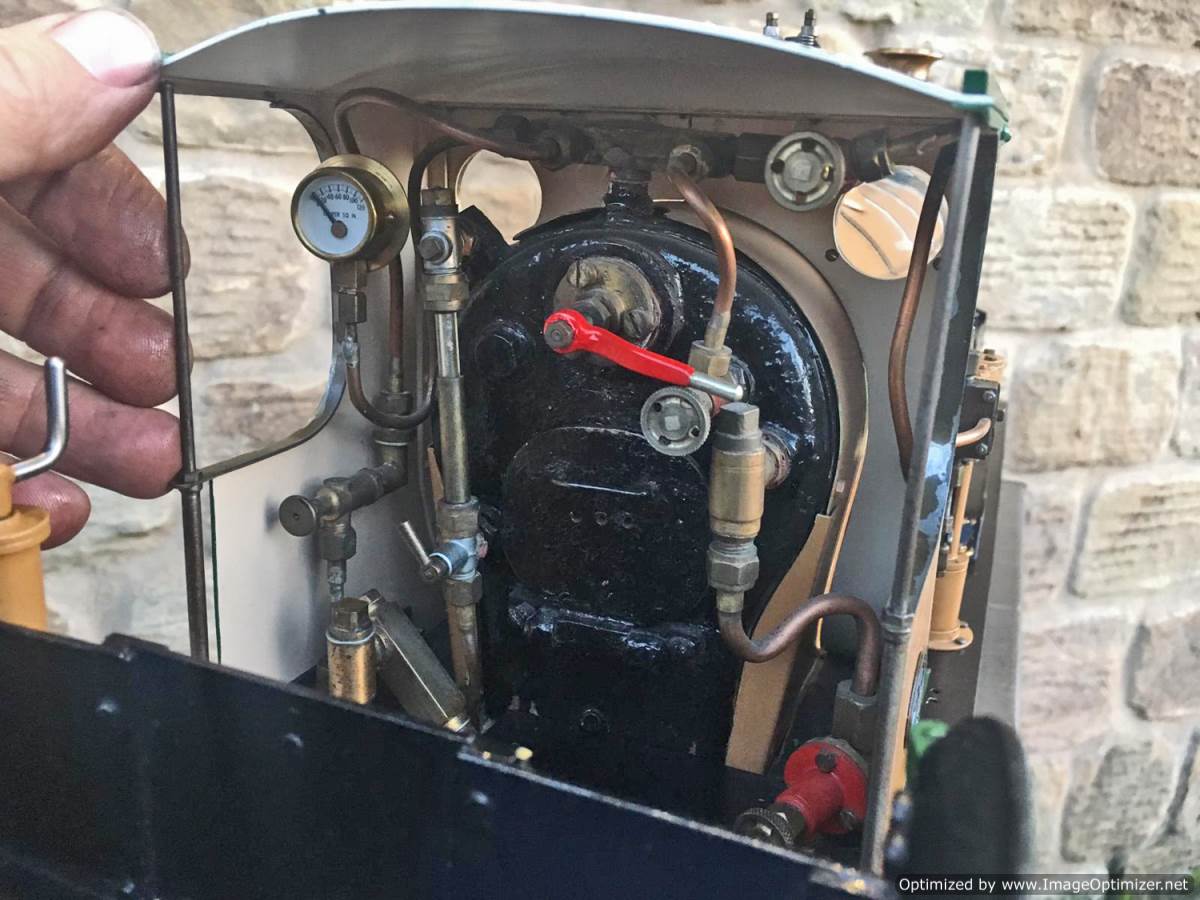Fitted with a crank pin pump for water, mounted underneath the cab and driven by a rod from the rear driving wheel crank pin and fed through a bypass valve on the footplate.  There is also a large hand pump in the tender for water as well.  Lubrication is a simple large displacement one under the front running boards feeding directly into the valve chest.  Boiler is copper of course and superheated, and unfortunately we've found a couple of weaps on the stays in the firebox under our twice working pressure hydraulic.  We've done our sums and it's not economically sensible for us to strip the model down and repair the weeps here in house, so she's now being offered here at a much reduced price and as a project for someone instead to have a go at caulking the weeps.