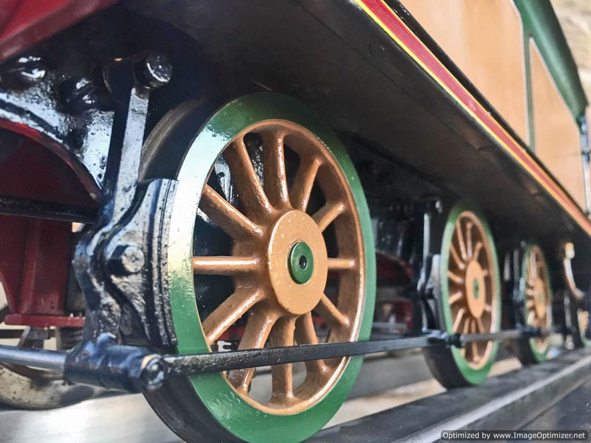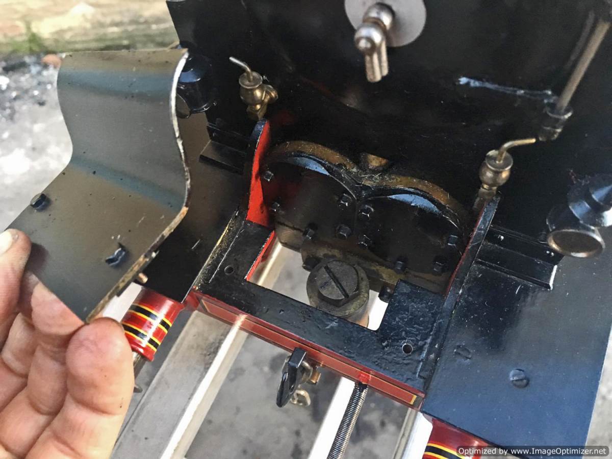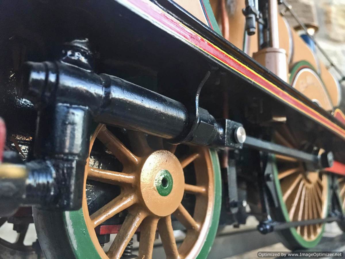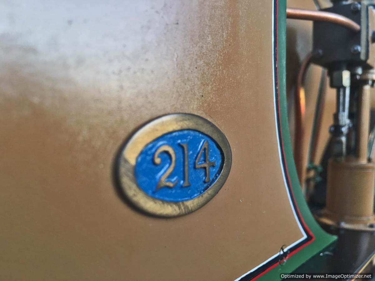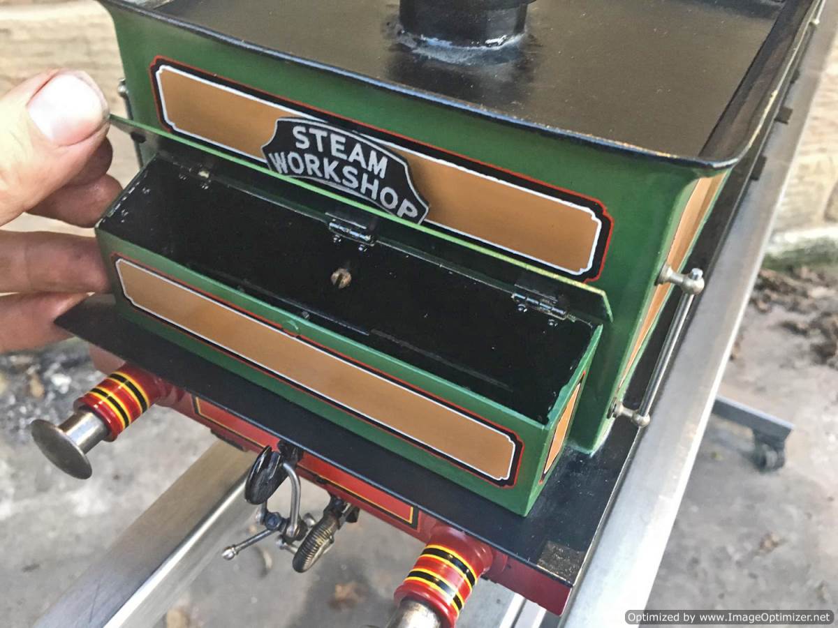 Fitted with a crank pin pump for water, mounted underneath the cab and driven by a rod from the rear driving wheel crank pin and fed through a bypass valve on the footplate.  There is also a large hand pump in the tender for water as well.  Lubrication is a simple large displacement one under the front running boards feeding directly into the valve chest.  Boiler is copper of course and superheated, and unfortunately we've found a couple of weaps on the stays in the firebox under our twice working pressure hydraulic.  We've done our sums and it's not economically sensible for us to strip the model down and repair the weeps here in house, so she's now being offered here at a much reduced price and as a project for someone instead to have a go at caulking the weeps.