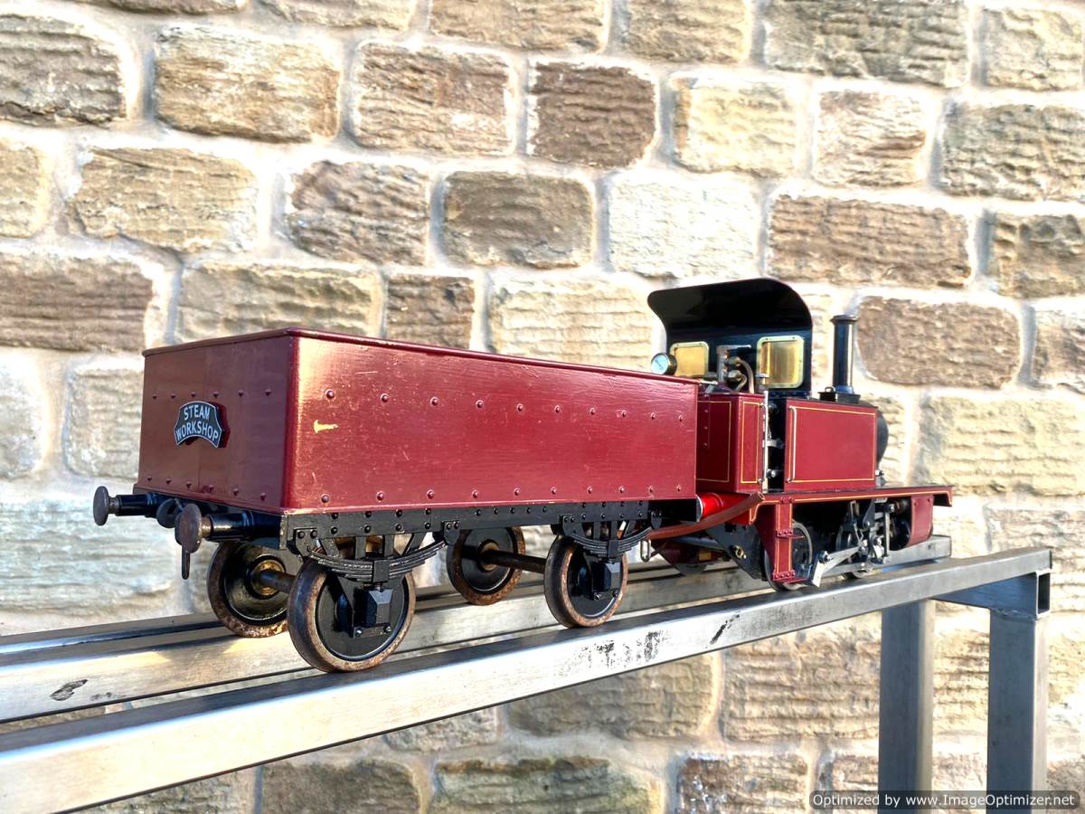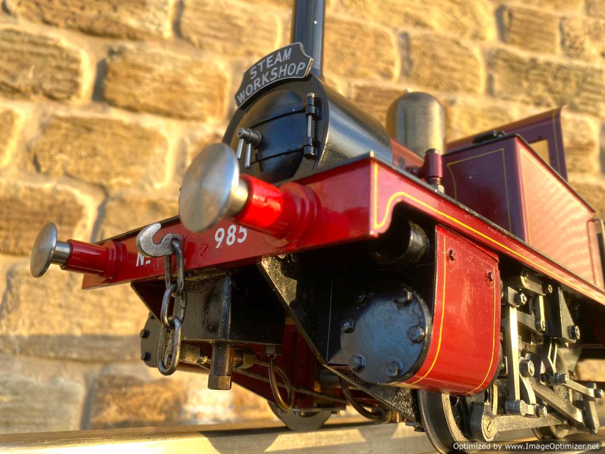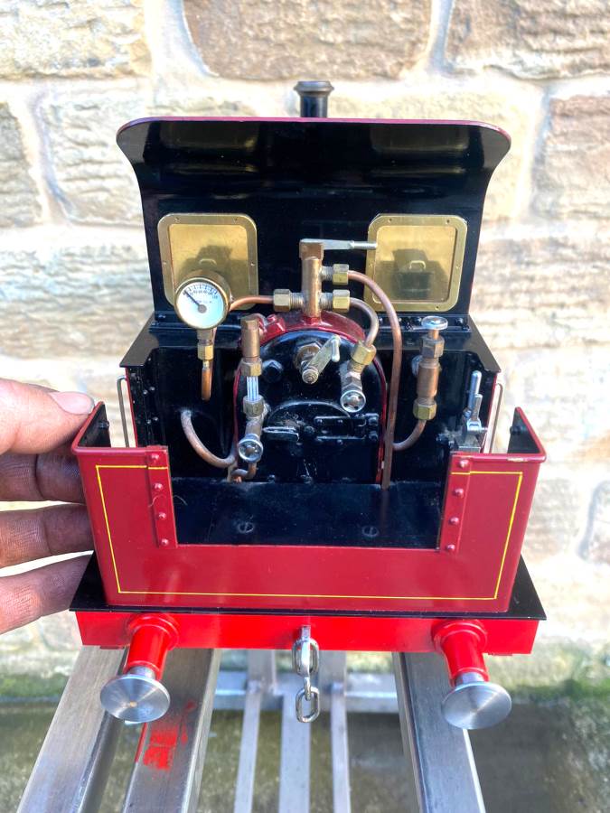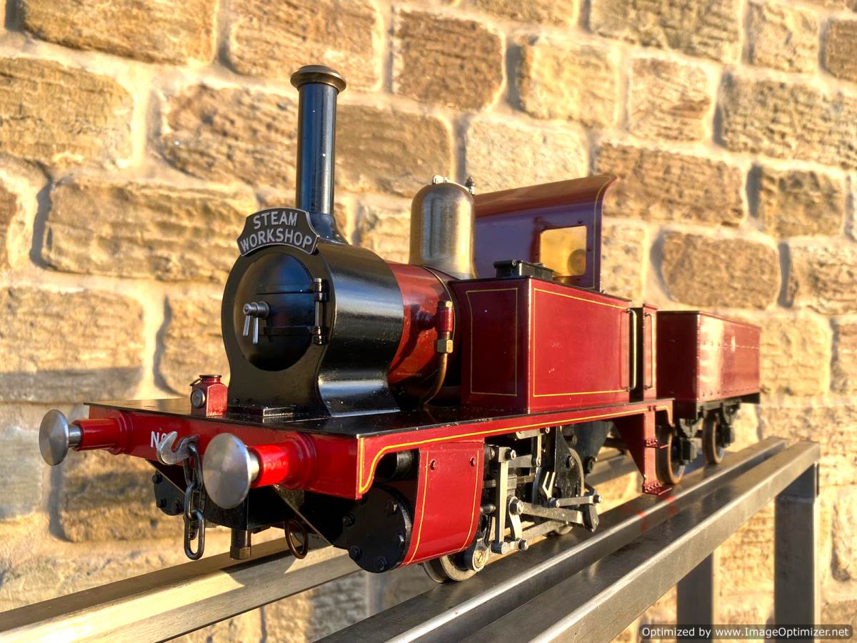 Here we have a particularly well presented 3 1/2" gauge LBCS 'Tich' in this instance it's in the original small boiler format.  This is the Walschearts valve gear version as well, and so runs really nicely.  The boiler is copper and silver soldered and comes fully tested with certificates so she's ready to play.  The salter safety valves of the small boilered version are always a lovely Victorian touch.  Mechanically the valve gear and bushes are good, and although she's been steamed, it doesn't look like she's been run very much at all.  There's also a well conceived water and coal carrying tender to match, which makes this little loco a really nicely done and usable little thing.
