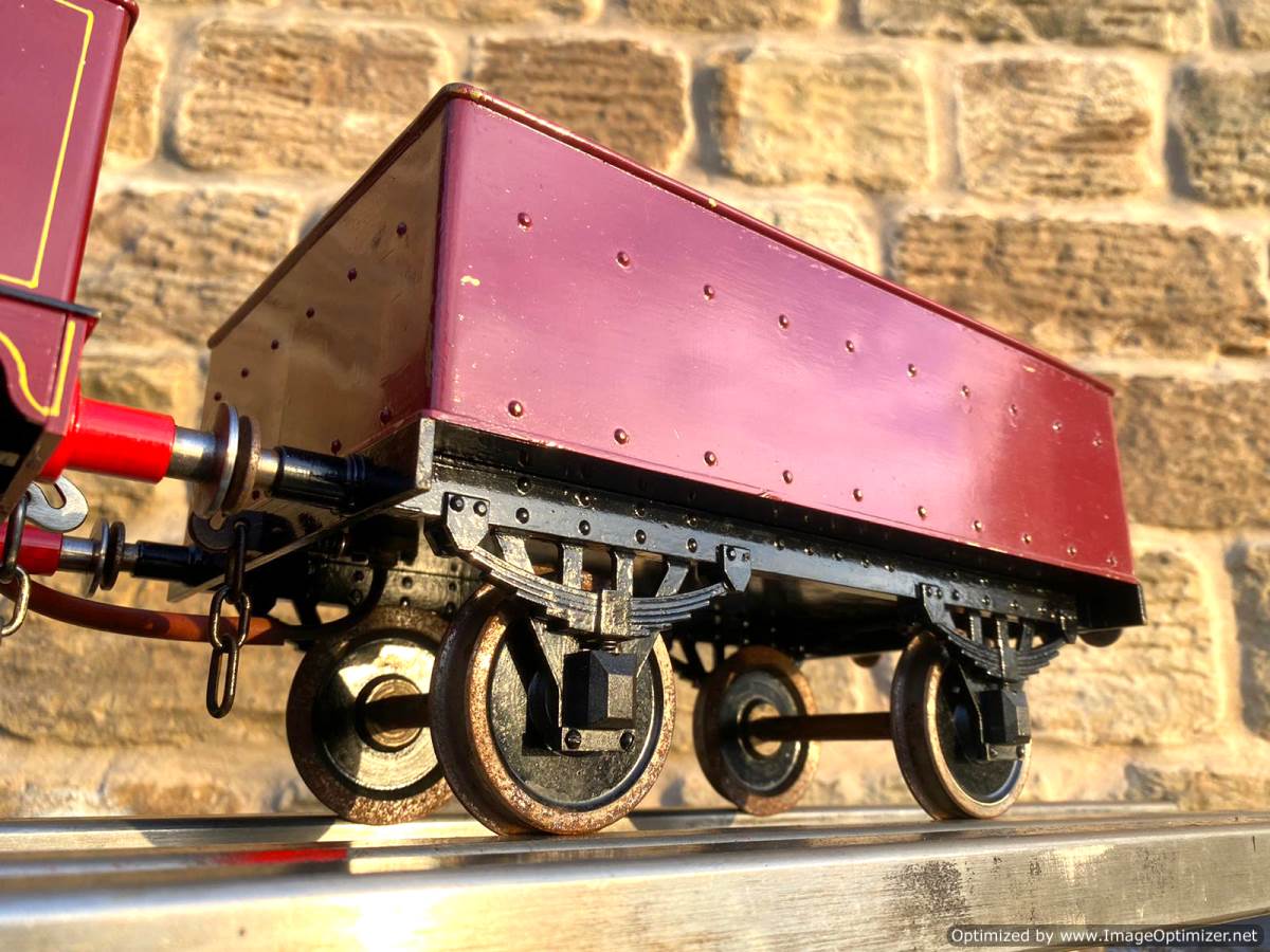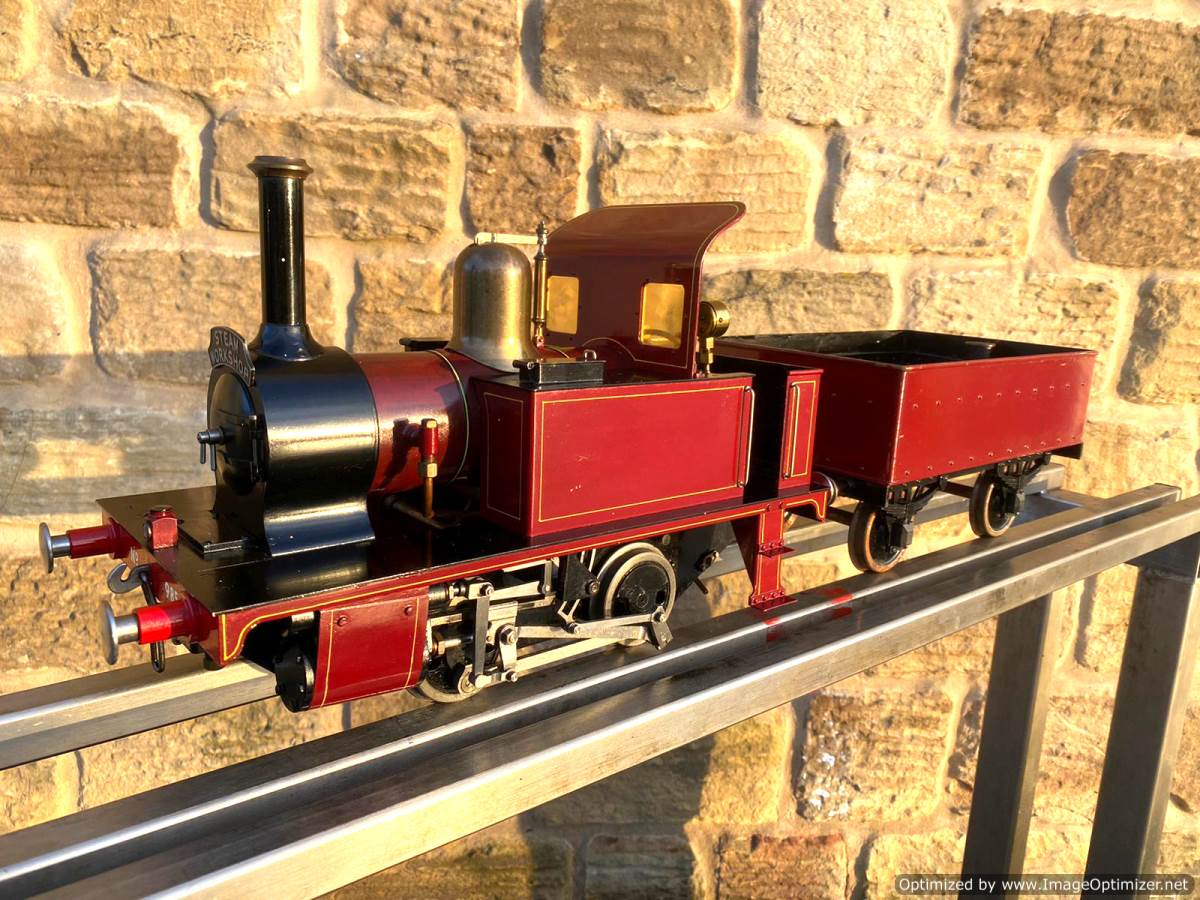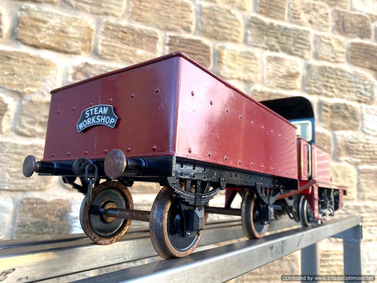 Here we have a particularly well presented 3 1/2" gauge LBCS 'Tich' in this instance it's in the original small boiler format.  This is the Walschearts valve gear version as well, and so runs really nicely.  The boiler is copper and silver soldered and comes fully tested with certificates so she's ready to play.  The salter safety valves of the small boilered version are always a lovely Victorian touch.  Mechanically the valve gear and bushes are good, and although she's been steamed, it doesn't look like she's been run very much at all.  There's also a well conceived water and coal carrying tender to match, which makes this little loco a really nicely done and usable little thing.