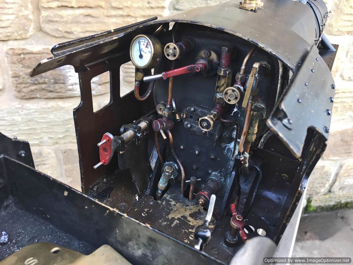 Water is fed by an injector, and axle pump with footplate mounted bypass valve and a nice big water pump in the tender. Lubrication is mechanical and as usual hidden under the front running boards. She can come with a full fresh 4 year hydraulic boiler test as well as a fresh annual steam test so she is ready to hit the track and play!
