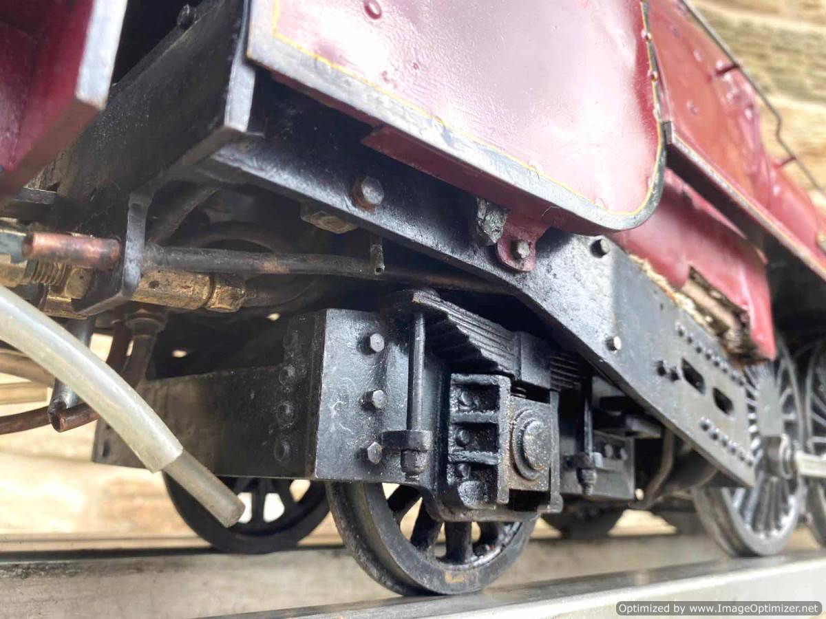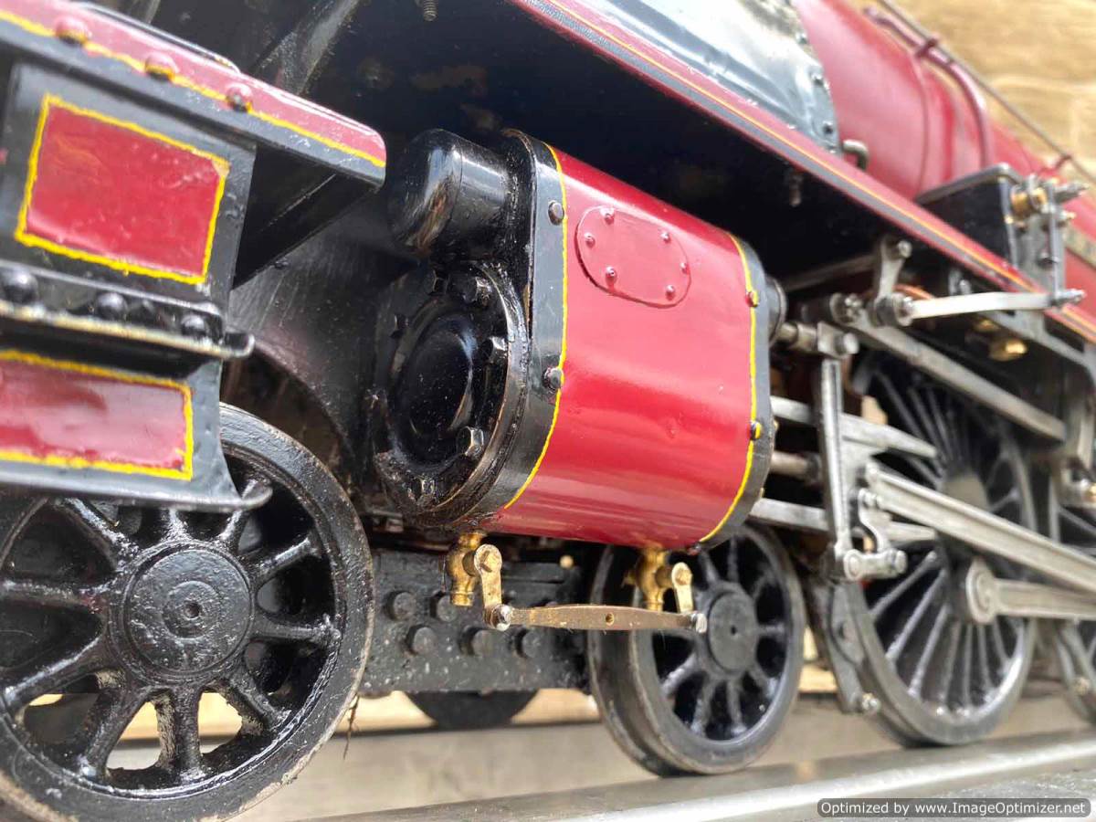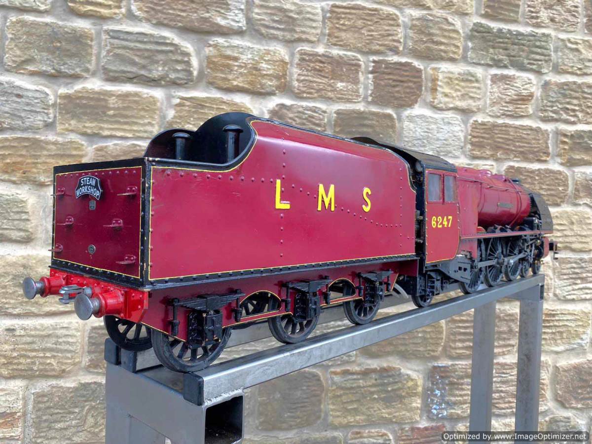 Here we have a 3 1/2" gauge LMS Duchess. She's a full 4 cylinder loco and generally well engineered and certainly runs nicely. It's in interesting loco and somehow slightly truncated in appearance from certain angles, although it's certainly captured the essence of the semi streamlined Coronation class very nicely.