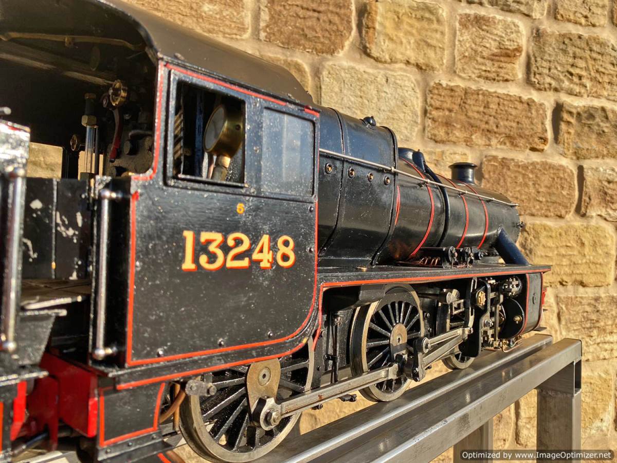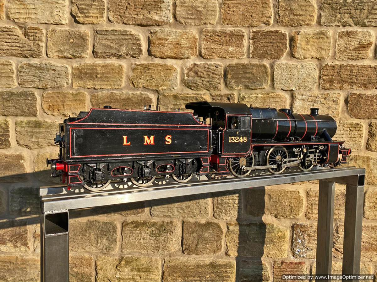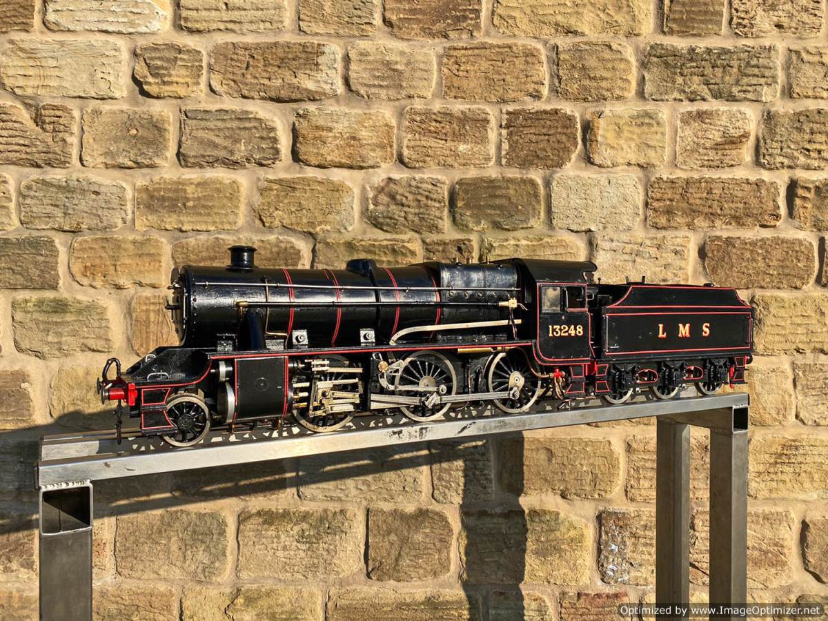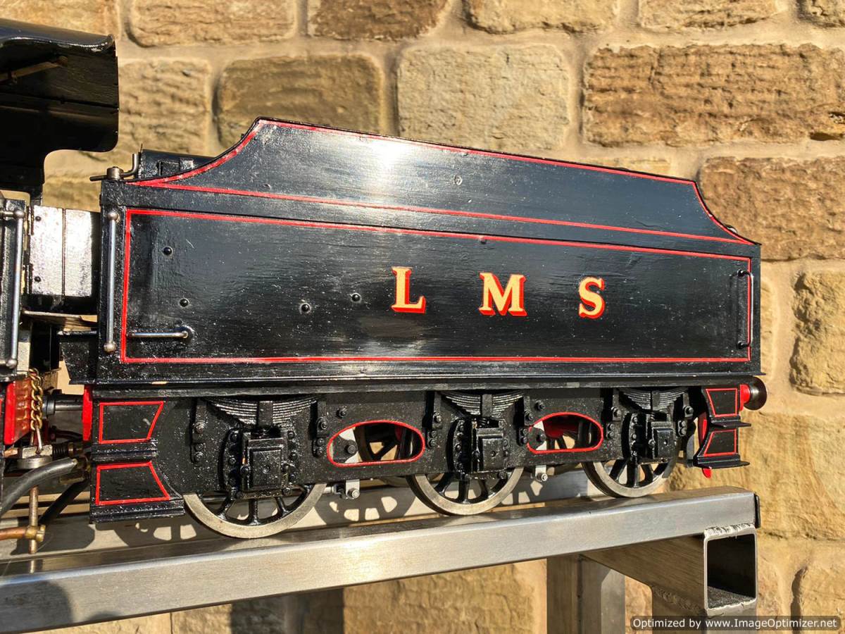 Here we have a 3 1/2" gauge LMS Stanier Mogul built to the well proven LBSC Princess Marina design.  Quite a lot of nice detail on this one.  The cylinder pressure relief valves, valve slide bar detailing, cab doors as well as the nicely detailed tender.  Not just a 'basic' Princess Marina, but a model where the builder has looked at the real locomotive and tried to push the model toward the prototype.  Everything mechanically is still nicely tight and well machined, so we expect it to run as well as it looks.