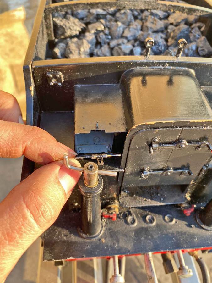 Fitted with an injector, as well as an axle pump with footplate mounted bypass valve and of course the hand pump in the tender.  Lubrication is a nice large mechanical one under the front running boards and driven of a solid eccentric between the frames.  There is even a steam brake which is nicely made,.... although as with most steam brakes on miniatures of this size, it probably won't be of much actual use in the real world.