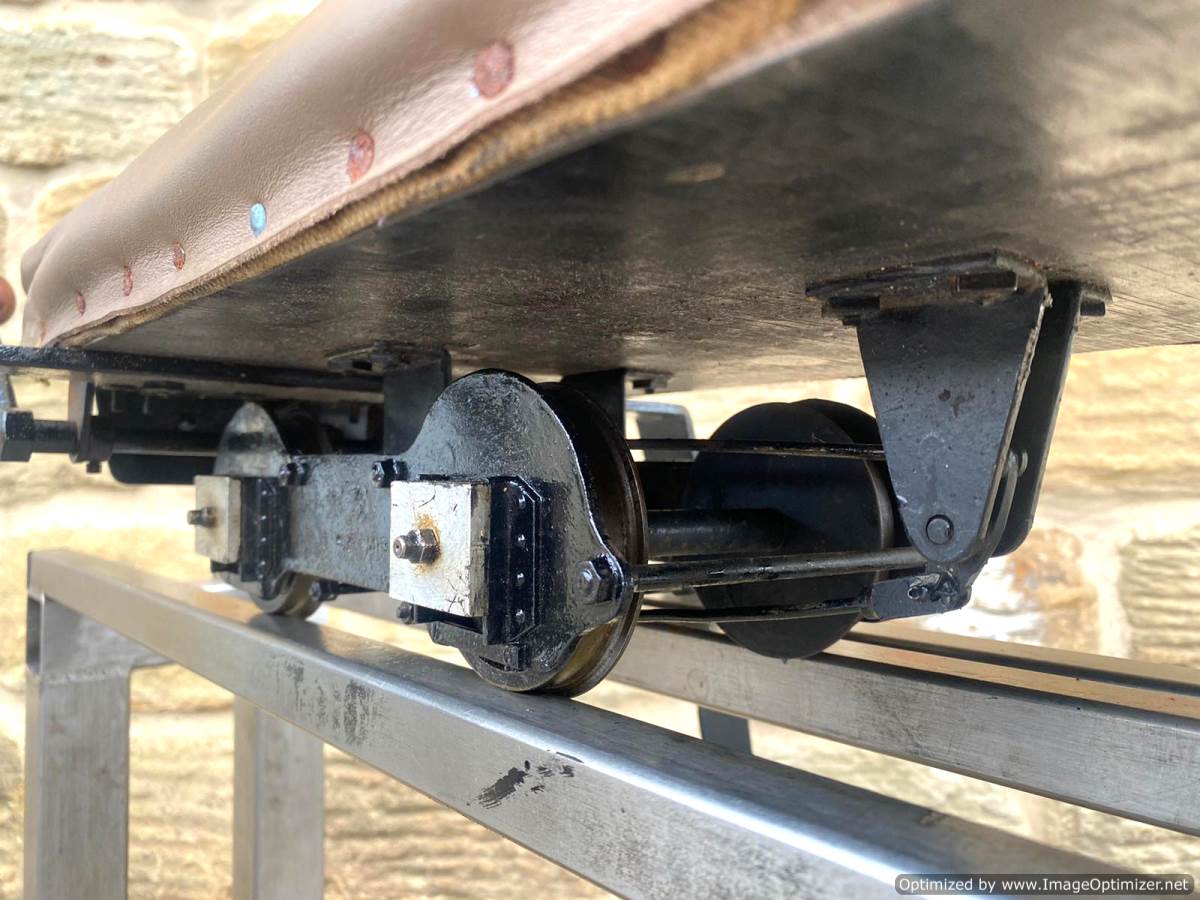 Here we have a pretty tidy 3 1/2" gauge raised track driving truck with both brakes and bogies. There are grease nipples that appear to feed roller bearings too. Have a good look at the photos to hopefully give you the idea.