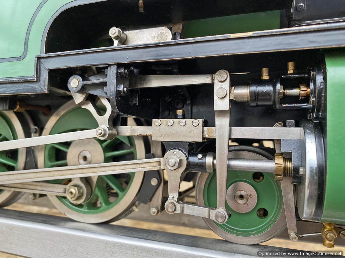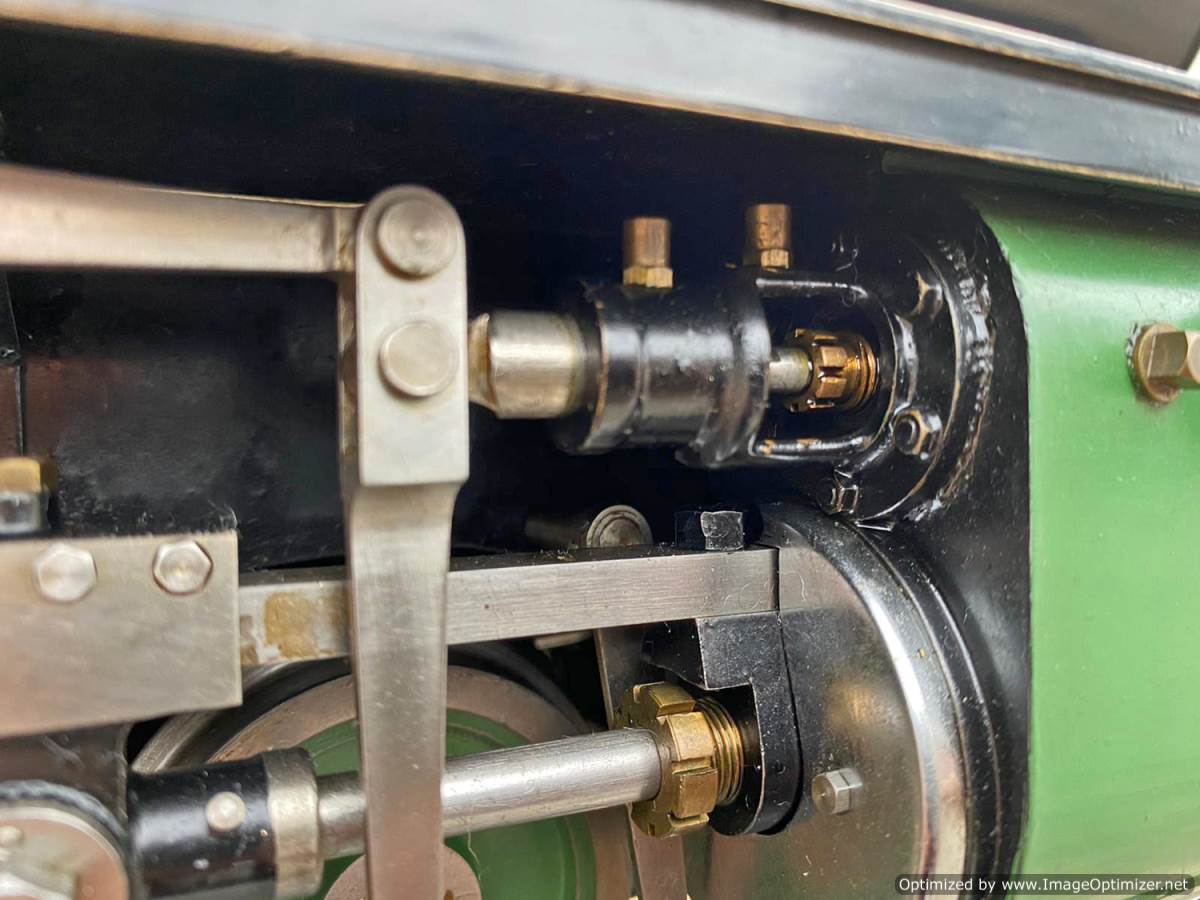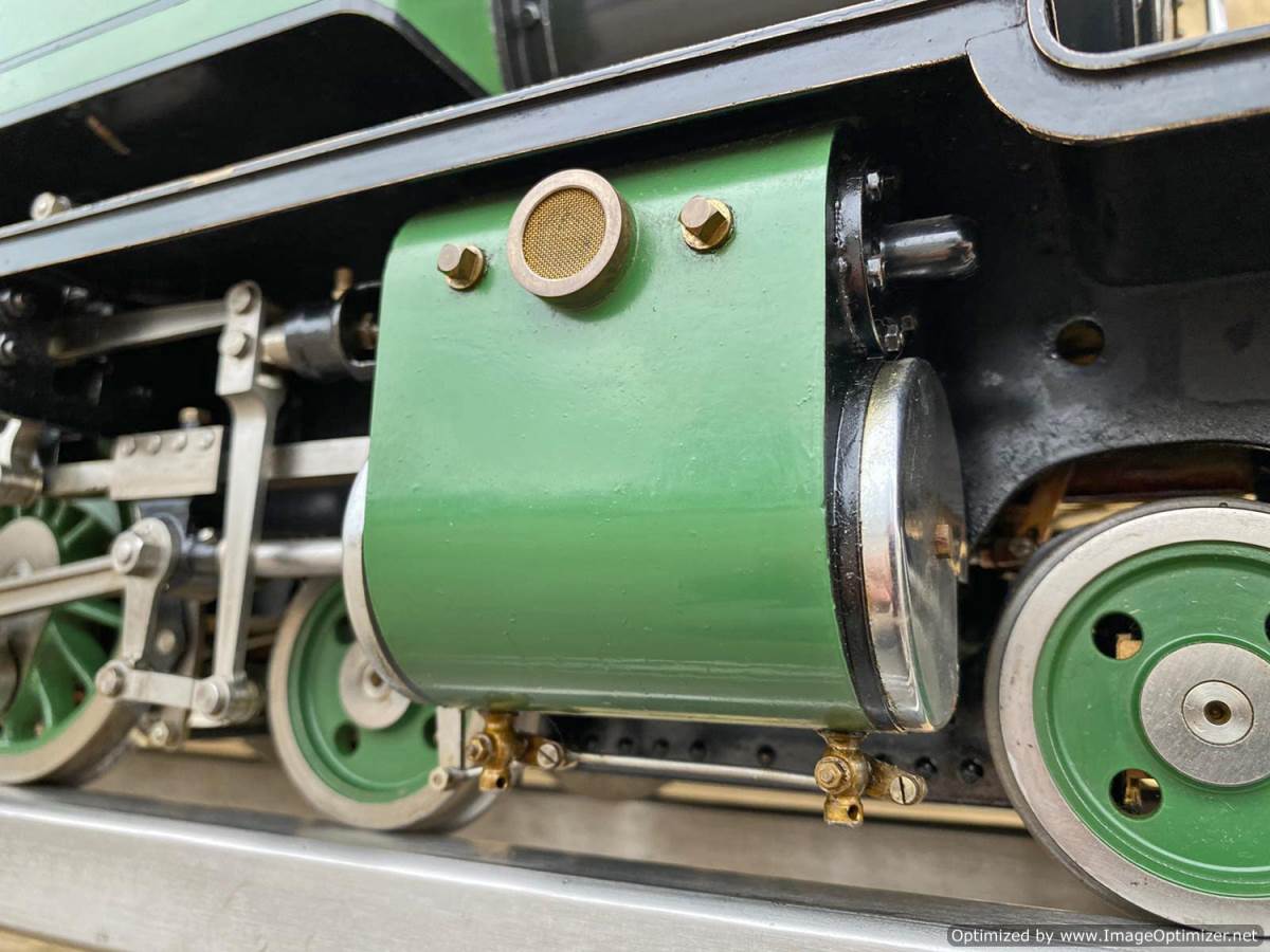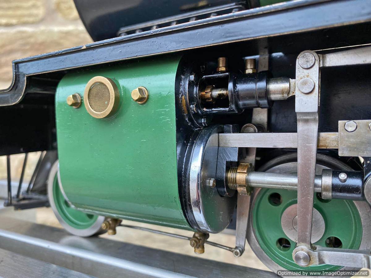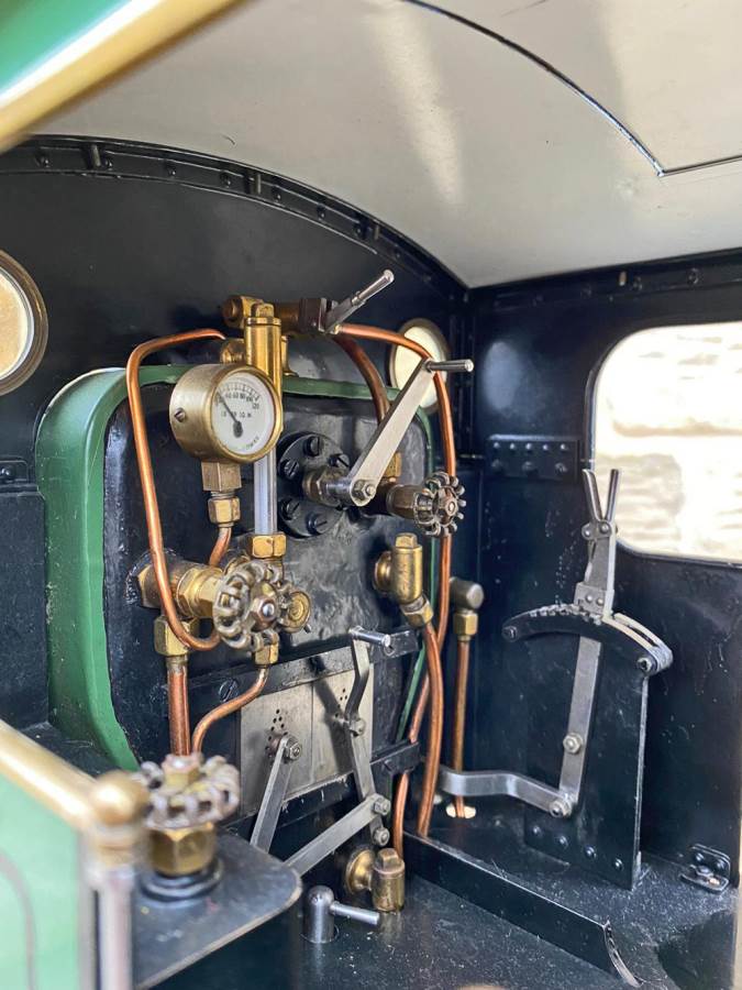 The boiler is silver soldered copper as you'd expect, and will come fully hydraulically tested to twice working pressure and with a fresh steam test so she's ready to play.  Fitted with an injector, and axle pump with footplate mounted bypass valve as well as a hand pump in the tank.  Lubrication is mechanical and hidden neatly under the front running board.  The machining quality is first class and loaded with finesse.  The builder has clearly made his own patterns and things like the valve guide prackets and motion brackets are beautiful things in their own right.  This is what we call a 'gudun', and whether you run it or just look at it, it's certainly a beautiful model to add to any collection.