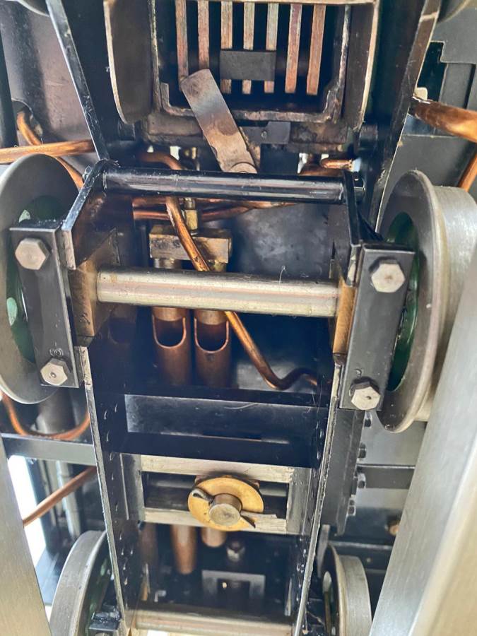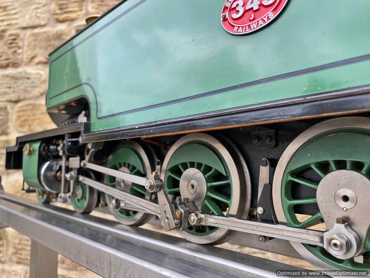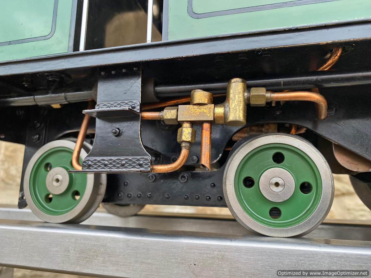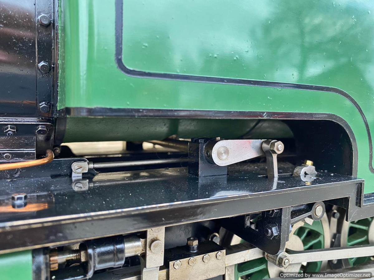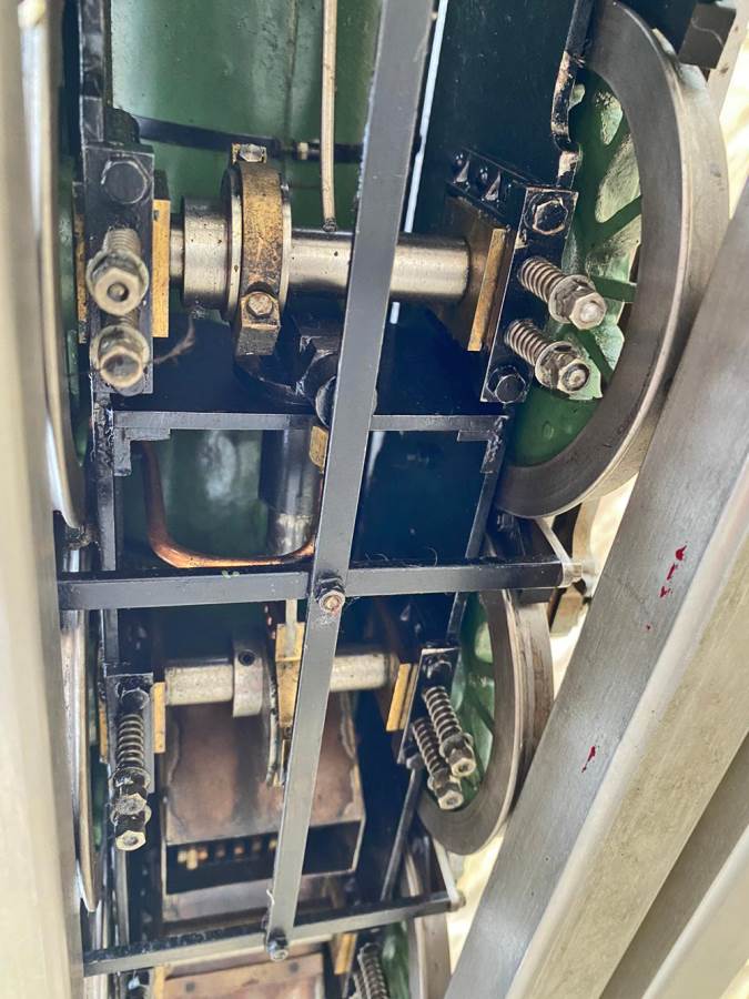 The boiler is silver soldered copper as you'd expect, and will come fully hydraulically tested to twice working pressure and with a fresh steam test so she's ready to play.  Fitted with an injector, and axle pump with footplate mounted bypass valve as well as a hand pump in the tank.  Lubrication is mechanical and hidden neatly under the front running board.  The machining quality is first class and loaded with finesse.  The builder has clearly made his own patterns and things like the valve guide prackets and motion brackets are beautiful things in their own right.  This is what we call a 'gudun', and whether you run it or just look at it, it's certainly a beautiful model to add to any collection.