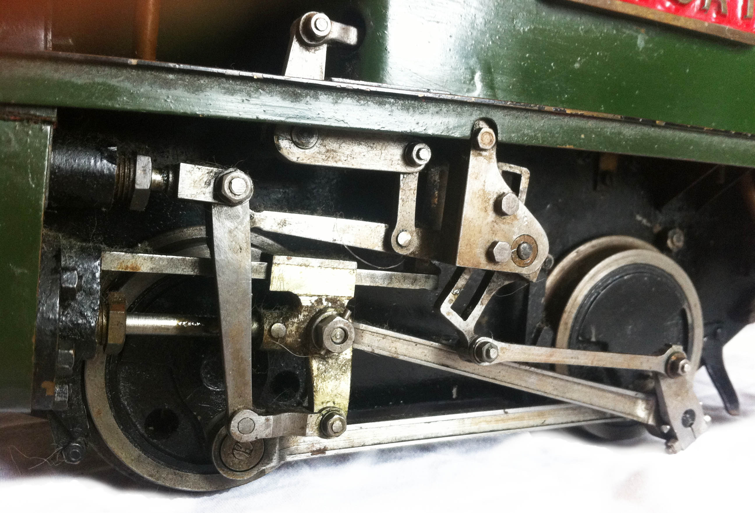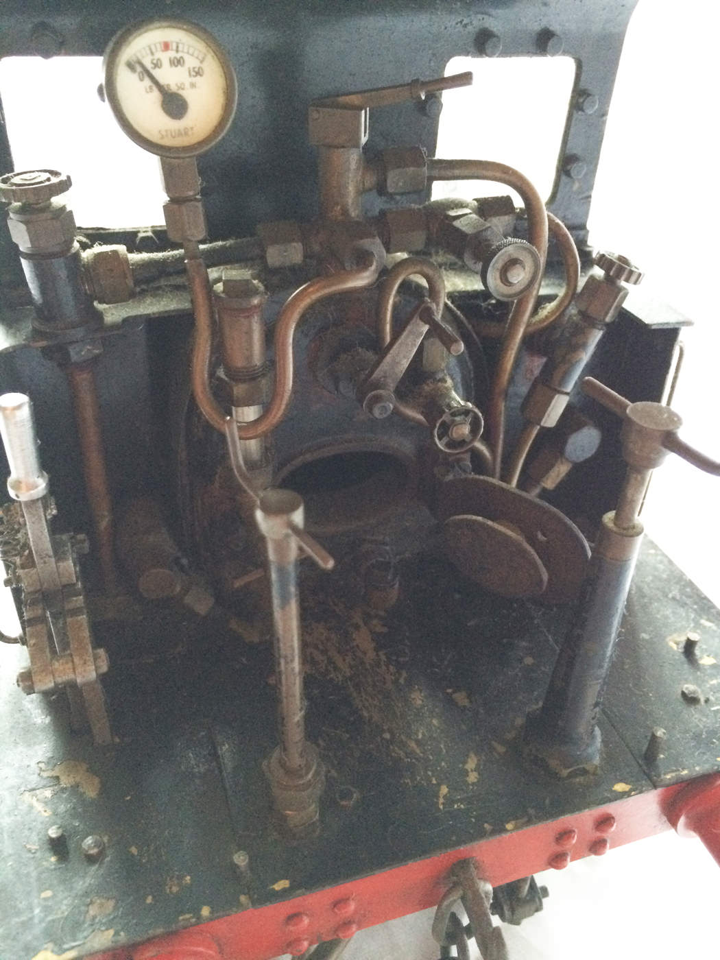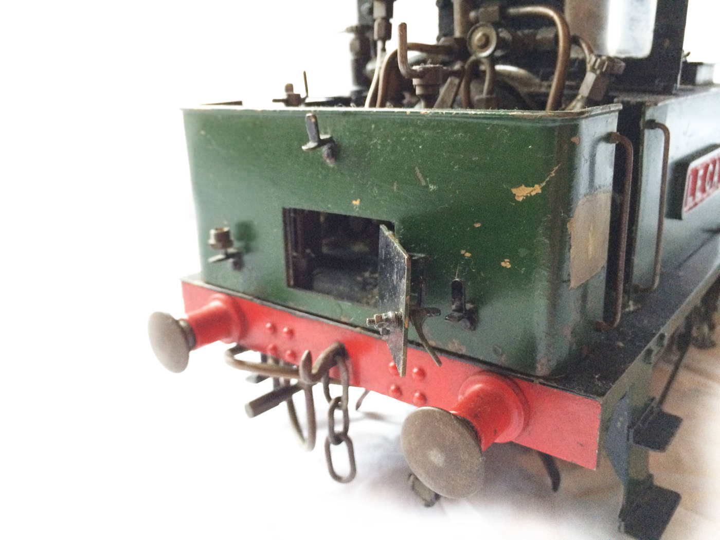 It is fitted with an injector, an axle pump with bypass valve to the tanks, the tanks themselves being fed with an extra water feed pipe that runs subtly between the frames to a riding truck,... to very sensibly provide further water capacity. There is also a hidden hand pump in the right hand tank as well, just in case you are used to firing the full size thing where everything happens a lot slower!