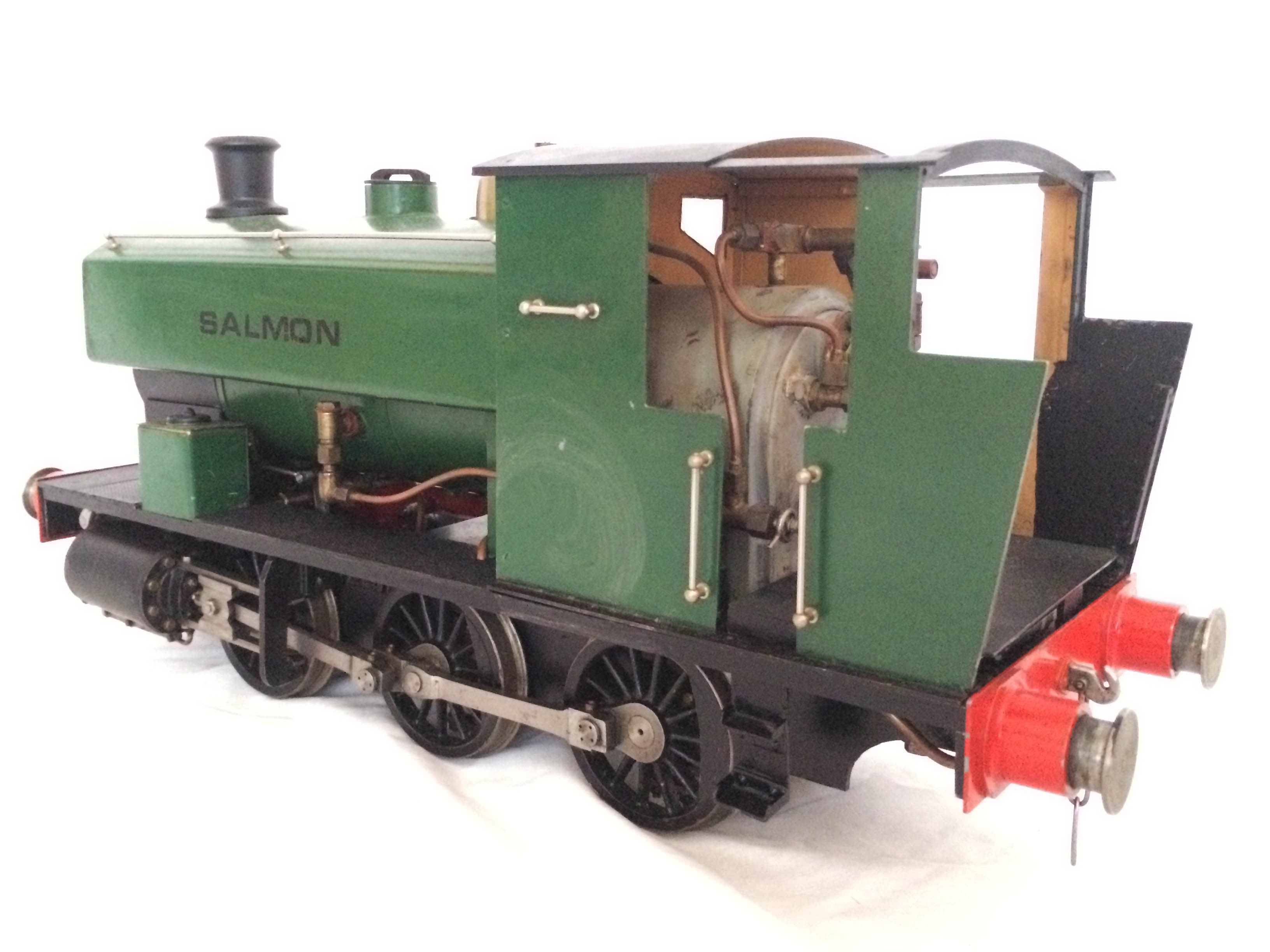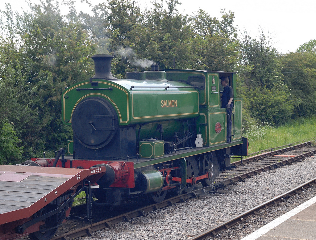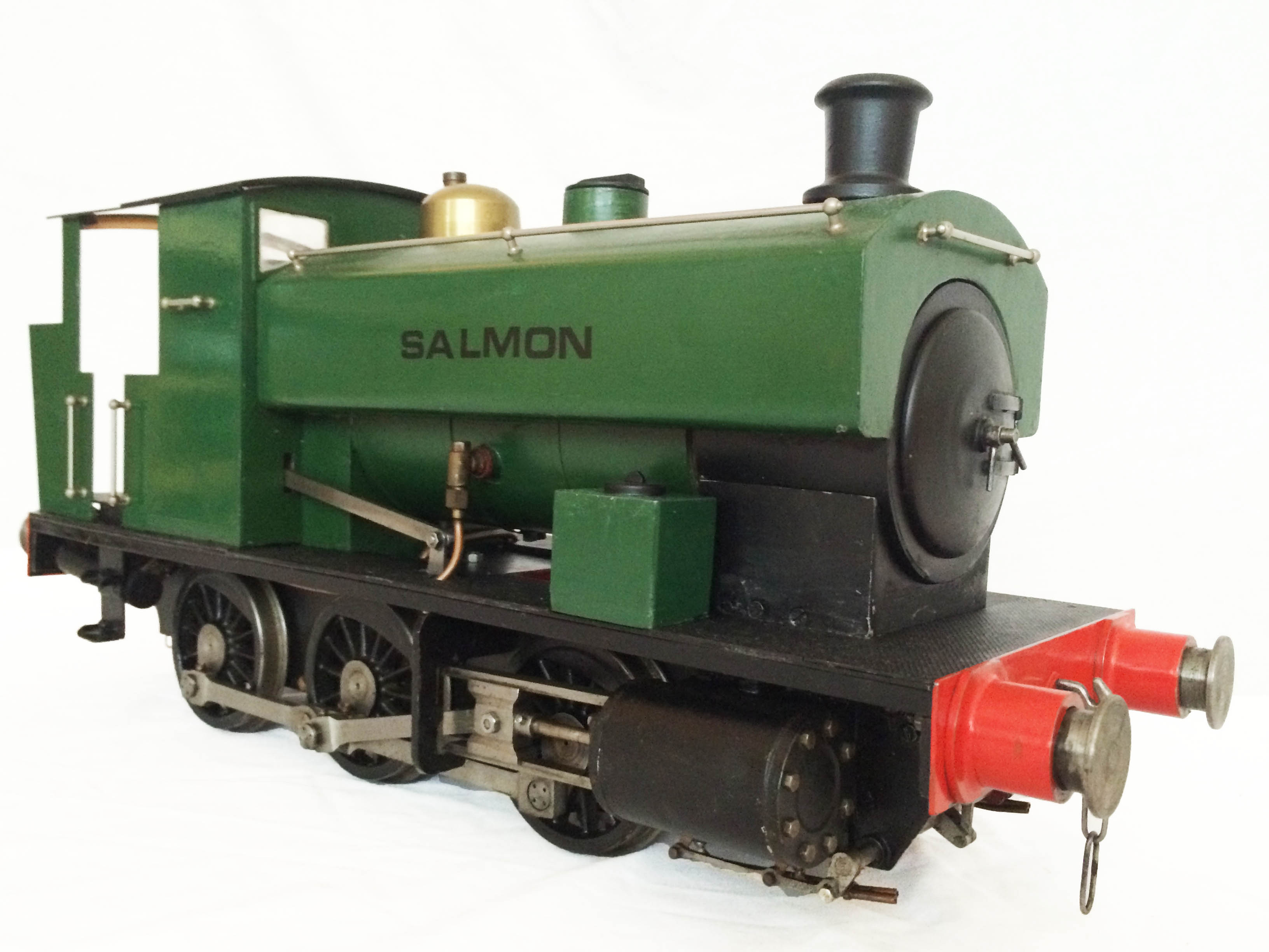 The full size "Salmon" loco, Andrew Barclay Works No 2139 is currently in preservation and operational on the Swindon & Cricklade railway.  It was built in 1942 and delivered to Stanton Ironworks, part of the Harlaxton Ironstone Quarries industry.  After a move to Woolsthorpe in Leicestershire, it entered preservation on the North Yorks Moors Railway in 1980.  It spent a period in Rutland before moving to the Swindon & Cricklade railway in 2000.