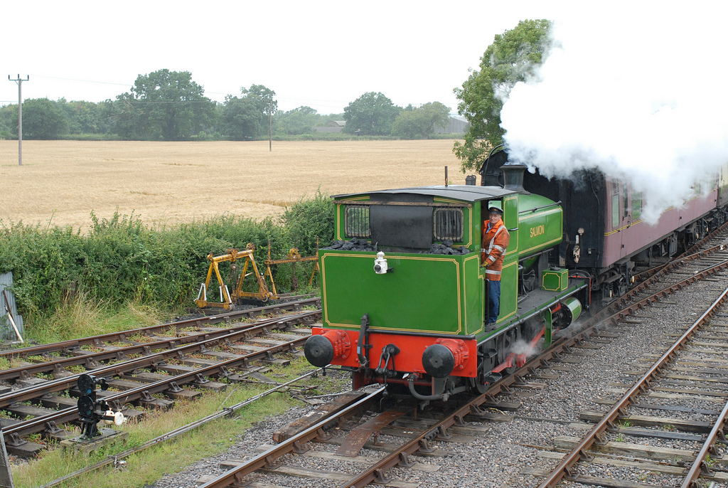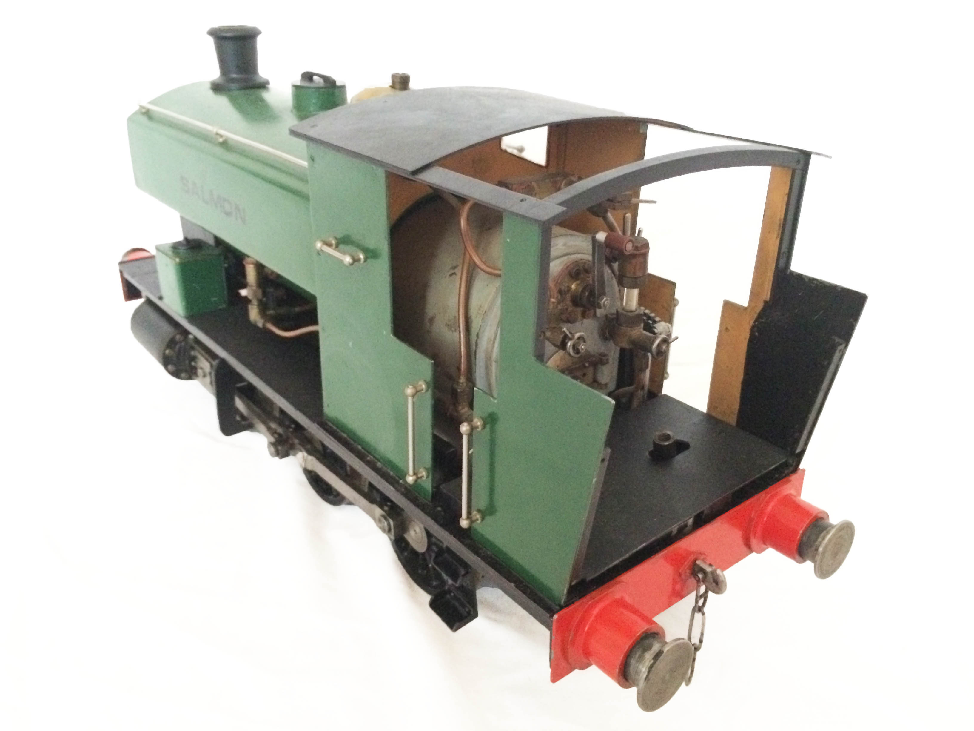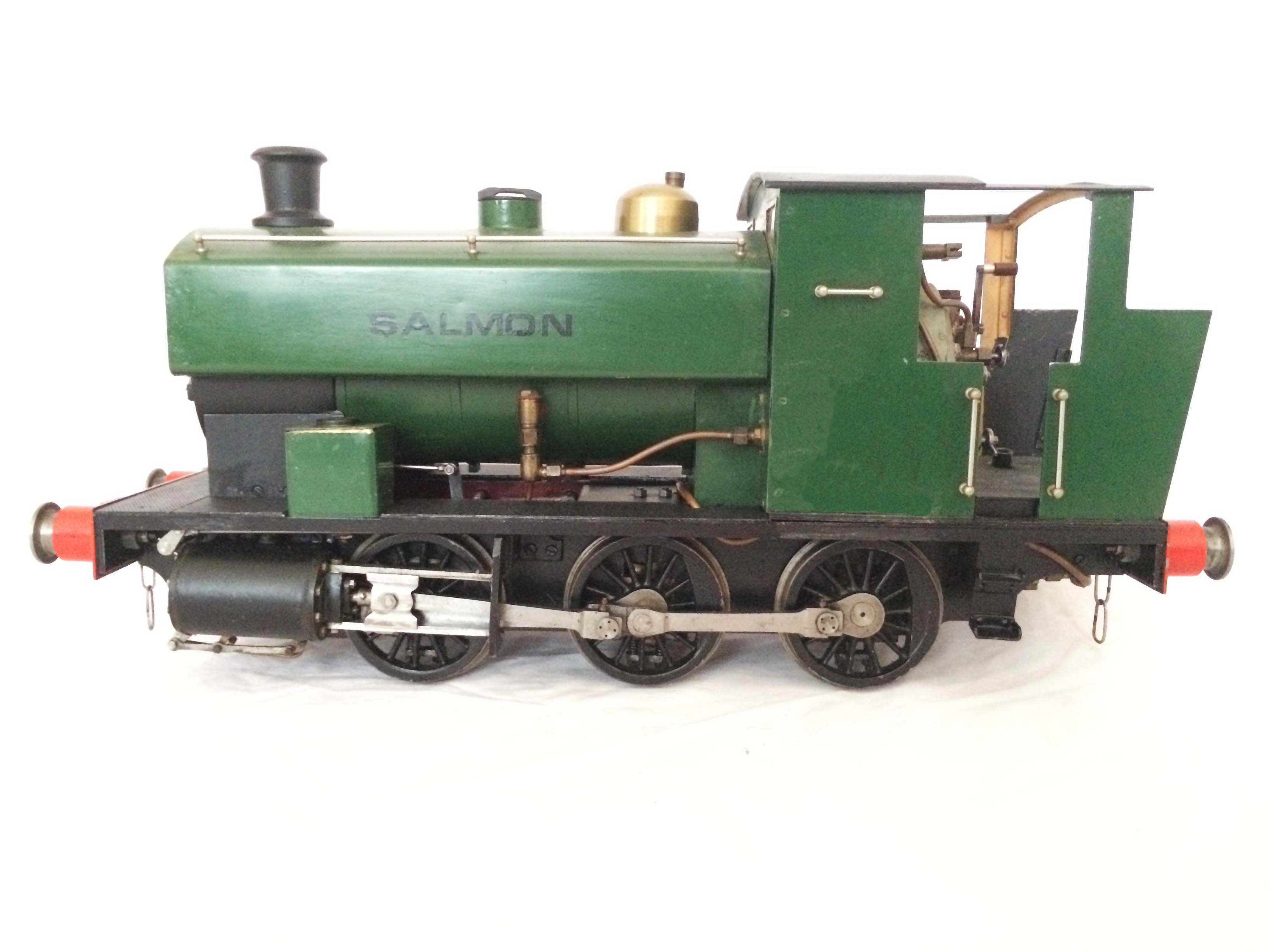The full size "Salmon" loco, Andrew Barclay Works No 2139 is currently in preservation and operational on the Swindon & Cricklade railway.  It was built in 1942 and delivered to Stanton Ironworks, part of the Harlaxton Ironstone Quarries industry.  After a move to Woolsthorpe in Leicestershire, it entered preservation on the North Yorks Moors Railway in 1980.  It spent a period in Rutland before moving to the Swindon & Cricklade railway in 2000.