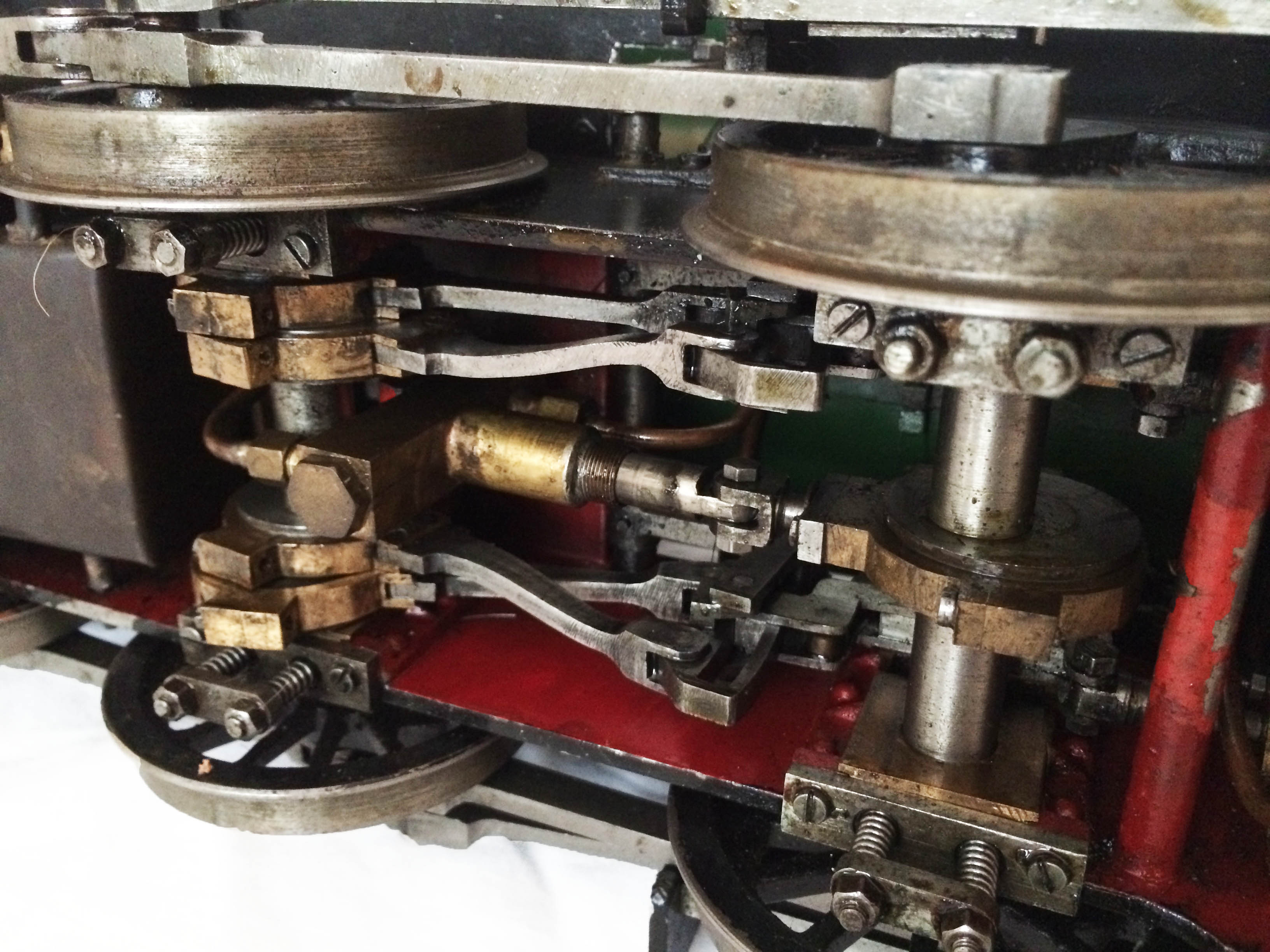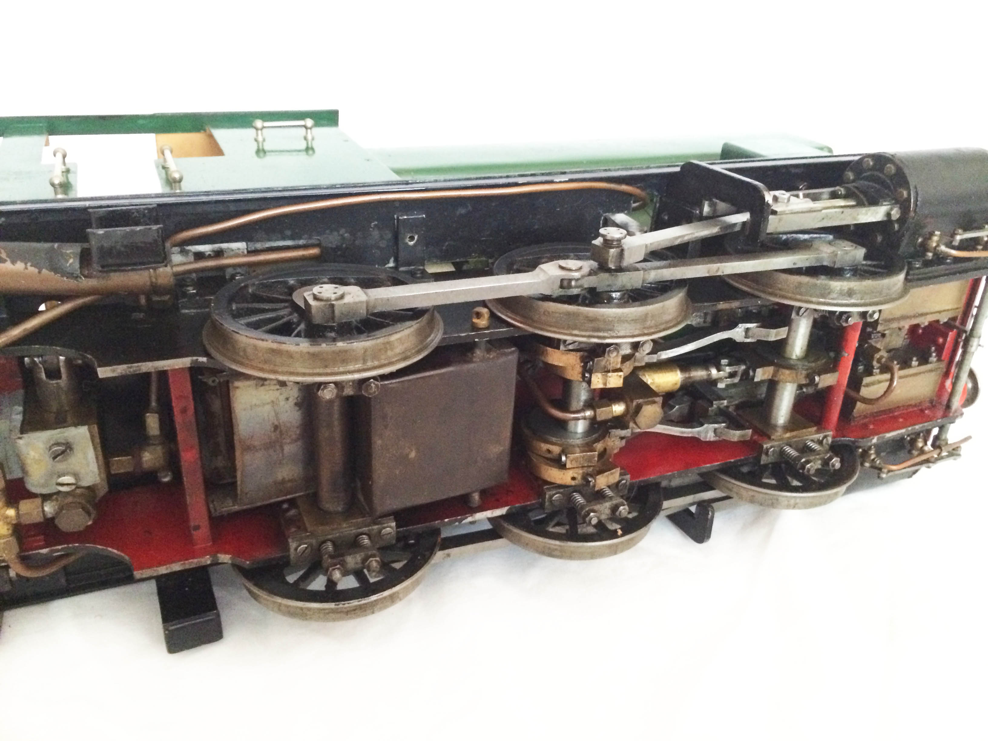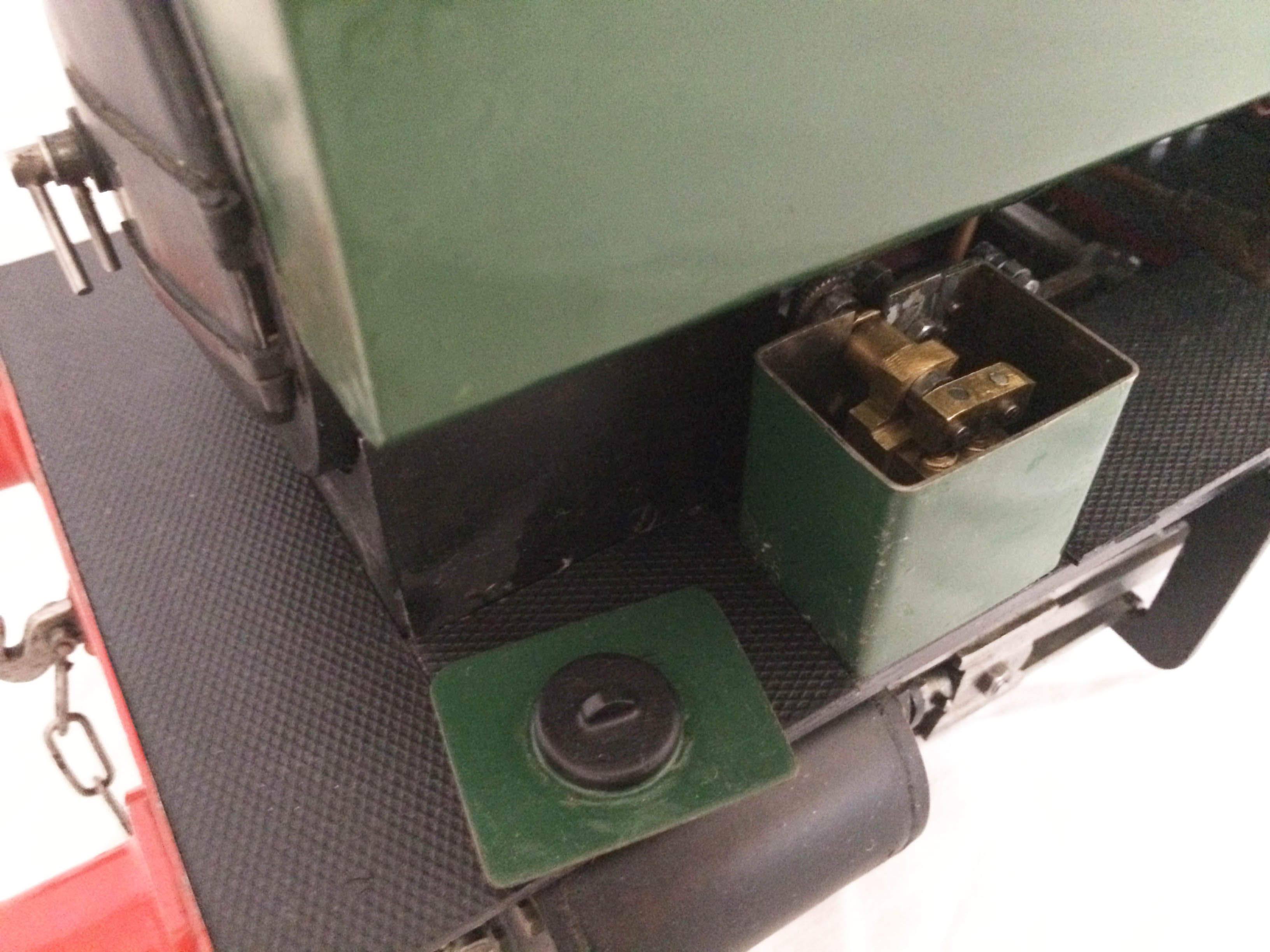 The model has an eccentric driven water feed pump between the frames, with a backhead mounted bypass valve returning to the tank, and a subtly hidden hand pump under the removable cab footplate.  The pressure gauge is missing in the photos purely because we removed it to do the hydraulic on the boiler, which it obviously passed with no issues and so can come with a full 4 year boiler hydraulic certificate.