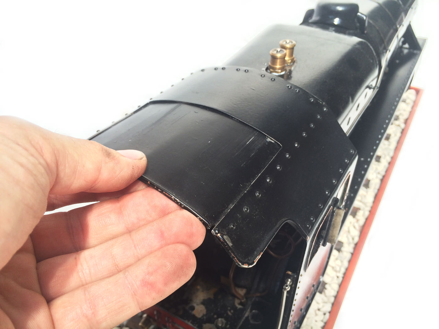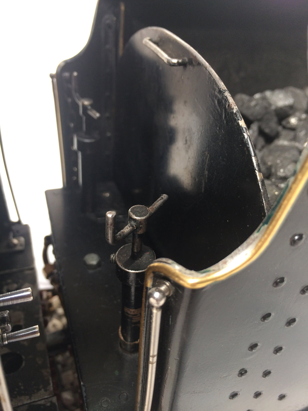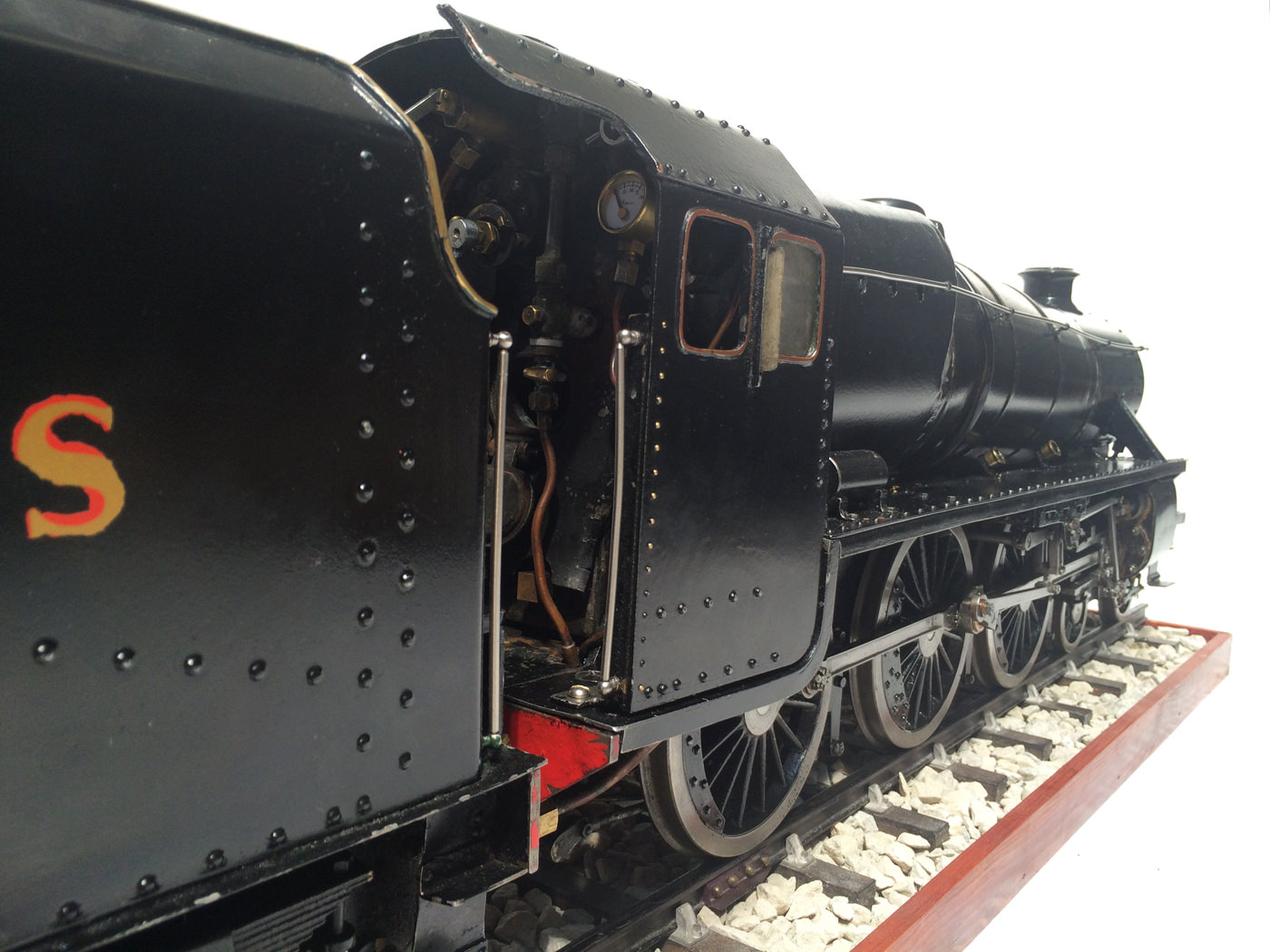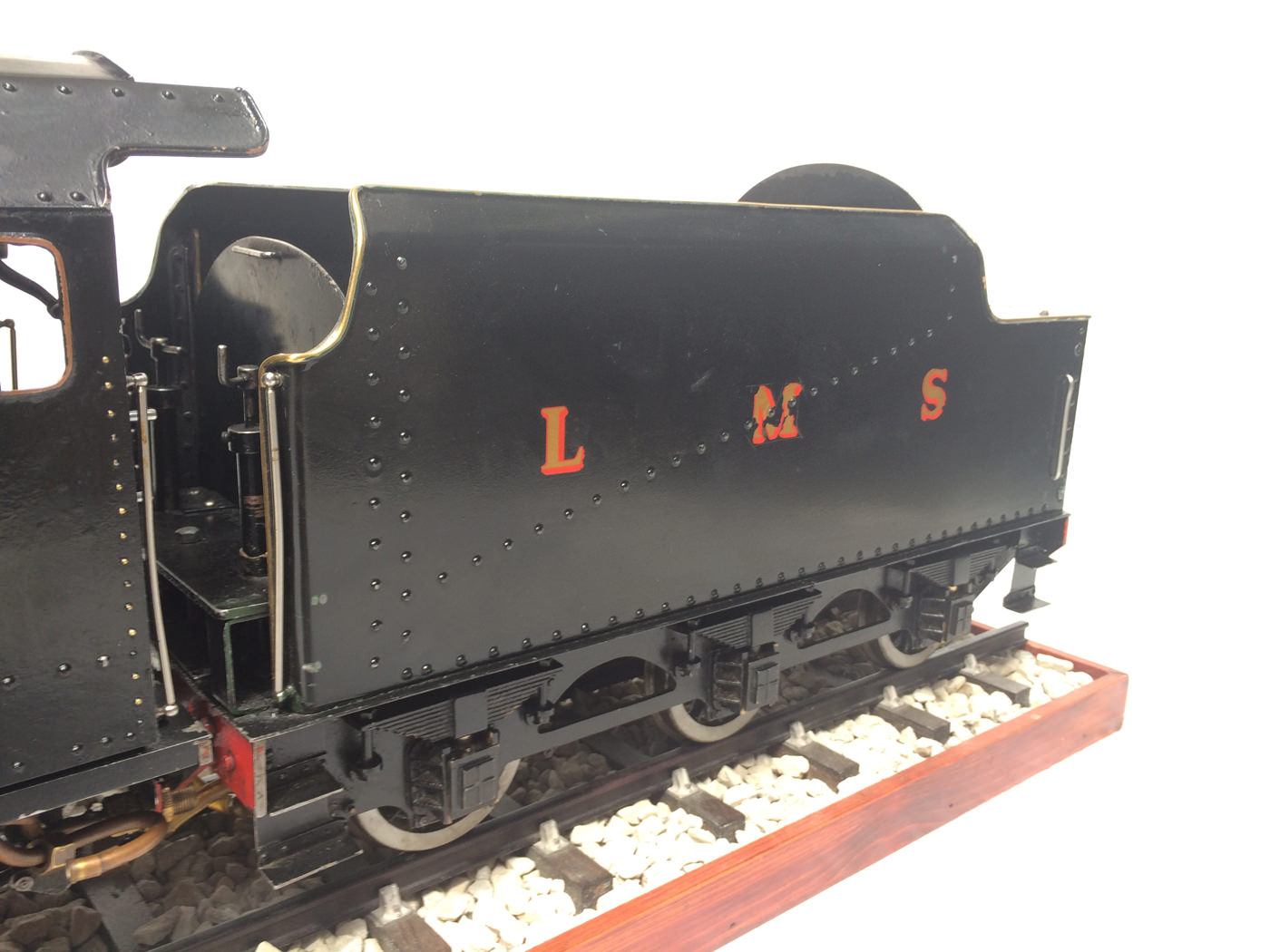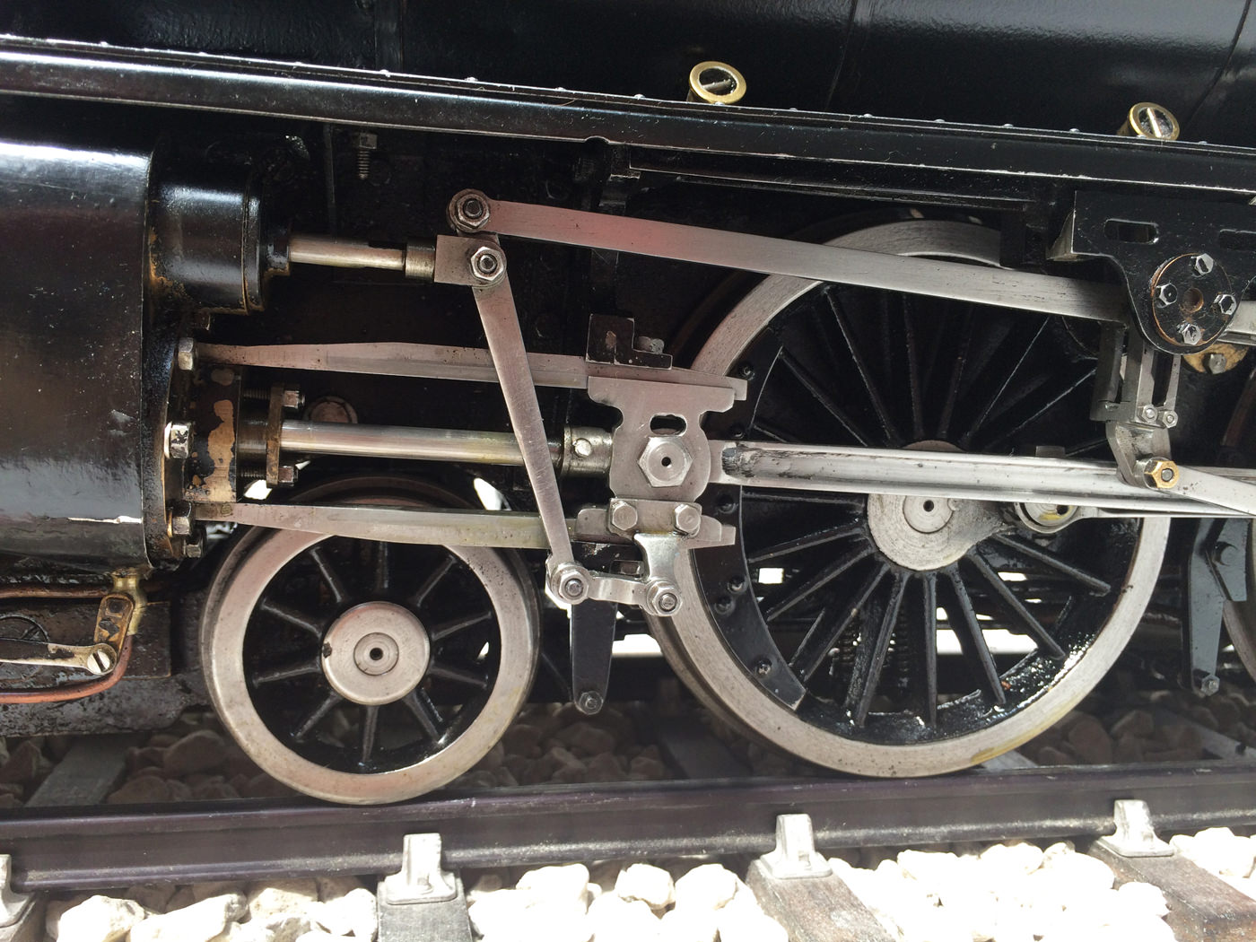 The model is fitted with all the usual refinements. There are footplate operated drain cocks, An injector, mechanical hand pump, and eccentric axle pump with bypas. Lubrication is mechanical and hidden under the front footplate. The quality of machining work on the valve gear is very neat, and the locomotive is a very nice and proven runner.
