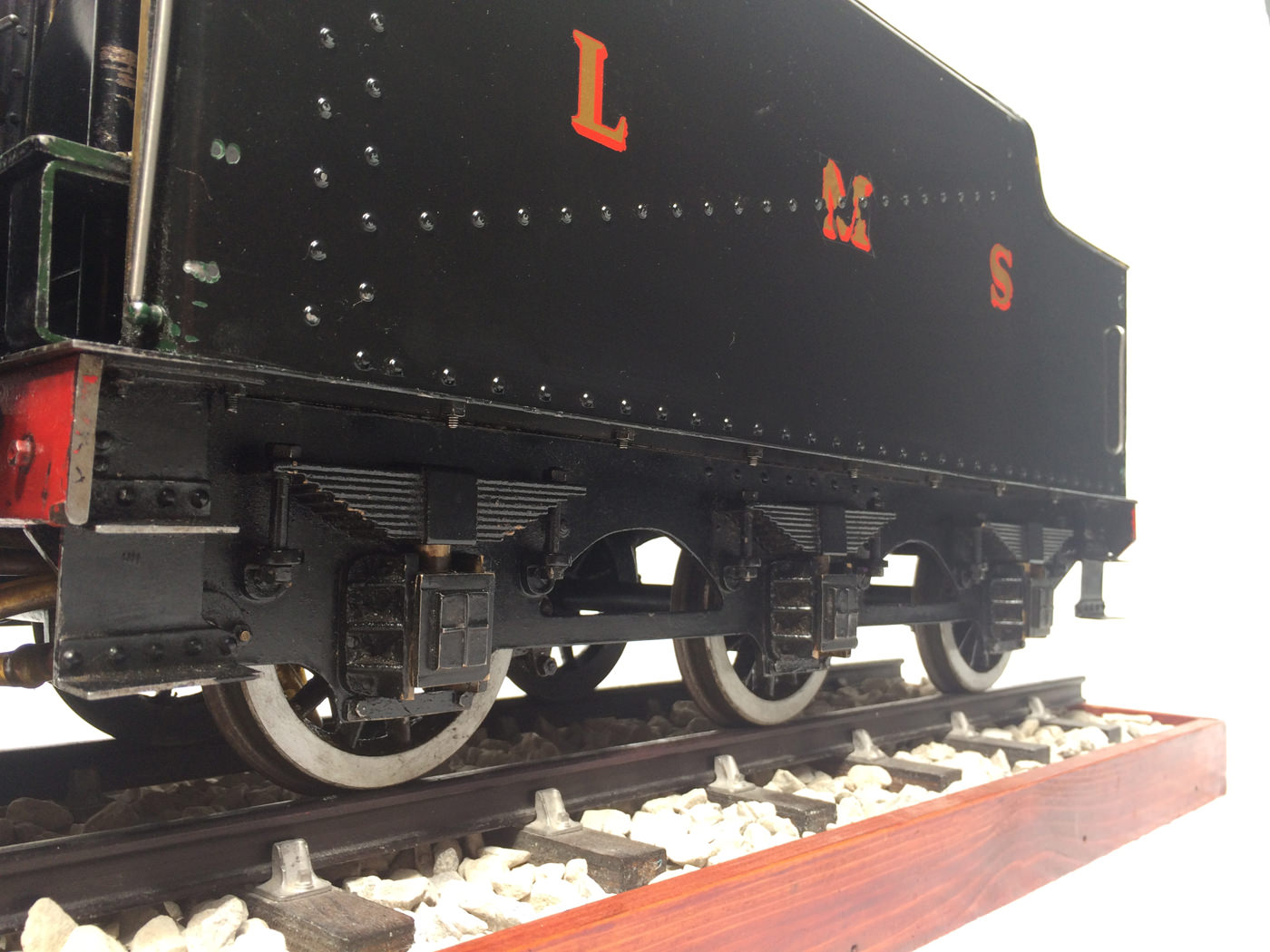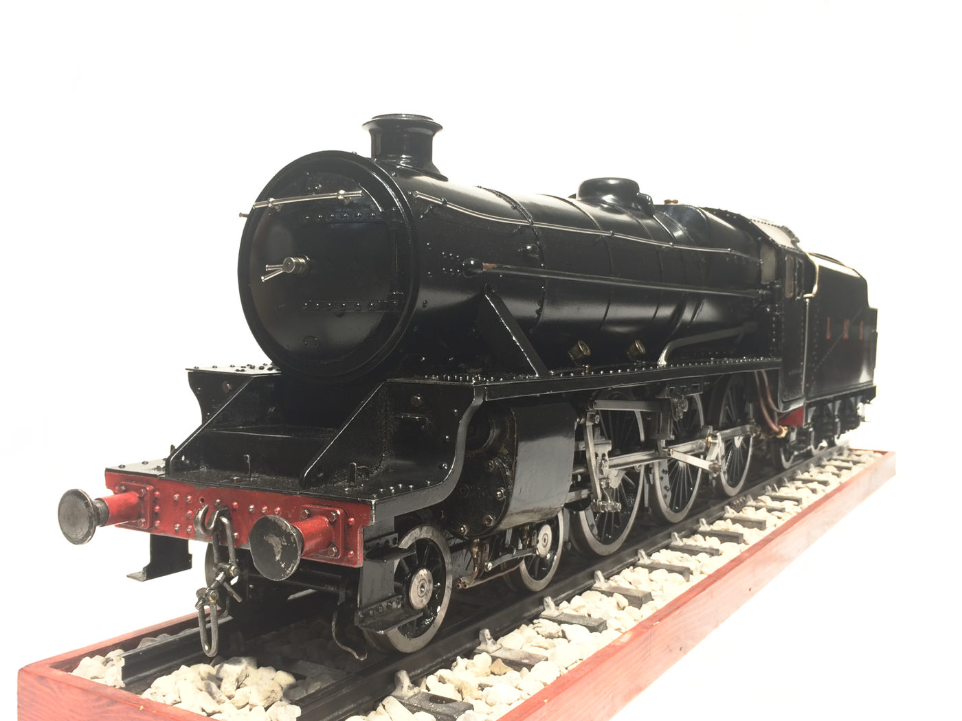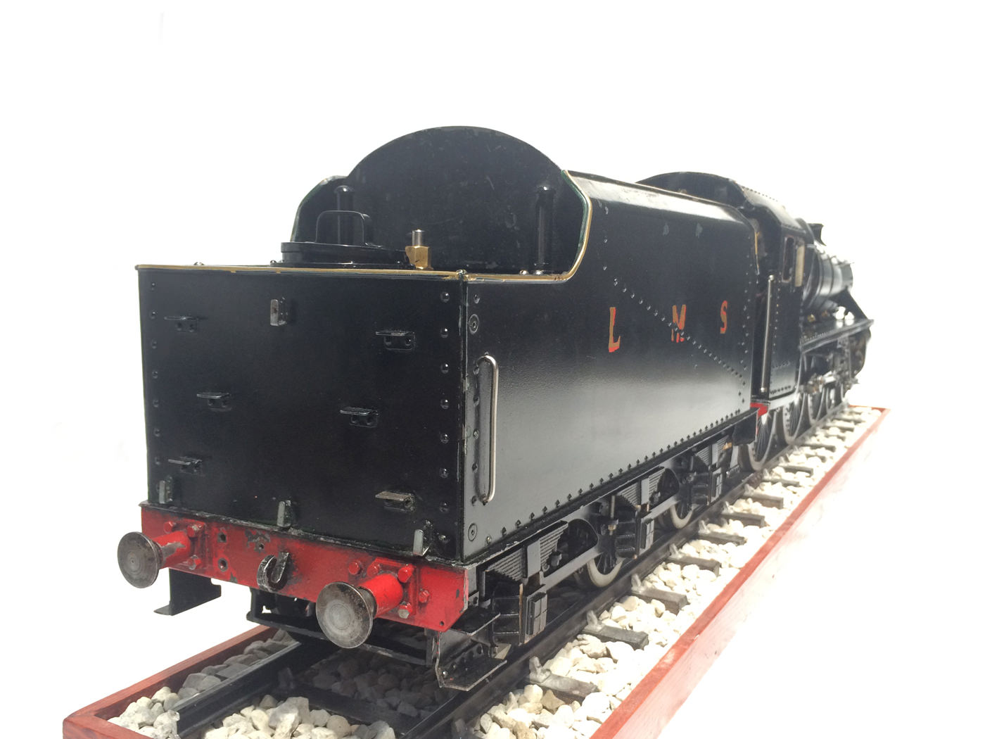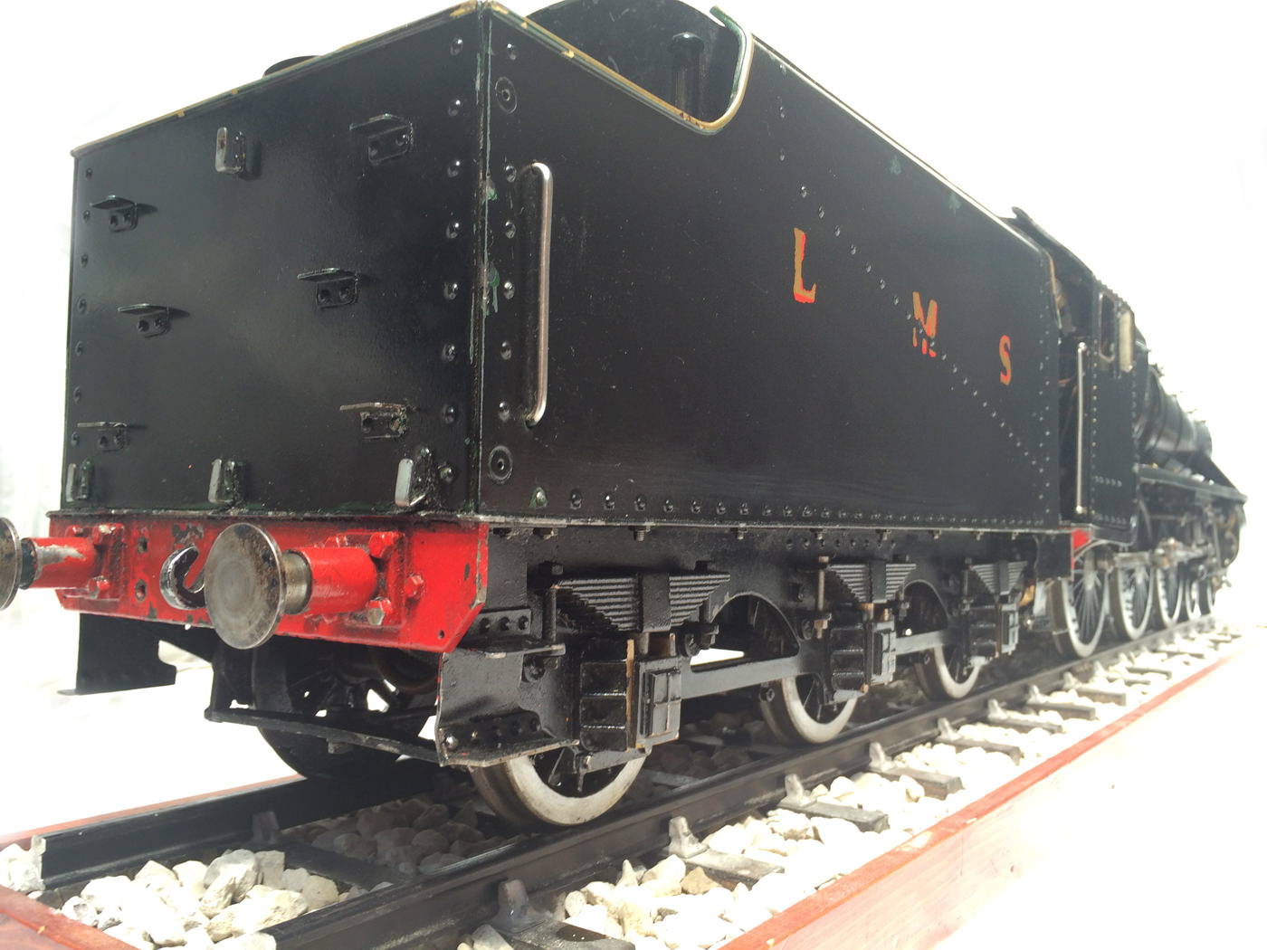 Here we have a nicely detailed 3 1/2″ gauge LMS Black 5 based upon the ubiquitous LBSC ‘Doris’ design. This is a very well built model, having been produced by a well respected and experienced model engineer. The boiler is in very good condition, and it comes with all the historic boiler certs, and can be given the usual full 4 year hydraulic and fresh annual steam cert.