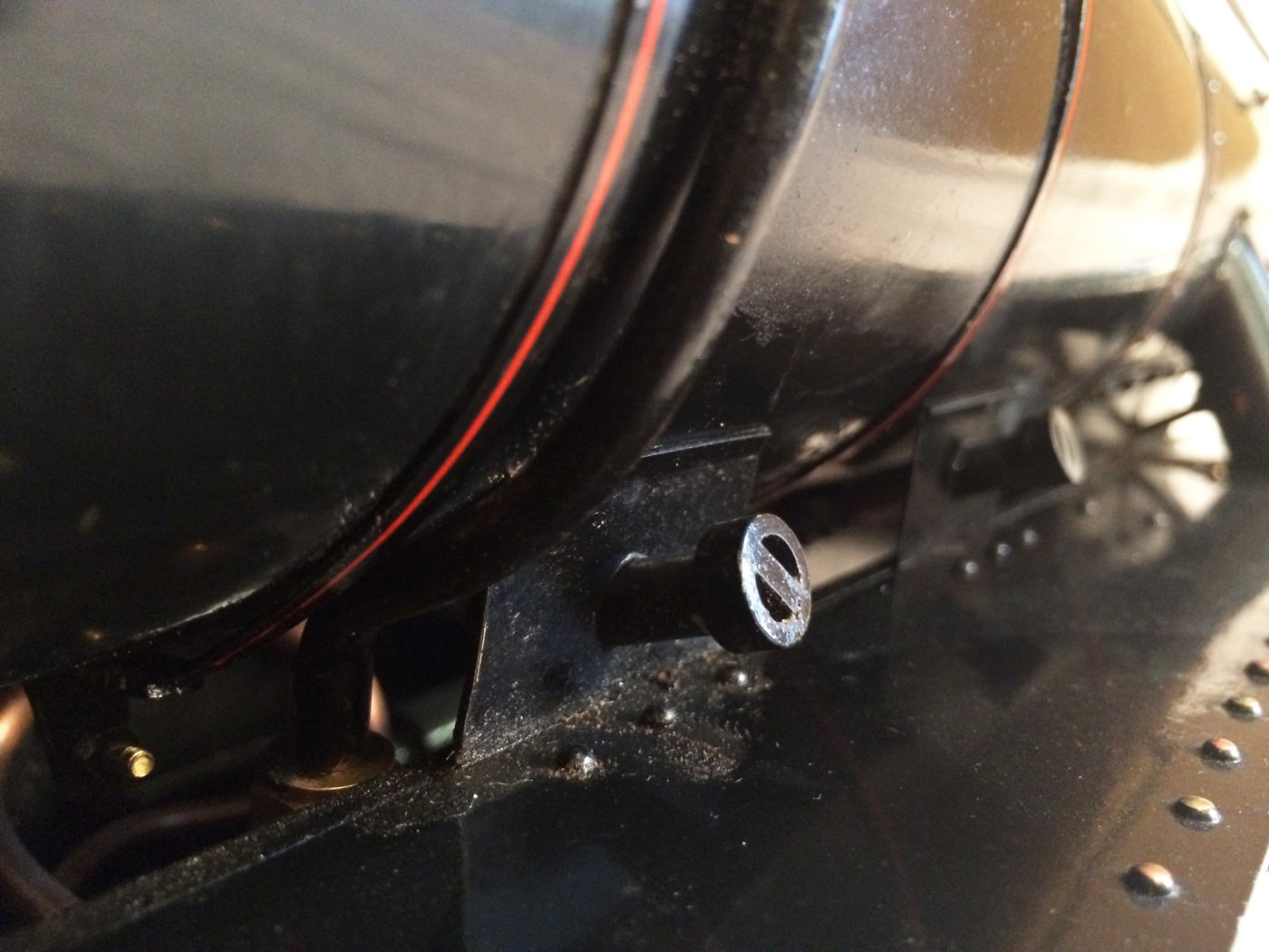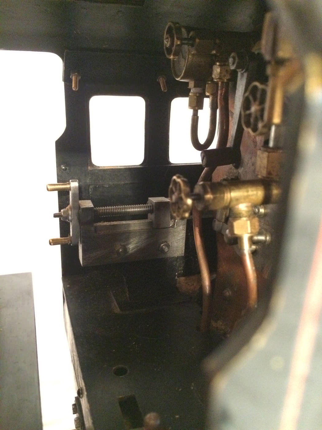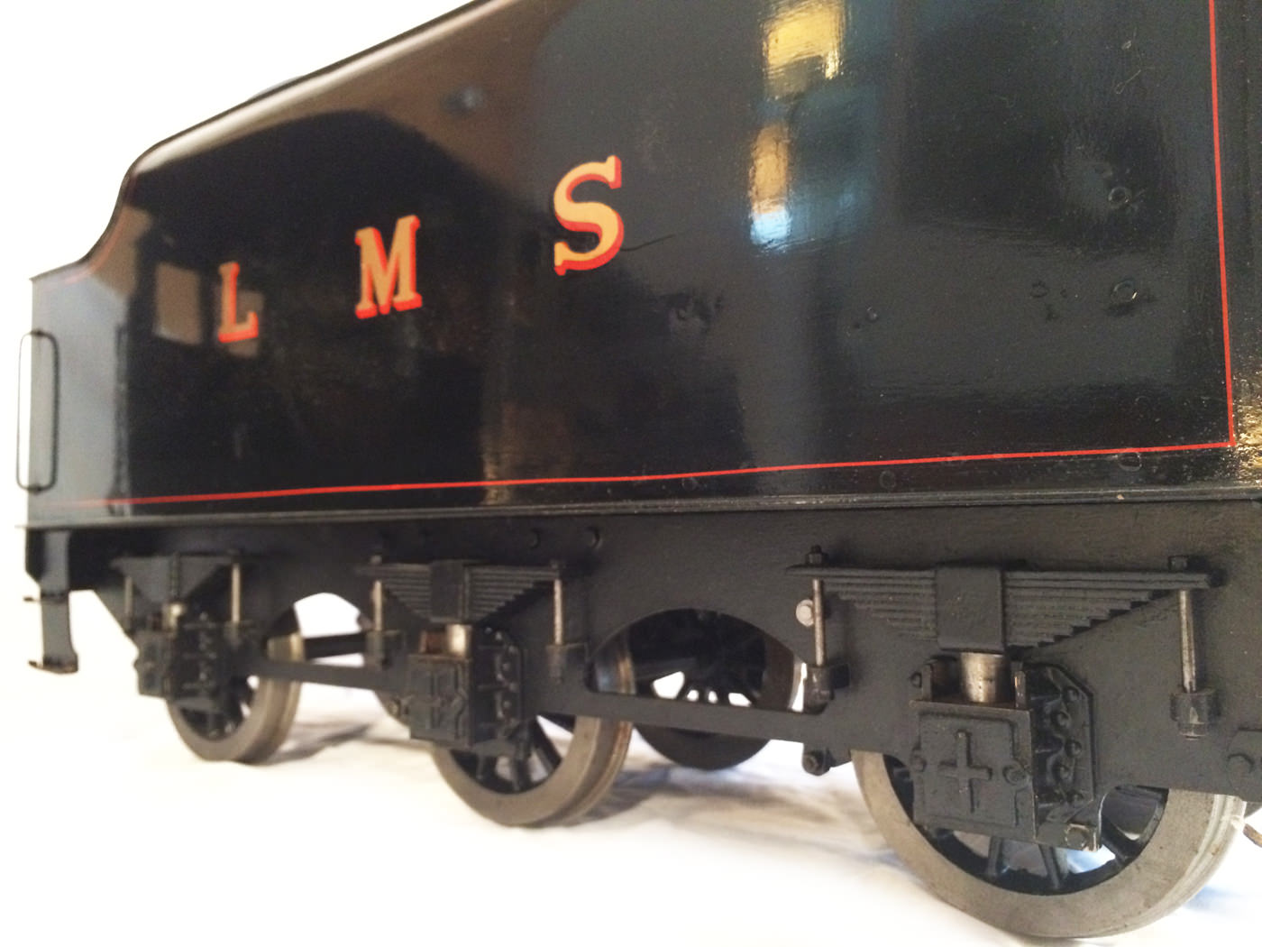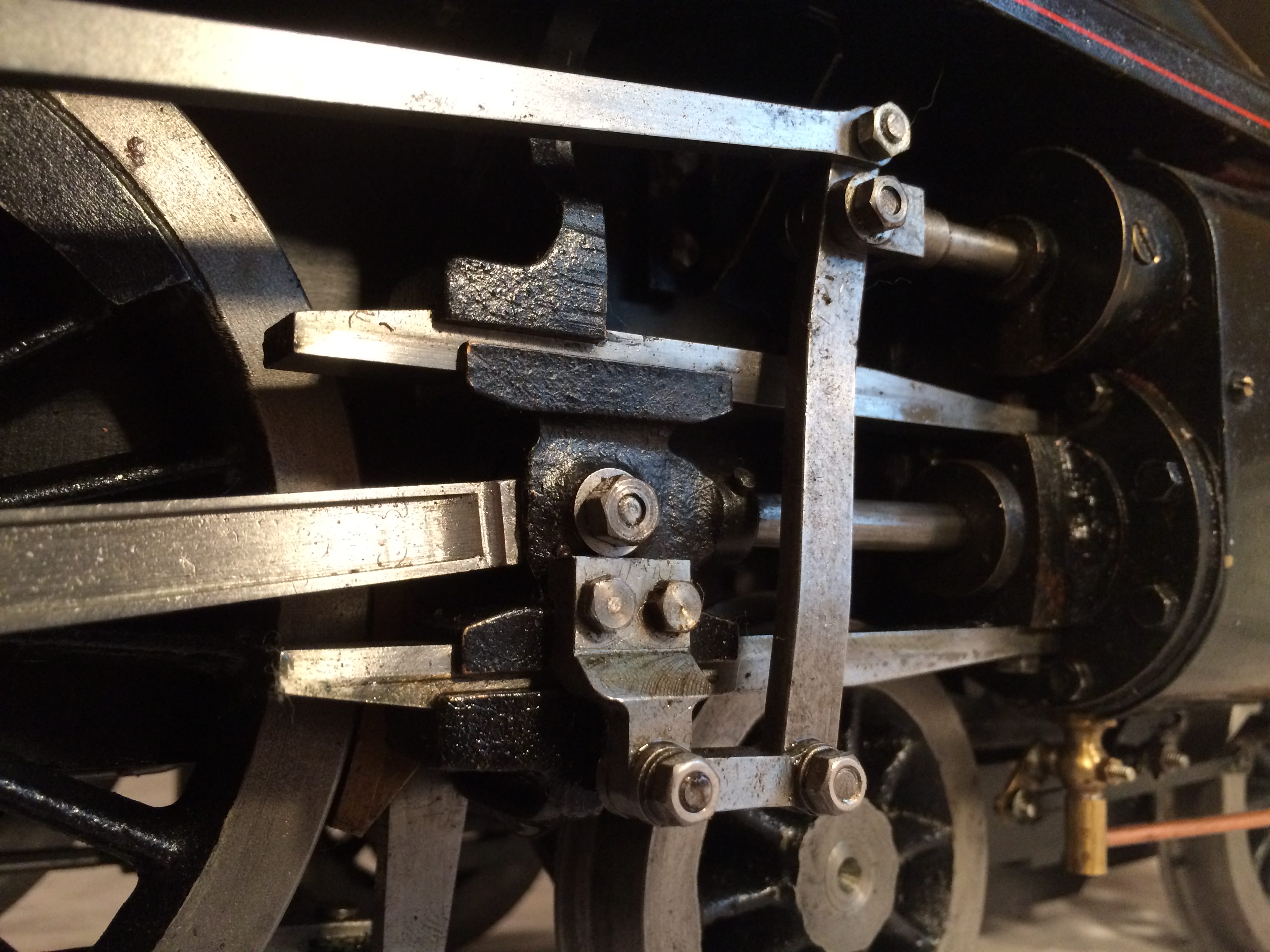 The model is fitted with all the usual refinements. There are footplate operated drain cocks, An injector, mechanical hand pump, and eccentric axle pump with bypas. Lubrication is mechanical and hidden under the front footplate. The quality of machining work on the valve gear is superb, and the locomotive has virtually no slack in the motion, although is not at all tight, suggesting that it's been run in on air. It's certainly a cut above the usual Doris, and a very nicely done example of the well loved Black 5.