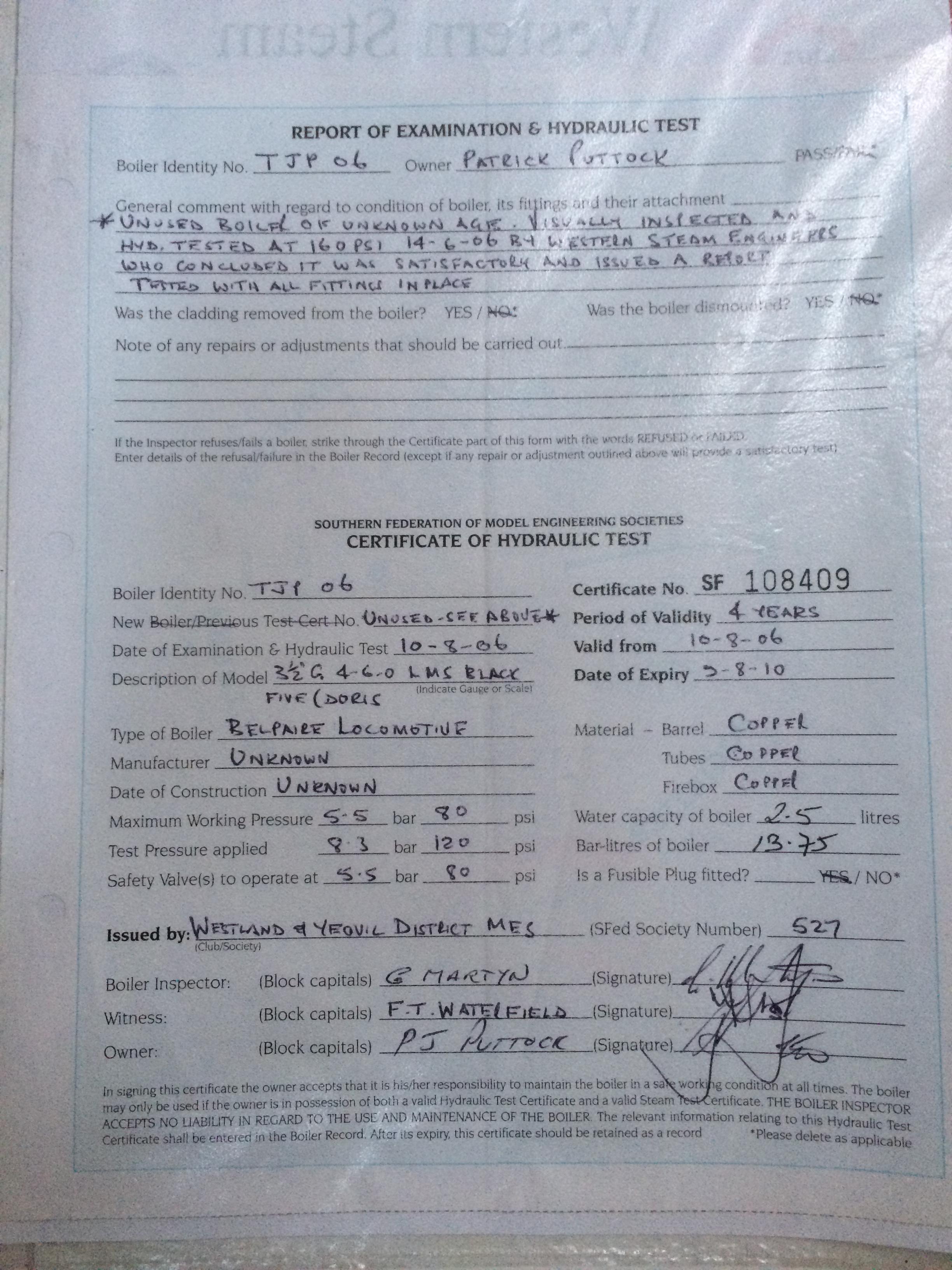 Here we have a nicely detailed 3 1/2" gauge LMS Black 5 based upon the ubiquitous LBSC 'Doris' design. This is essentially a brand new model, having been finished in 2006, but judging by the boiler soot levels, steamed only once, and briefly so far just to test. It comes with the original 2006 Western Steam professional certificates, plus it's southern fed club certs dating back to the last time it was steamed. We can of course get it tested and freshly certificated for you ready to go.