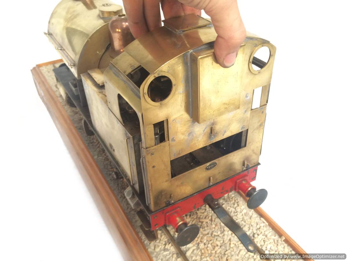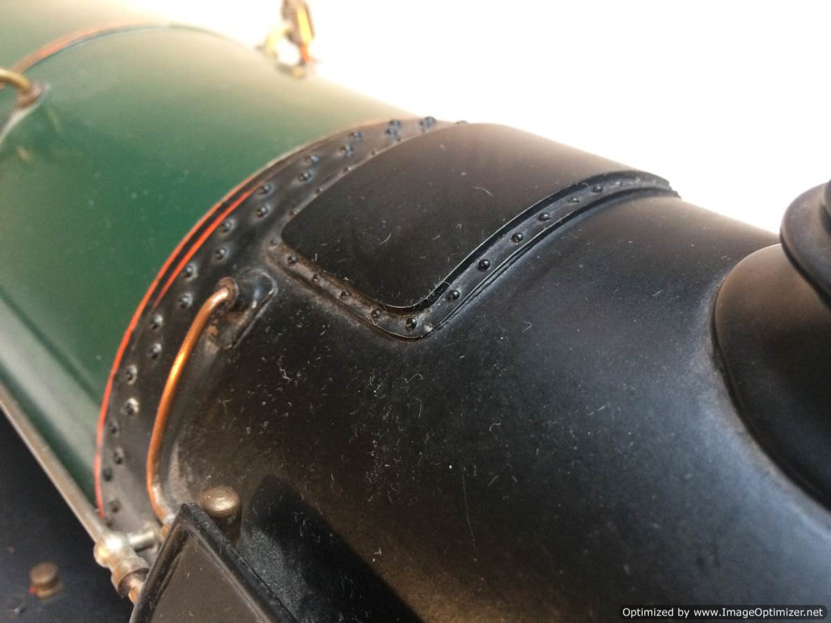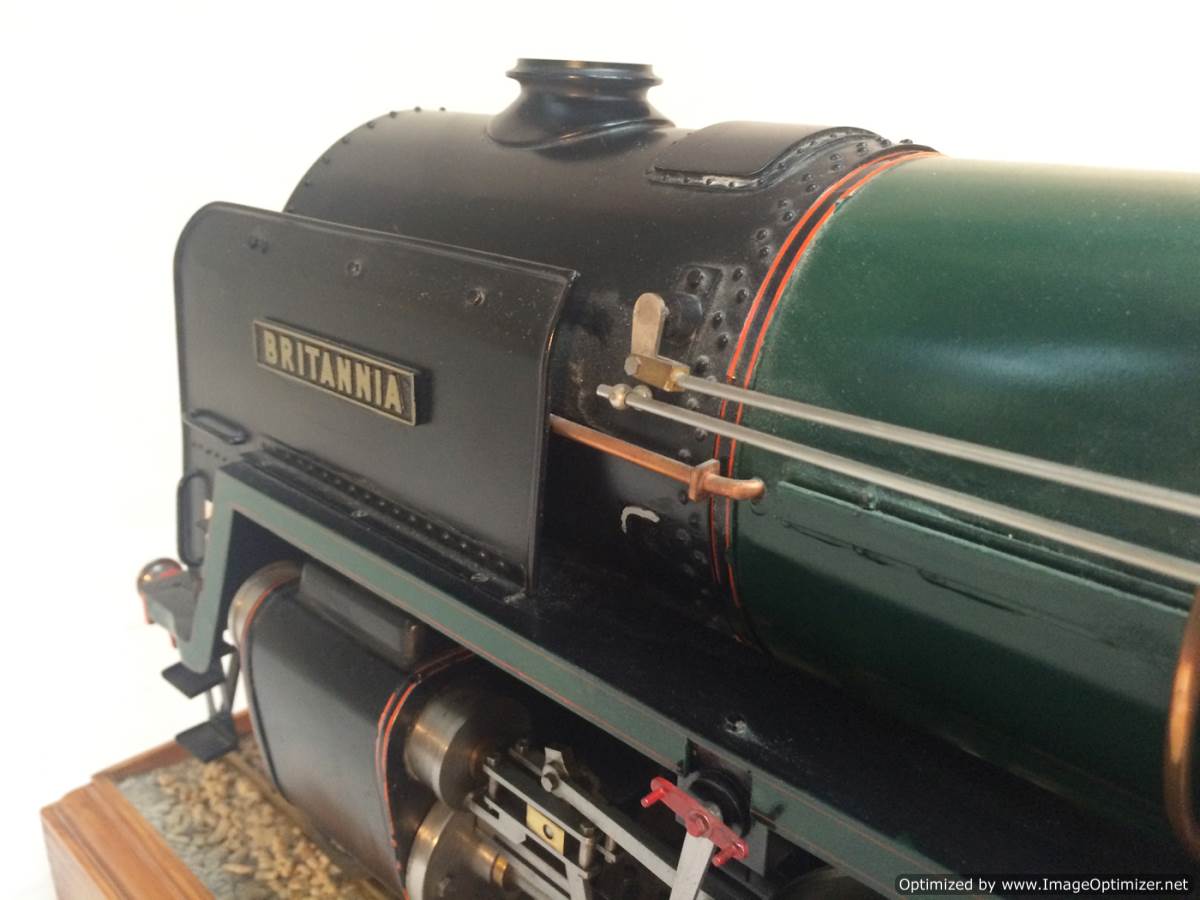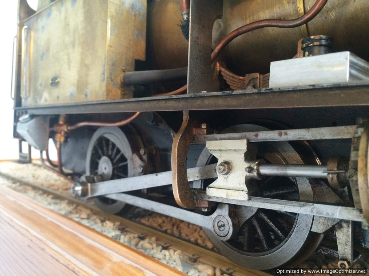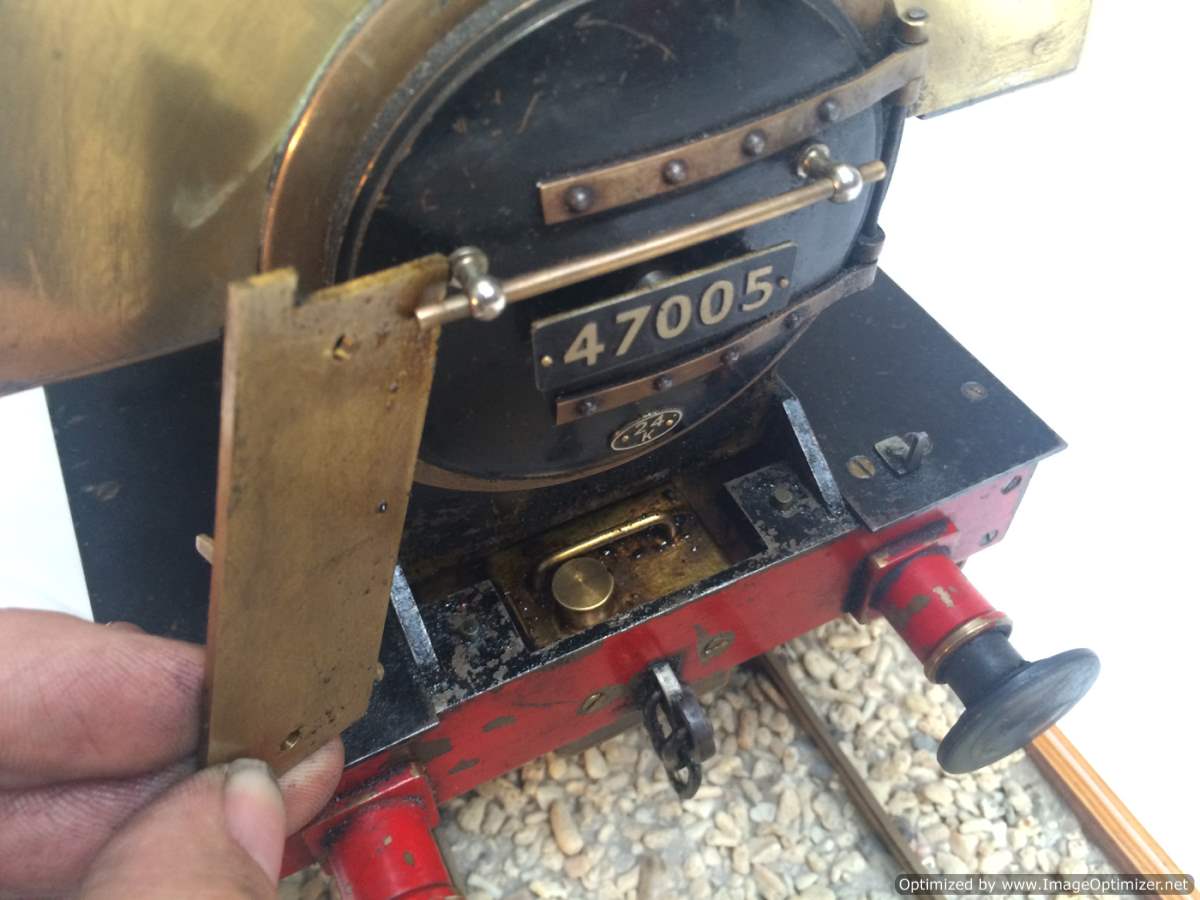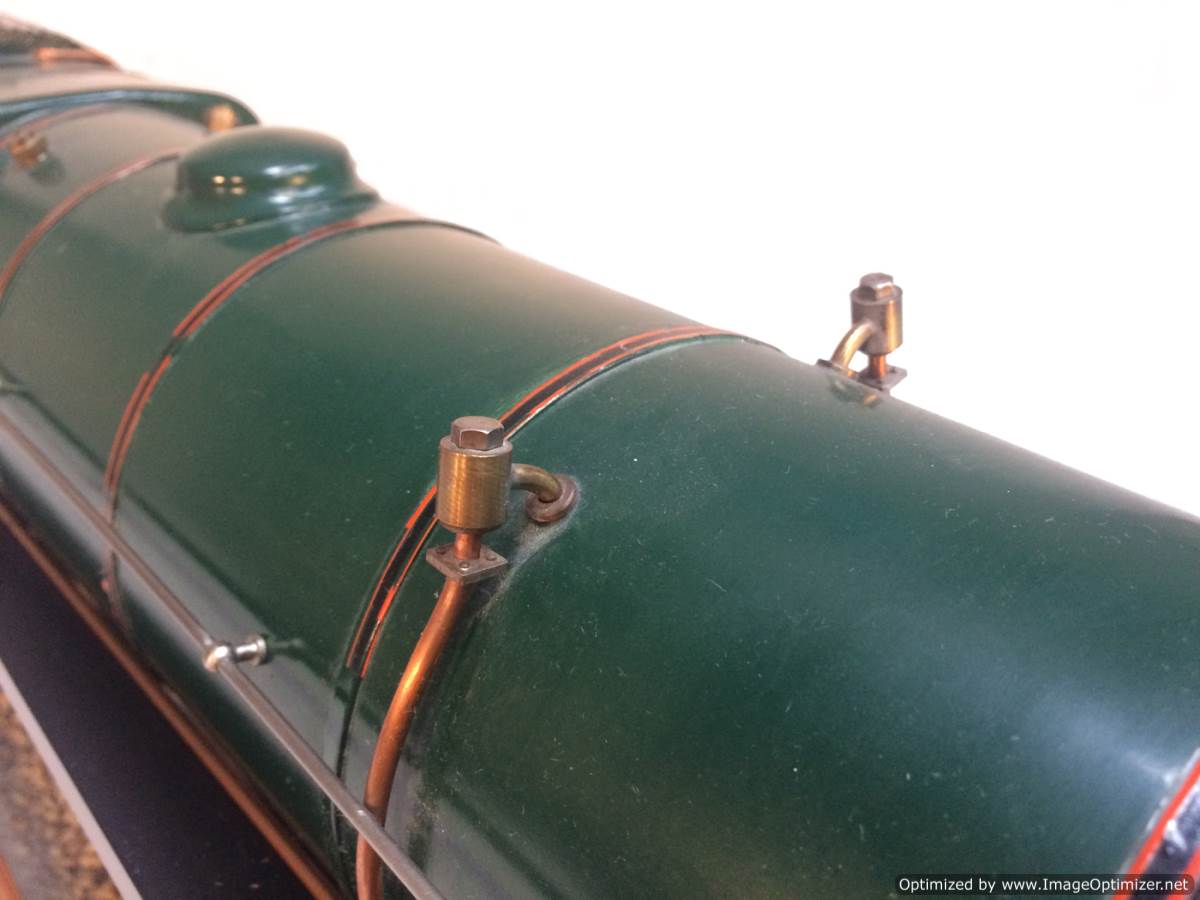 The model it's self is based upon a Juliet, the well proven LBSC design, and was a running loco with side tanks and all before it's original boiler expired.  The previous owner sourced a new boiler, and took the opportunity to make brand new body work to turn the model into something a bit more individual and prototypical than the generic Juliet.  And a very nice job you did on it too Andy!  There's an injector, and axle pump and an emergency hand pump in the tank, and lubrication is the usual mechanical job under the front running boards.  She steams very freely, runs very sweetly and has a surprising turn of speed for a little thing!  The originals were black, which would be a fairly simple job to paint up, but we just couldn't bring ourselves to do it.  Far too pretty in brass!