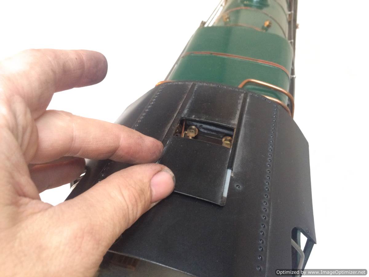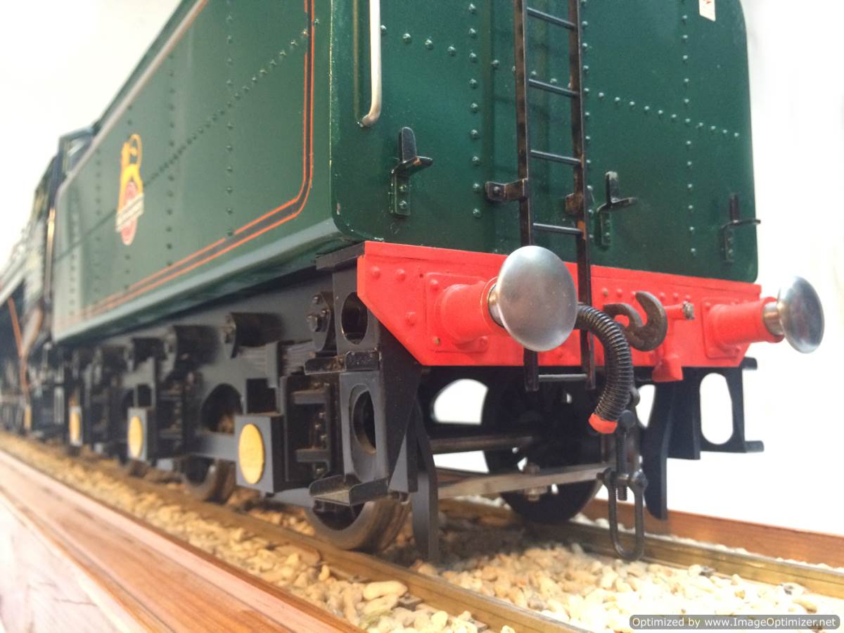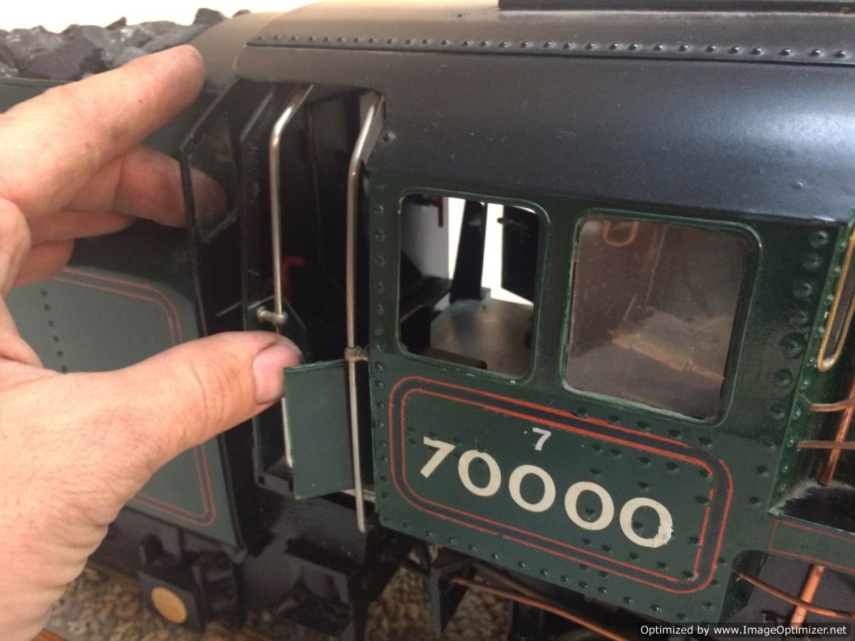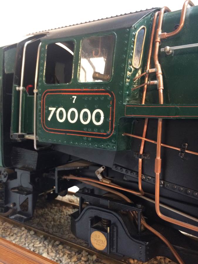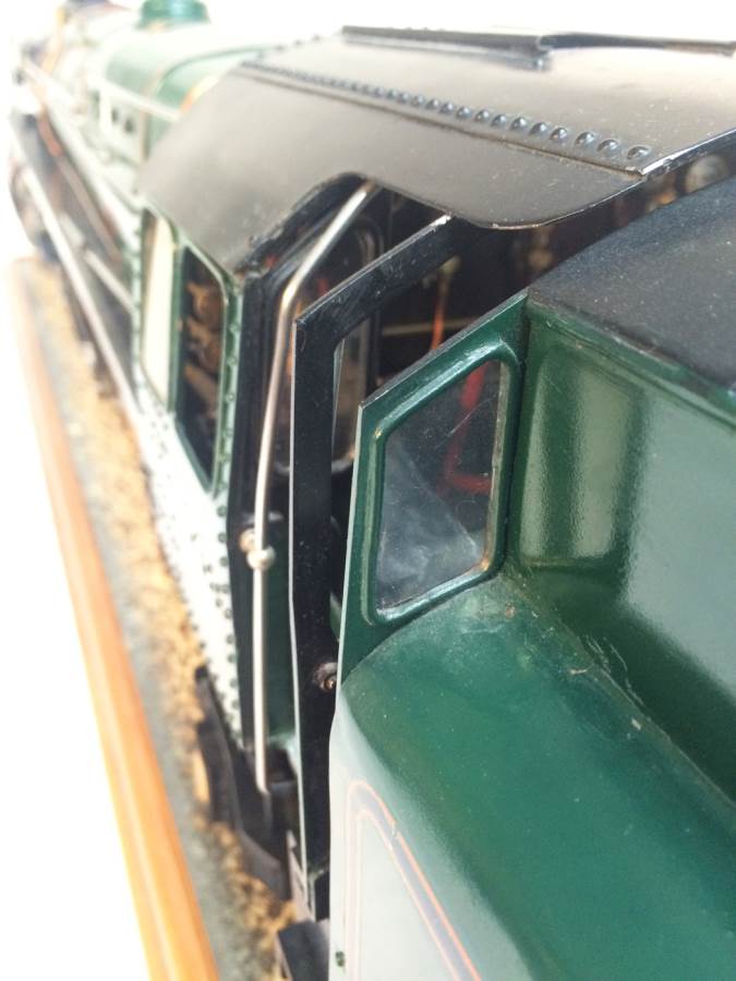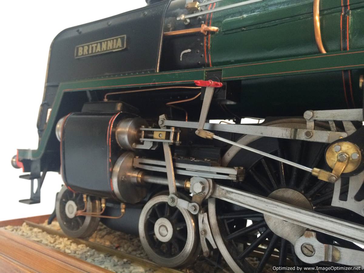 The model it's self is based upon a Juliet, the well proven LBSC design, and was a running loco with side tanks and all before it's original boiler expired.  The previous owner sourced a new boiler, and took the opportunity to make brand new body work to turn the model into something a bit more individual and prototypical than the generic Juliet.  And a very nice job you did on it too Andy!  There's an injector, and axle pump and an emergency hand pump in the tank, and lubrication is the usual mechanical job under the front running boards.  She steams very freely, runs very sweetly and has a surprising turn of speed for a little thing!  The originals were black, which would be a fairly simple job to paint up, but we just couldn't bring ourselves to do it.  Far too pretty in brass!