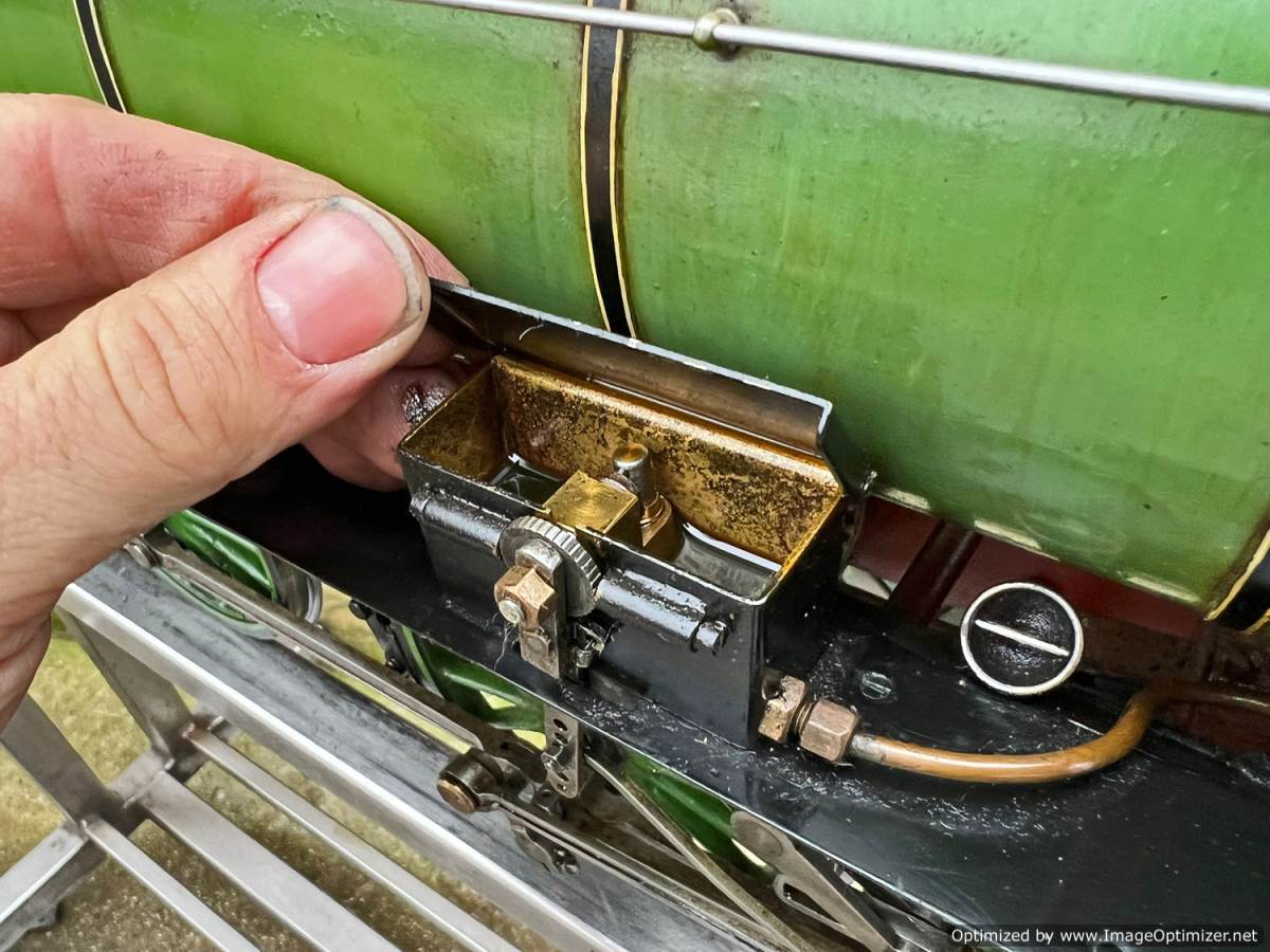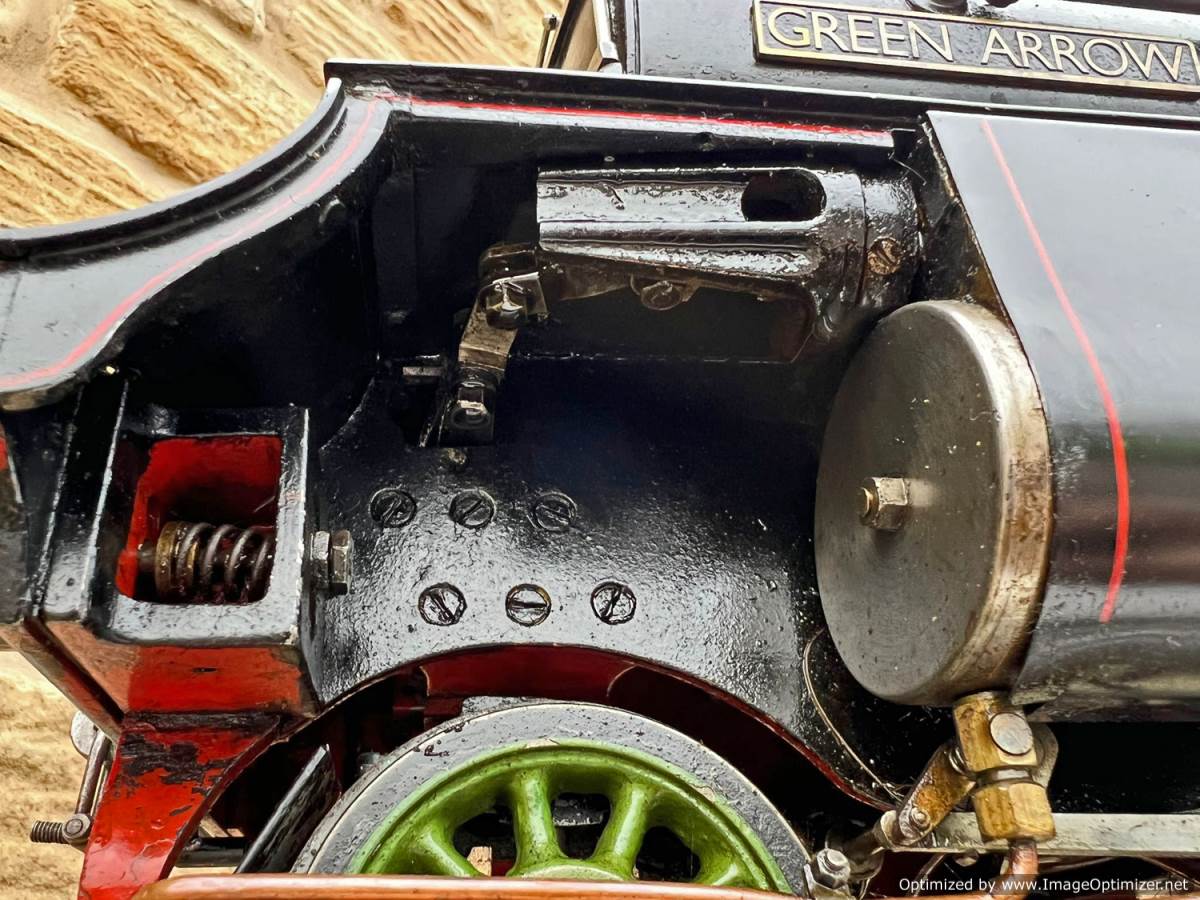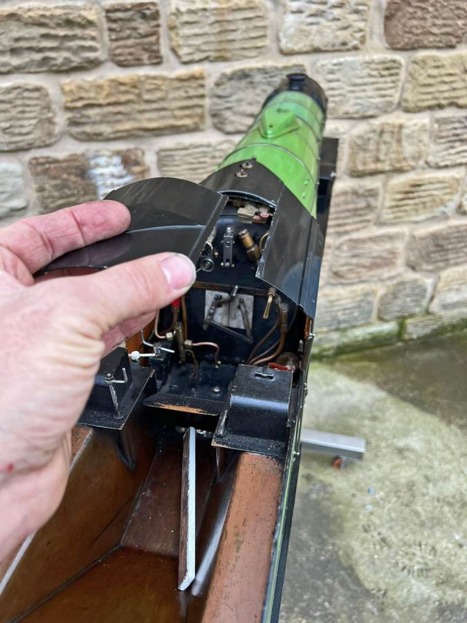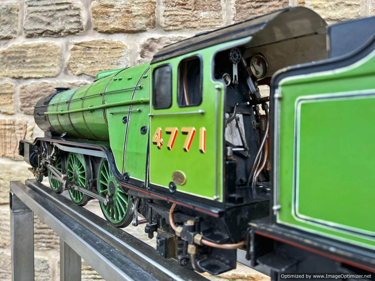 Very nicely detailed and painted in LNER Apple Green, wearing the identity, of course,.... of the famous 4771 'Green Arrow'. We've already had it slightly stripped down for boiler shell testing as the regulator was passing too much to maintain shell test pressure. That's now sorted and the regulator has been lapped back in, so she's ready for steam tests.