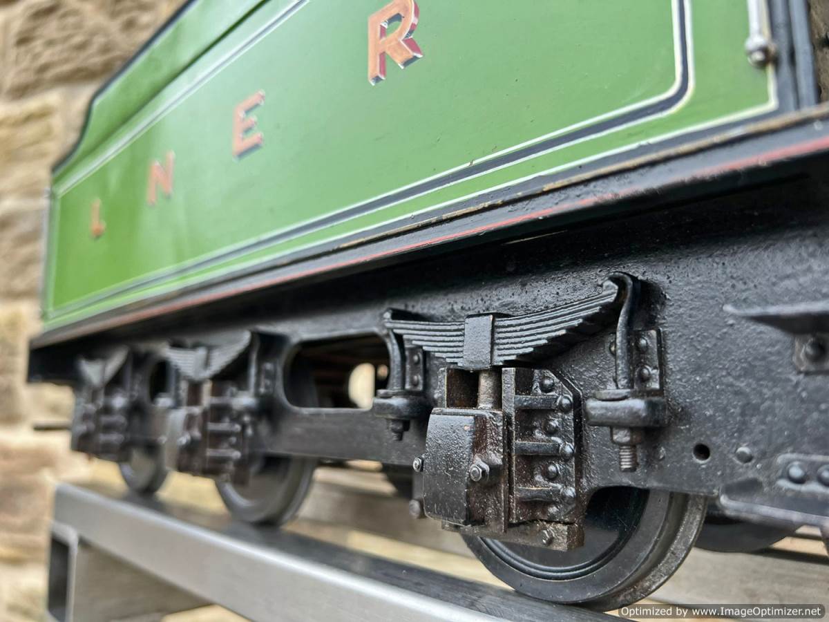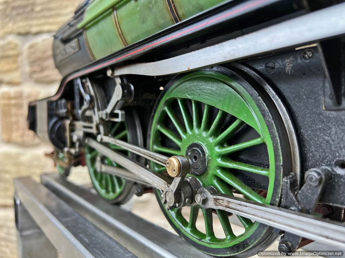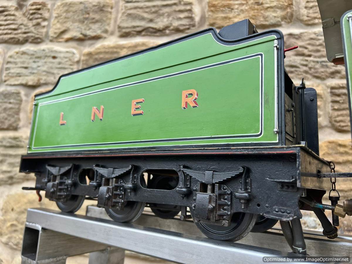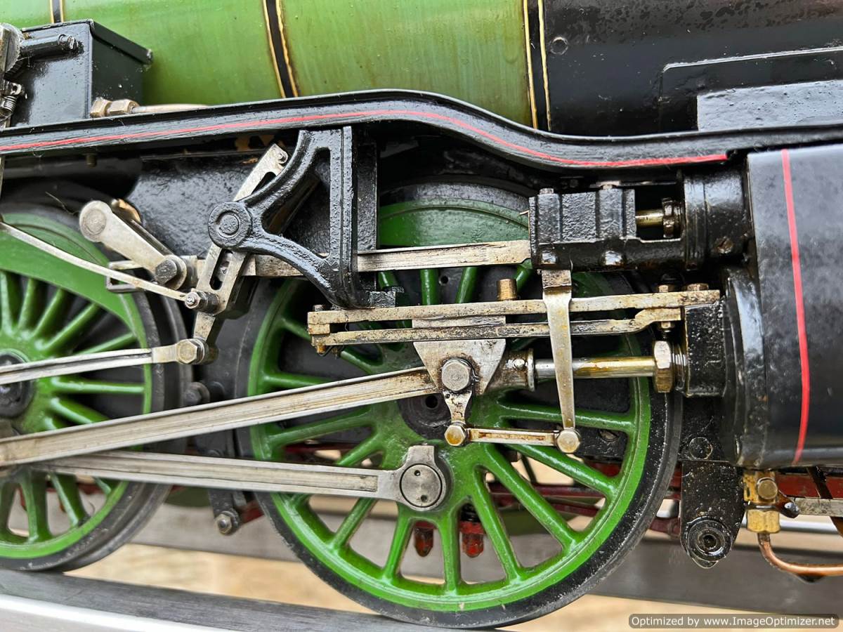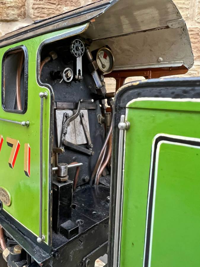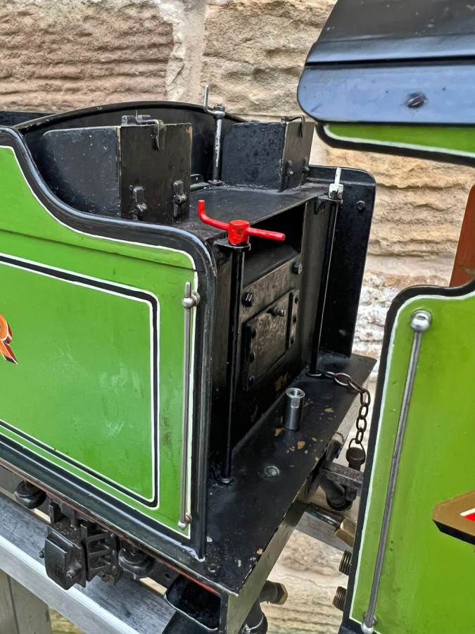 The pictures hopefully show the quality of the model engineering, which is first rate. The platework is delicately and beautifully done, the overall effect being one of a quality bit of model engineering. She's of course got all three cylinders, and the correct Gresley conjugated valve gear. There is an injector, a footplate controlled bypass valve for the water, as well as a hand pump in the tender. Lubrication is a slight let down from a rivet counters perspective, being a large mechanical tank on the running board. Great for the job that it needs to do, but for such a lovely model it would have been great if it were hidden, or a little more scale in detail. Footplate operated draincocks, and a lovely footplate operated blow down valve to help to keep the boiler in good condition. There is an extension regulator handle for ease of driving, and a superb set of bespoke boxes and tools that go with the model. All in all, a little cracker this one. Genuinely rare opportunity to get a quality model of a scarcely modeled prototype.