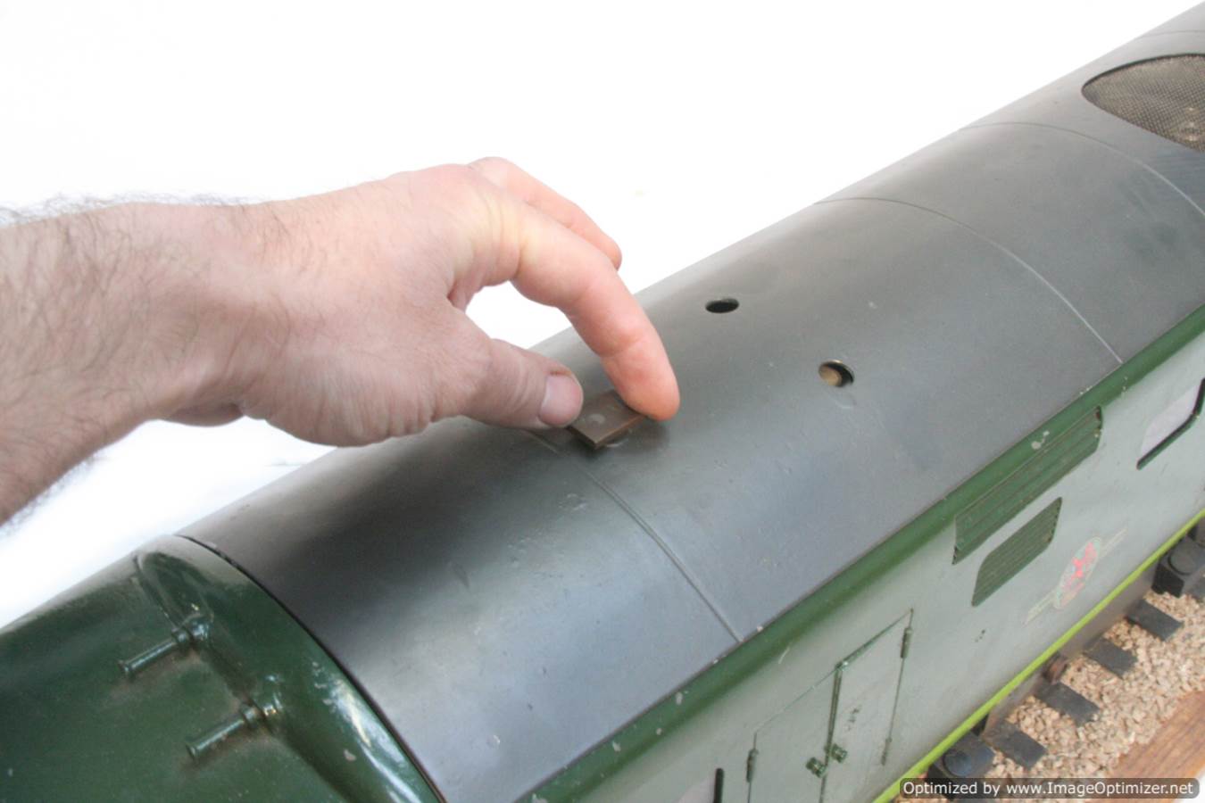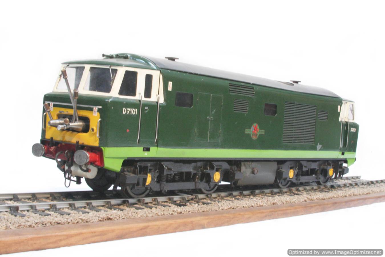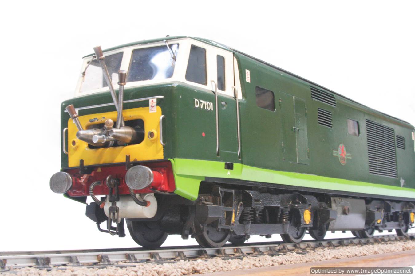 Here we have a rather special little thing. A petrol engined, full mechanical drive 3 1/2" gauge BR Class 35 Hymek! For some inexplicable reason, diesels are rare in 3 1/2" gauge for a start, but a well detailed, 'real' engined loco is rare as hen's teeth!