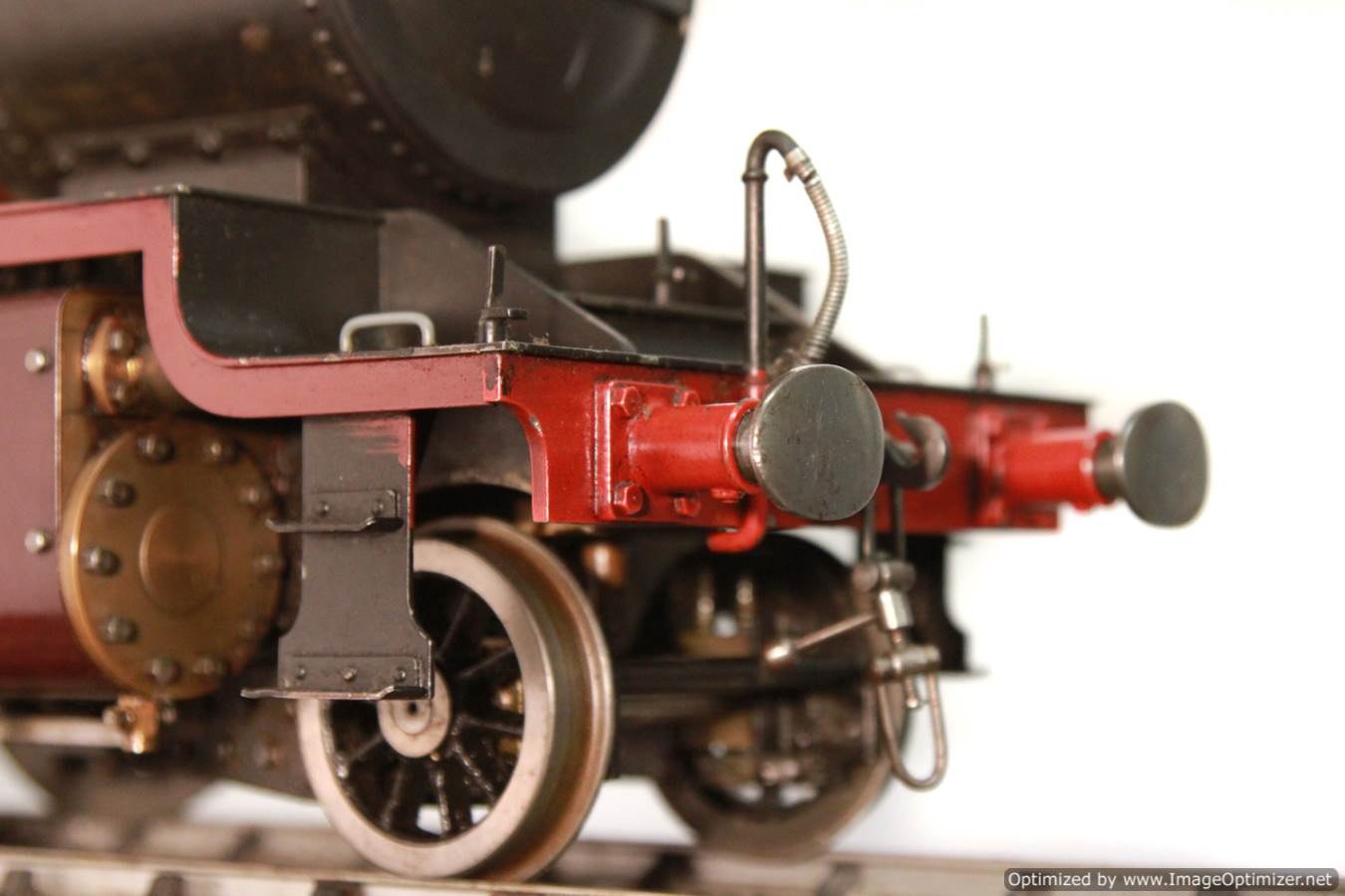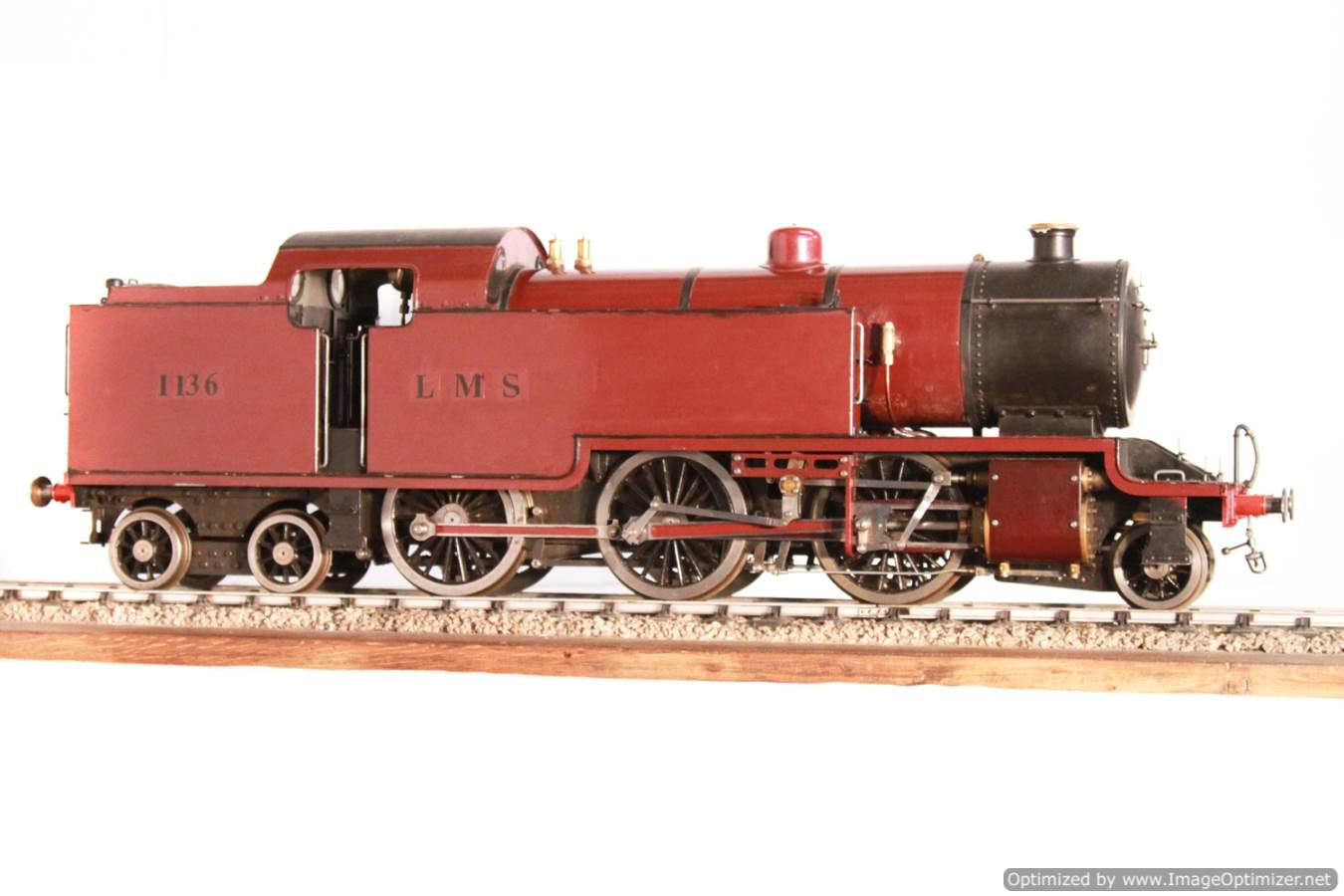 Here we have a very nicely engineered 3 1/2" gauge pseudo LMS Fowler class 4 tank! We say 'pseudo' because although very neatly and nicely done, the sizes and shapes of the model don't scale correctly to a Class 4 tank, and so whilst giving a nice impression of the prototype enough to be perfectly clear about what it is trying to be,..... it's not quite dimensionally accurate! That said, it's a very attractive thing in it's own right!