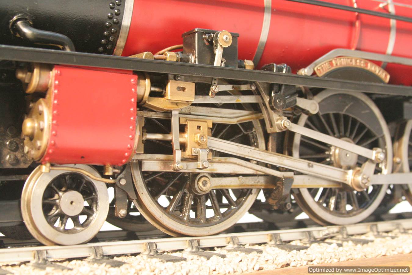 Here we have a well sorted 3 1/2" Gauge LMS Princess Royal.  We actually had this loco in the workshop a good few months ago for a little mechanical fettle.  We had the boiler off in order to make a repair to the main steam bush/wet header seal.  It gave us the opportunity to give the whole thing the once over, and it certainly stood up to close inspection.  A very nicely machined and well made loco, that was a regular and well known performer in the Bristol area for years.  We had the pleasure of running her in again earlier in the year, and can confirm that it's a great model to drive.