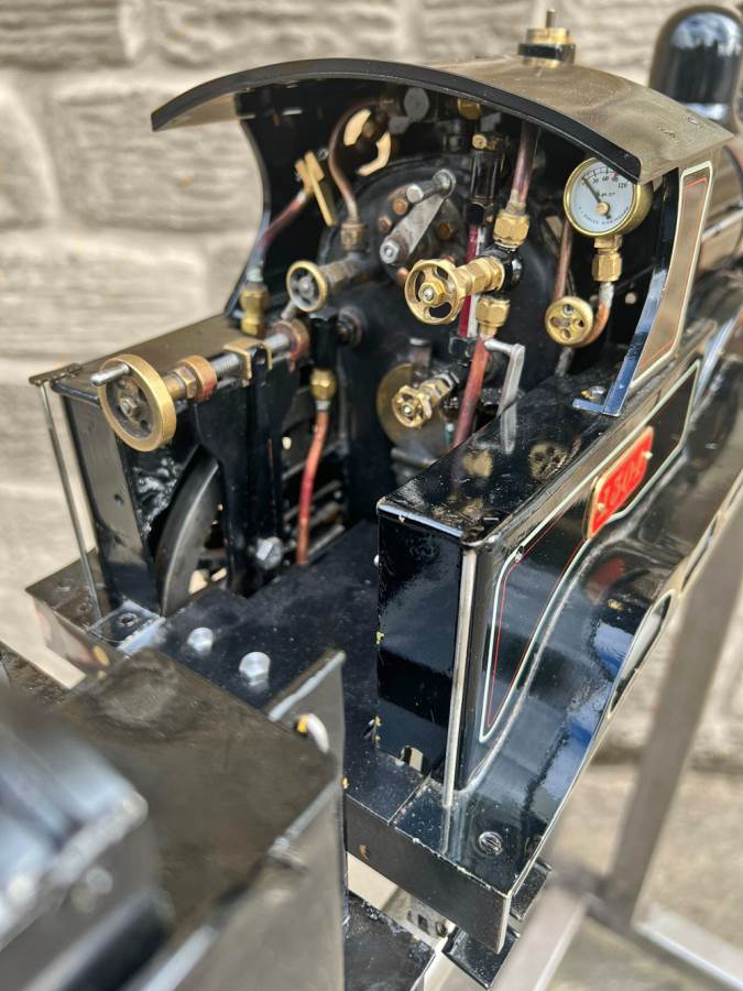 A superb and actually pretty rare 3 1/2" gauge LNWR Jeanie Deans 2-4-0 3 cylinder compound! We've steamed this one on the rolling road, and it's true, you can have the front driving wheels running the opposite way to the rear! More details to follow but for now have a good look at the photos and hive us a bell if you'd like to know any more.
