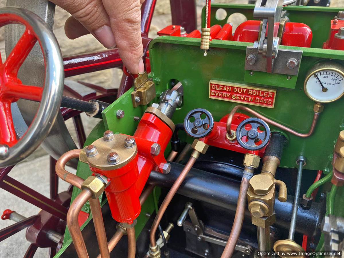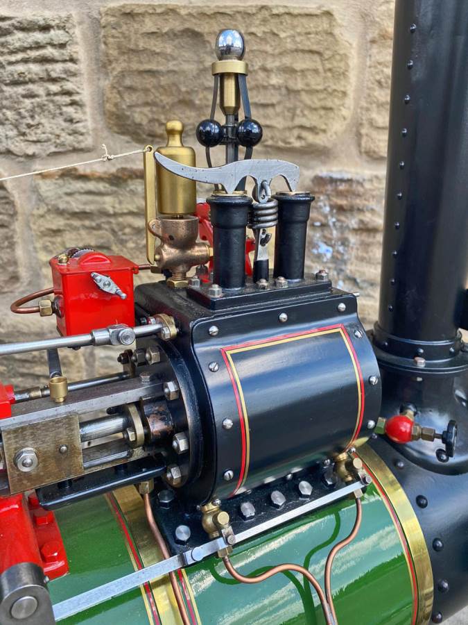 It has an injector, the usual crank shaft water pump. The paint is neatly done, and is of course in as new condition, lining is done in lining tape, although it's very neatly done and certainly at first glance it looks like paint. All in all this is a very lovely, well finished and machined model, and in it's un-steamed form it would be a lovely addition to anyone's living room, or ready to play we are quite sure that it will run as well as it looks.