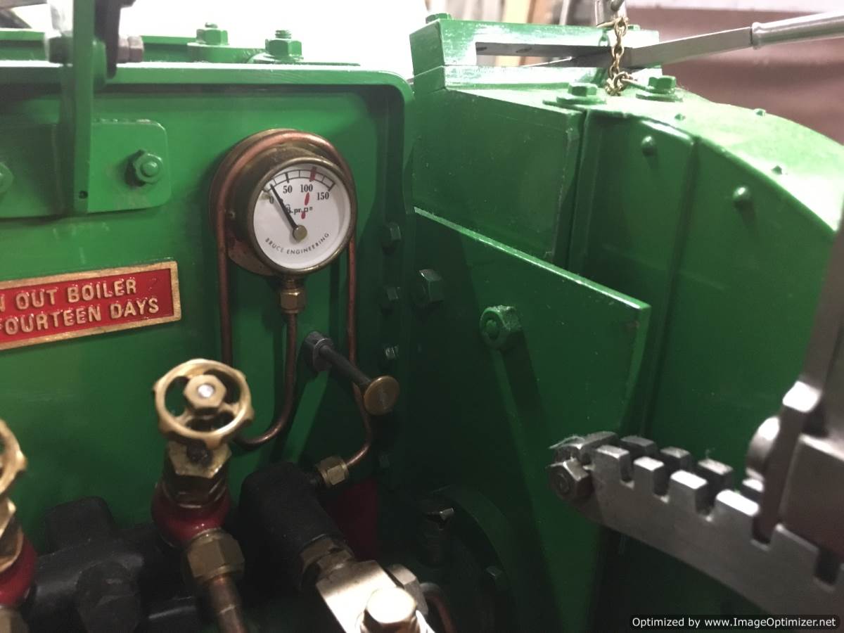 It has an injector, the usual crank shaft water pump, and there is a hand pump on the footplate.  She also has a water lifter fitted which, more often the reserve of the bigger engines, is always a nice feature to find on a 3".  The paint is neatly done, and in good condition, and particular attention has been given to ease of operation.,  She has easy to use oil pots all over the place, so although relatively un-used, this one is clearly made with a view to being run.