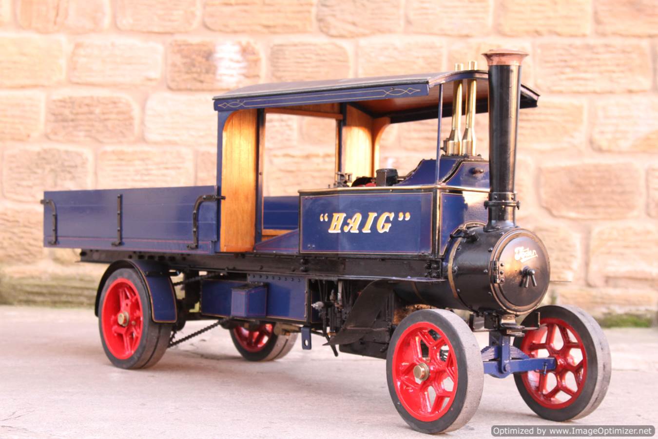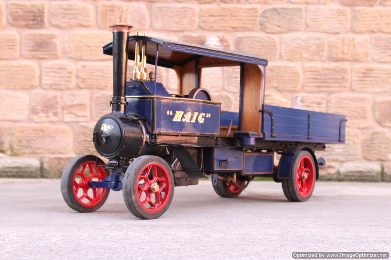 Here we have a very pretty little 3" Foden Steam Lorry. We had this one come through about 4 years ago, and as far as we could determine, this one isn't built to the published drawings, which represent the slightly larger Foden lorry in it's compound engine form. This one is a twin simple, and uses Stuart horizontal engine as it's power. The boiler is copper sliver soldered, and as with most of our models comes with a full 4 year hydraulic test and a fresh annual steam certificate. Today she's in more or less the same condition, so the photos will give you the general idea!