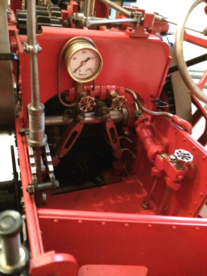 It is a Four Shaft Tractor with the usual agricultural two speeds and stephensons link motion. She is fitted with a working water lifter, eccentric water pump, injector and the cylinders are oiled from the usual cylinder top mounted mechanical lubricator.
